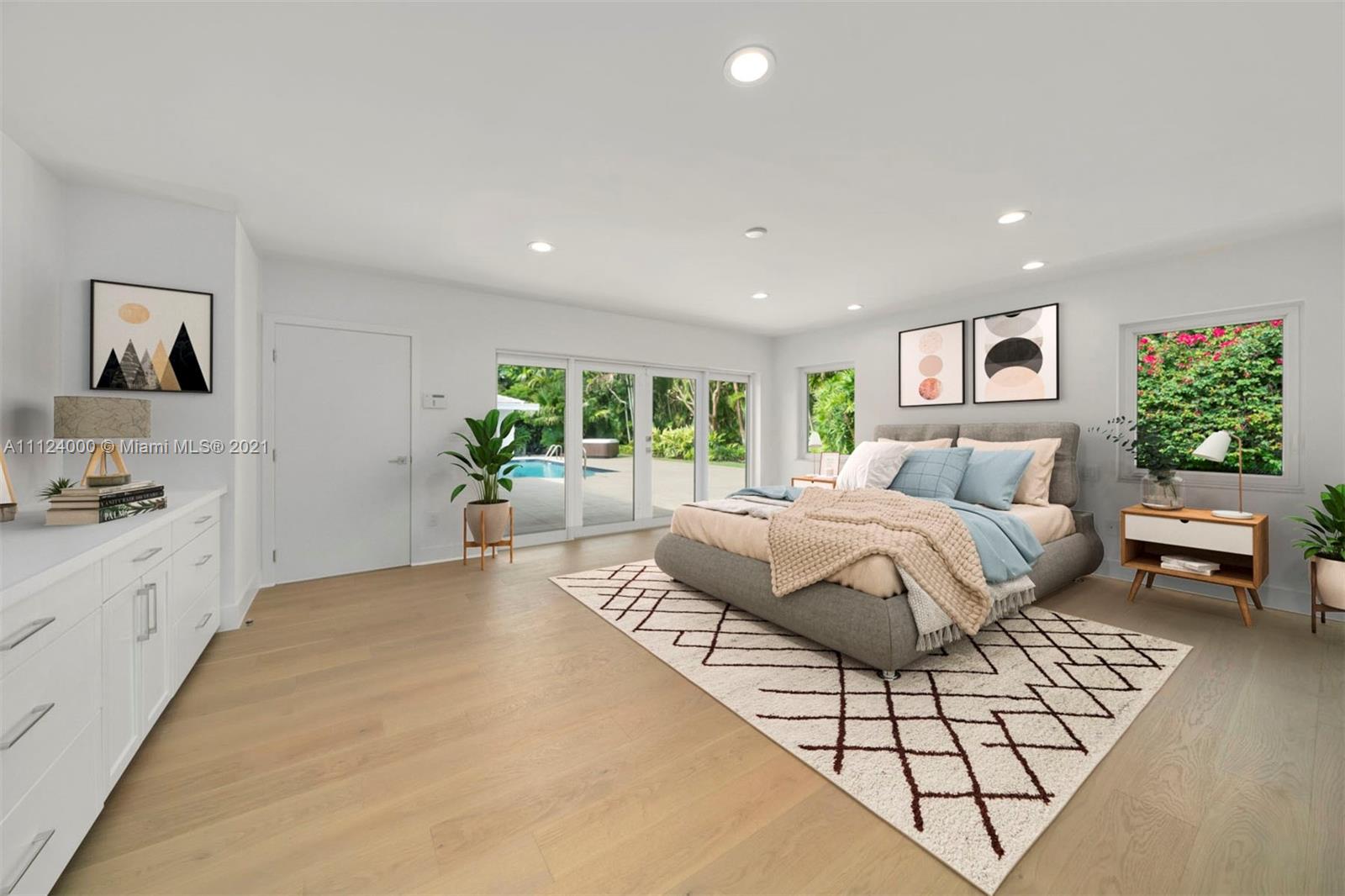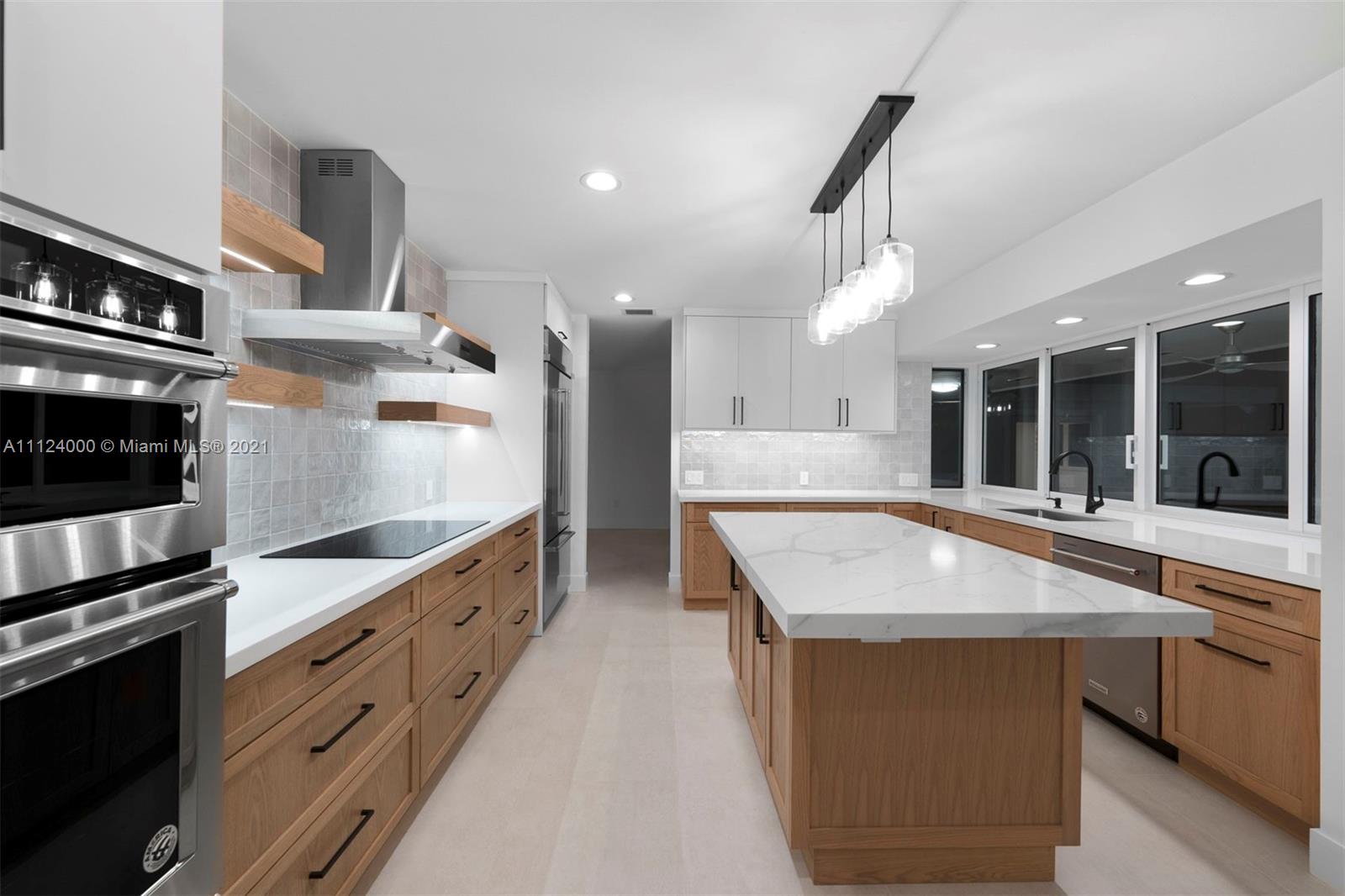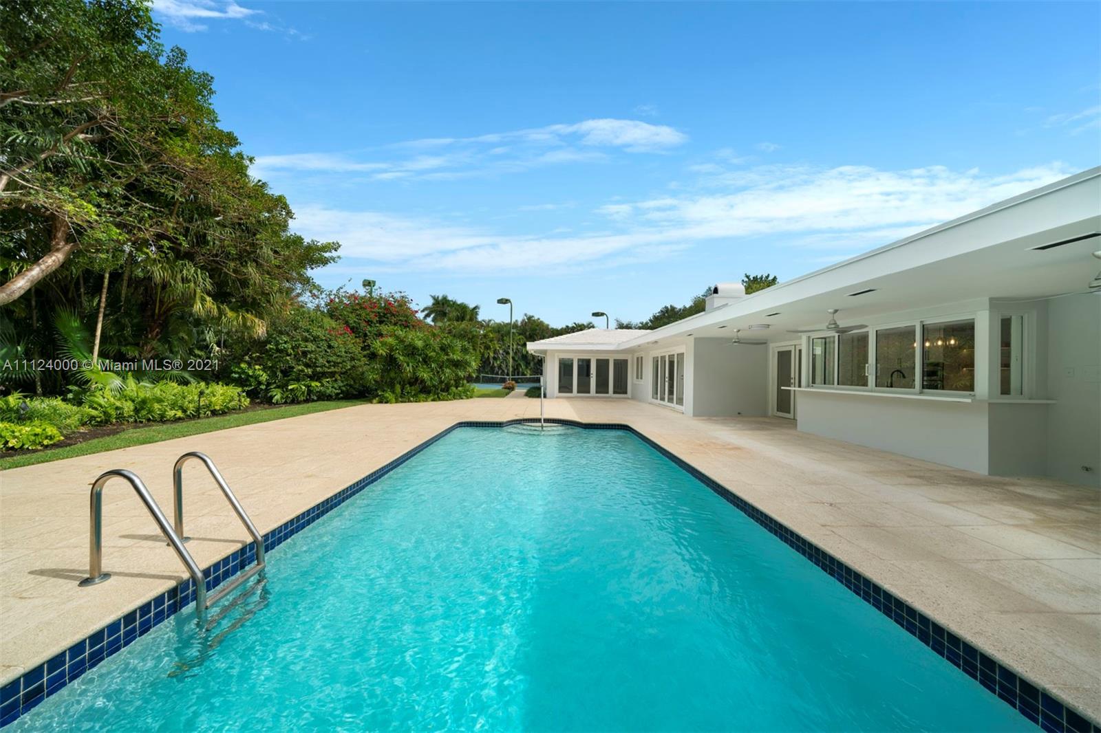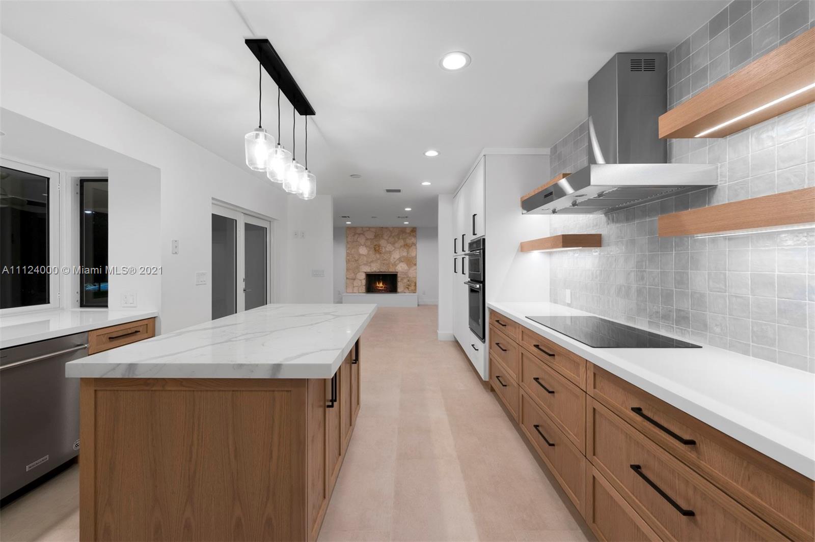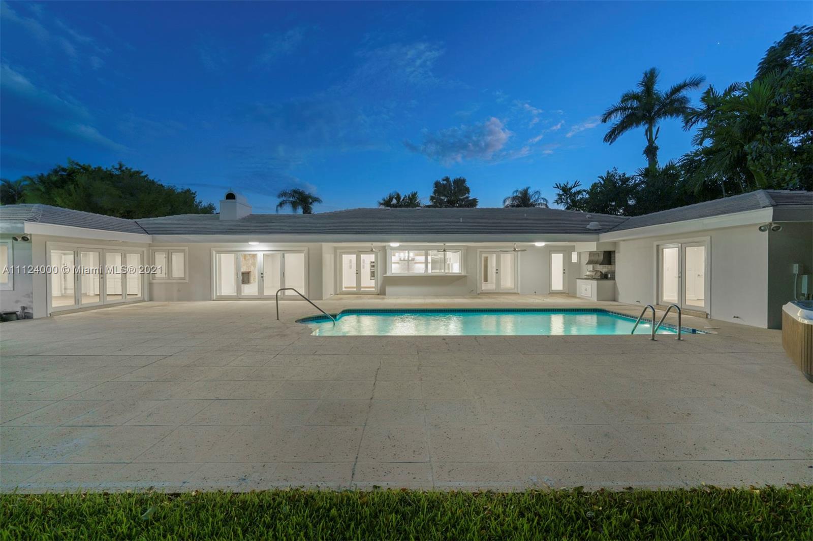 Beautiful and completely renovated 5,069 Sq. Ft. 5 bedroom, 3.5 bath home in a peaceful cul-de-sac community. Natural light illuminates the entire floor plan, including a beautifully scaled living room with stone fireplace, formal dining room and family room. The chef’s kitchen has custom modern cabinets, quartz countertops, high-end appliances and breakfast area overlooking a large sparkling pool. The main suite is a spacious retreat, with an adjacent area ideal for a private office or den, bathroom with double vanities and separate modern shower and bathtub. Other highlights include an outdoor jacuzzi, lighted tennis court, covered patio with built-in barbeque grill, tropical landscaping, two-car garage, and two additional rooms with separate entrance, for use as buyer determines.