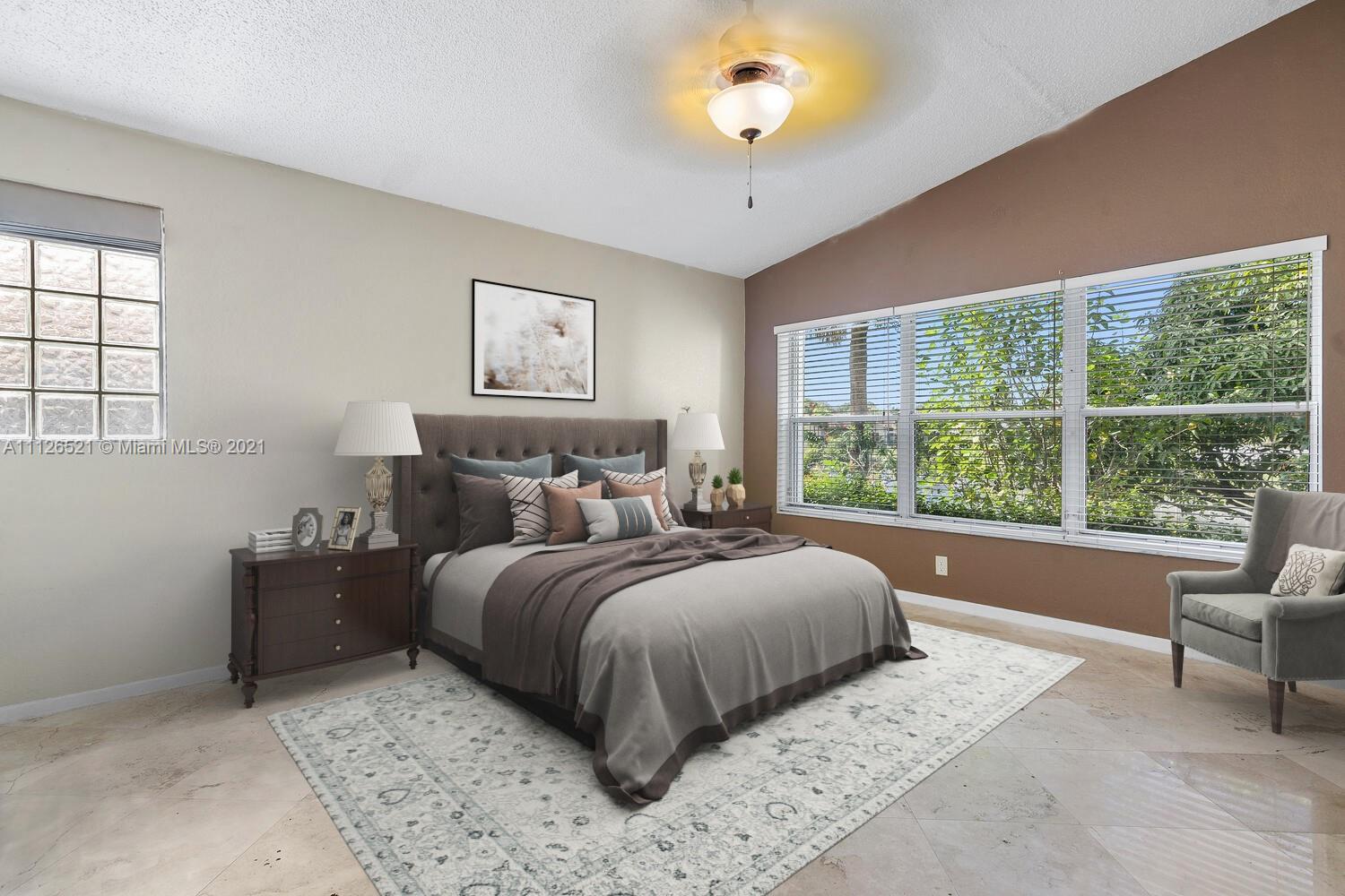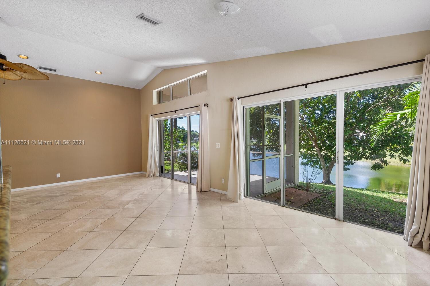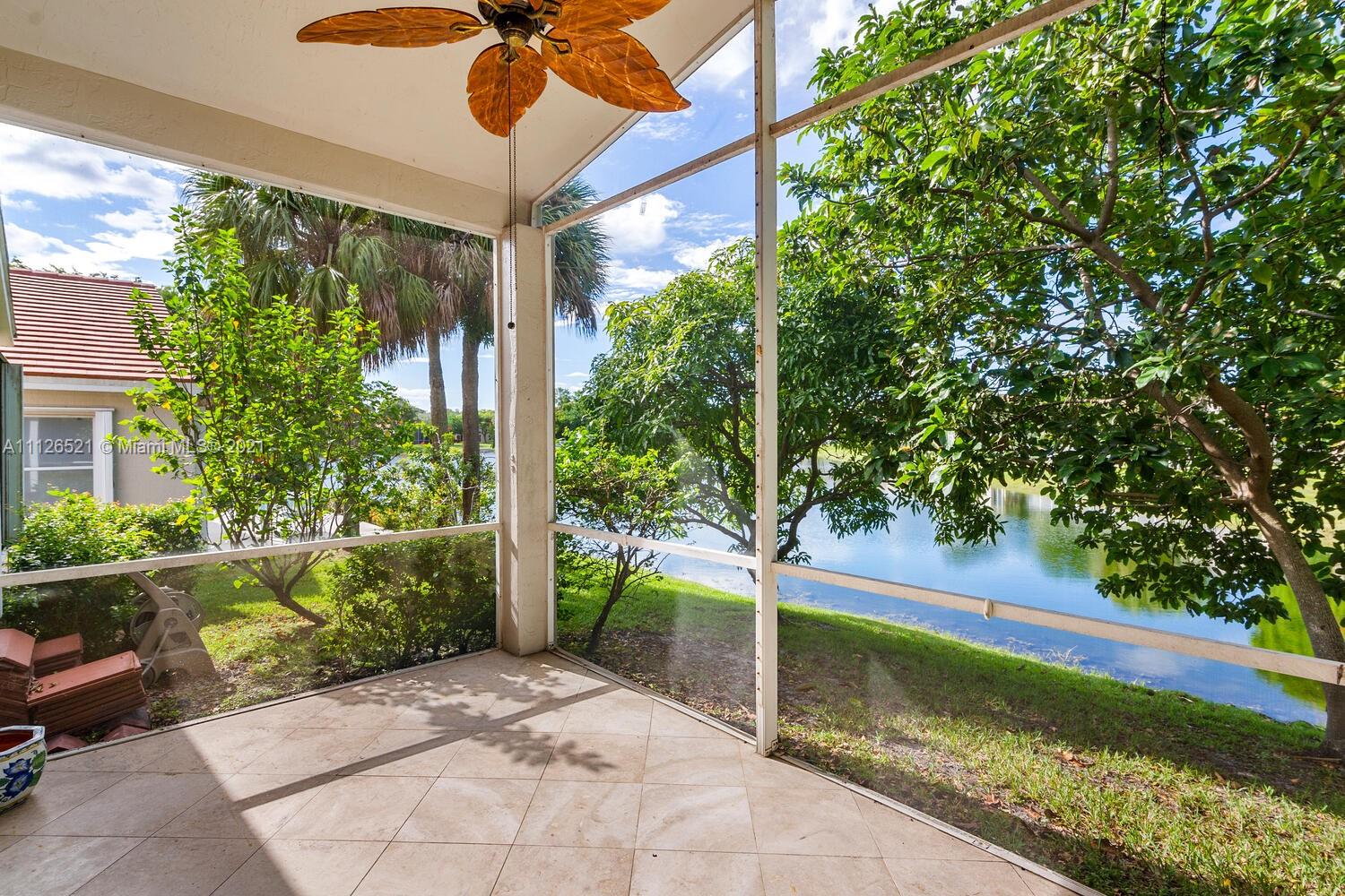 Renovated home on the beautiful Grand Palms Golf Course Community. Travertine flooring (diamond shape) throughout. Custom made wood kitchen cabinets, granite countertops and stainless steel appliances. A split floor plan with a large master bedroom with beautiful view looking over the lake. High vaulted ceilings throughout the home. Screened in patio with travertine flooring with beautiful views of the lake and community pool. Roof is 3 years old. Association fee includes community pool, guard gate, cable, all landscaping (front and back), alarm monitoring and exterior painting of the home.