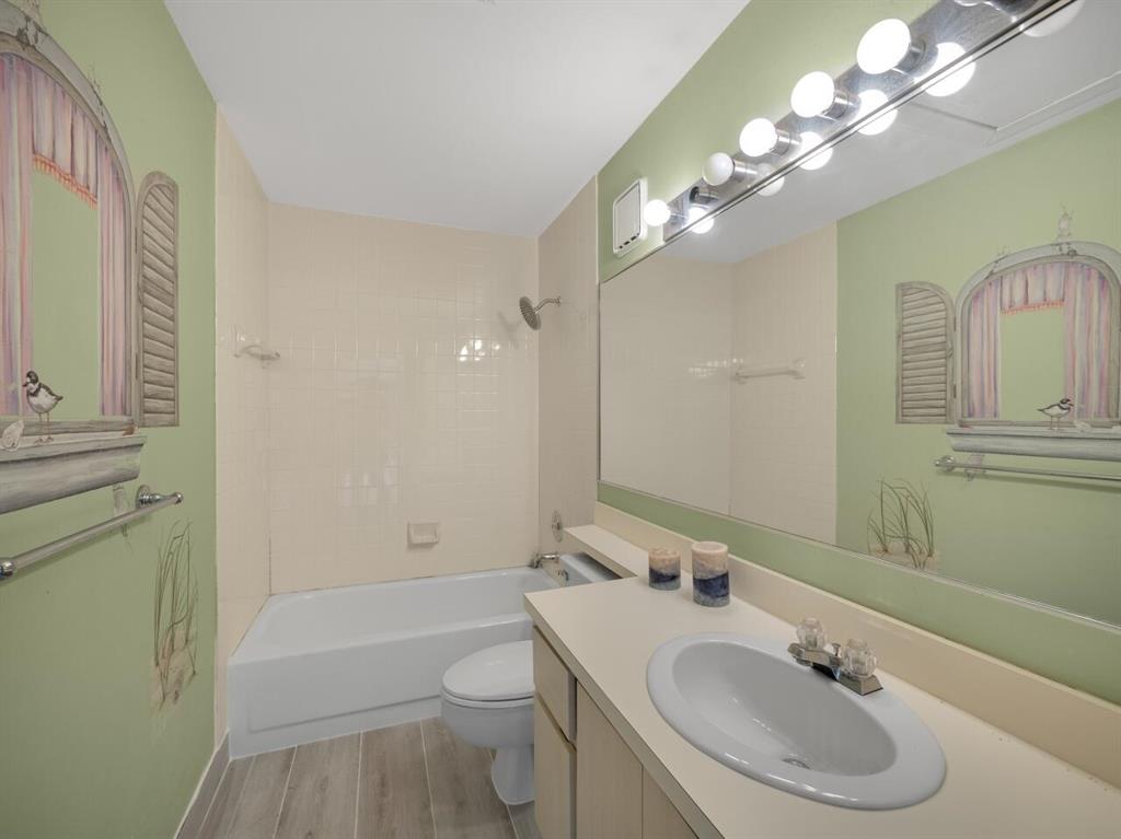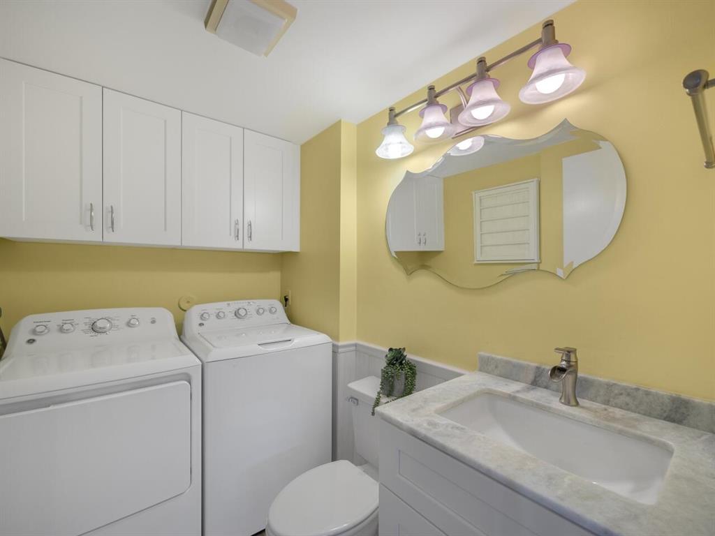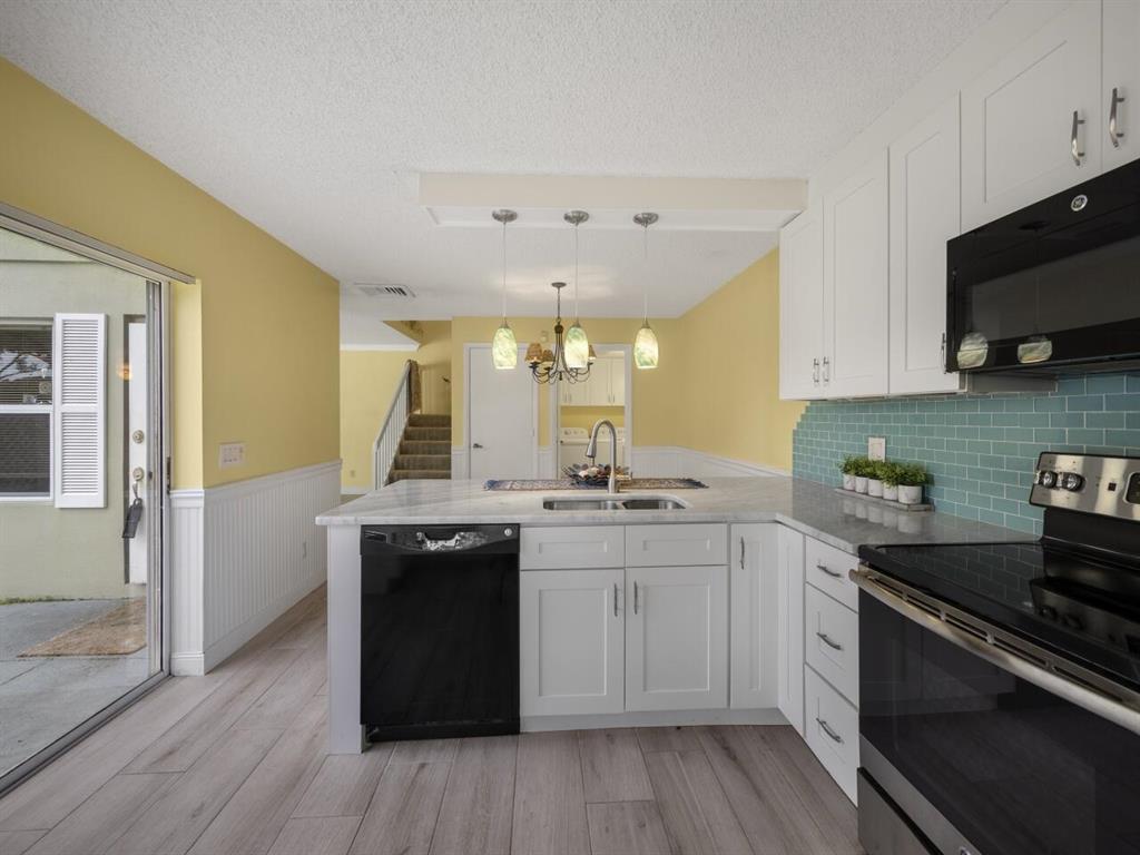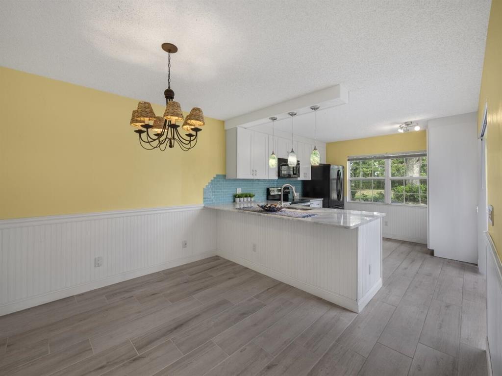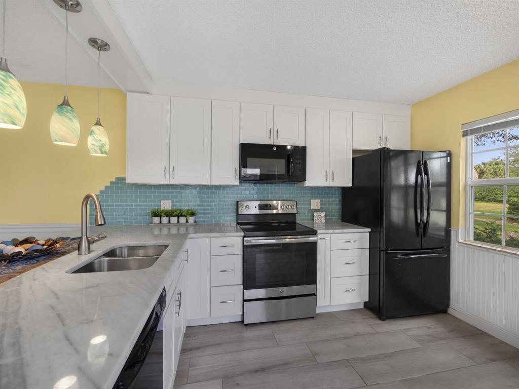 Your beachy paradise awaits you in this beautifully updated, perfectly situated quad. In the heart of Palm Beach County, just minutes from Downtown West Palm Beach, with quick access to all major highways, this 2/2.5 has it all. You'll immediately notice the curb appeal of this tucked away subdivision of Stamford at the Villages. Not just another brown quad, you'll feel pride in ownership pulling up to this white lattice fenced gem. After passing through your private courtyard, you'll open your door into your oversized great-room with gray Spanish porcelain tile, flooring throughout the downstairs and a 1/2 bath/laundry that is not only functional, but light, bright and charming featuring custom cabinets, decorative breadboard. Not to be out done, the adjacent