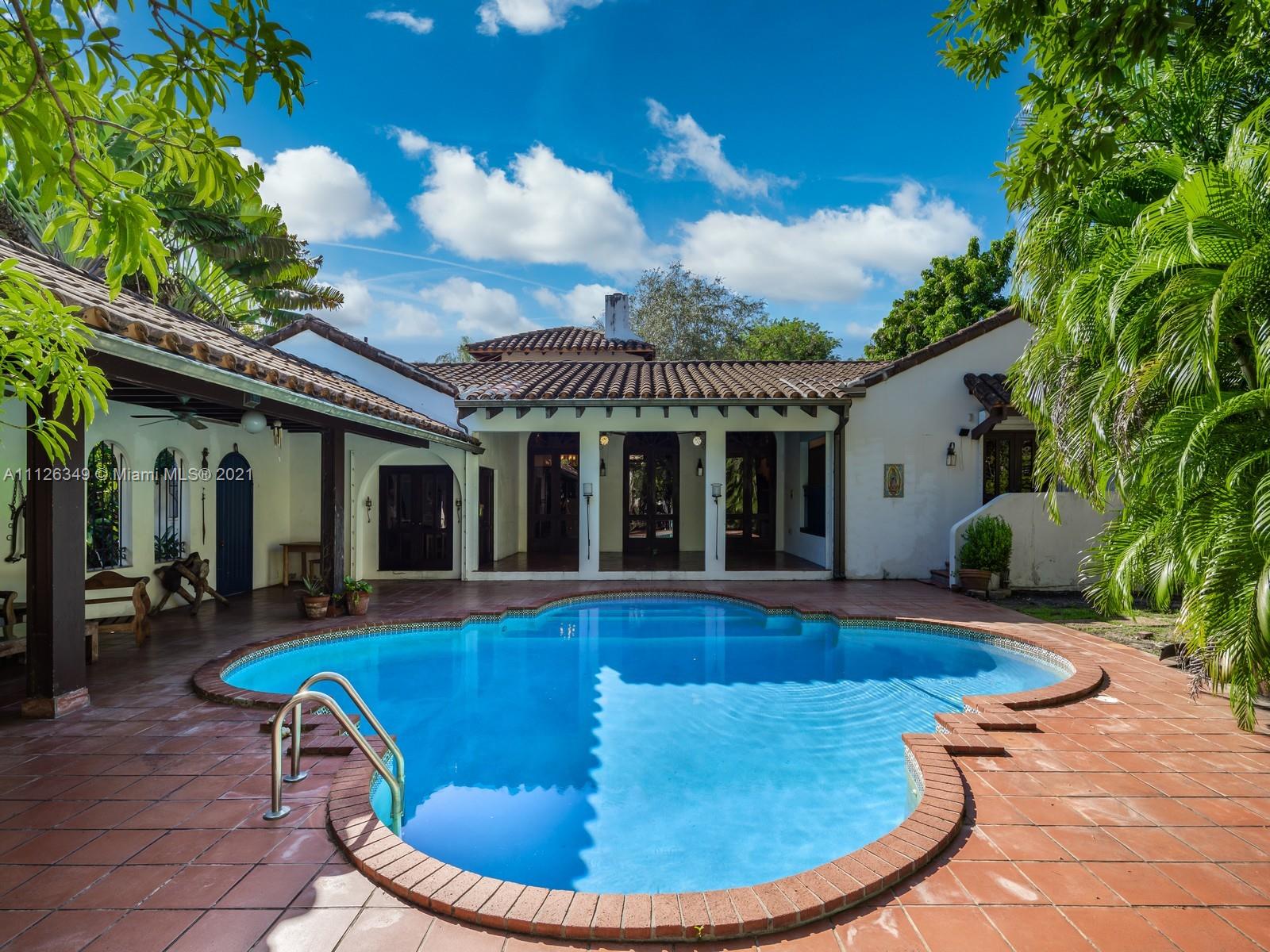 Welcome to " La Hacienda" in desirable South Gables. Beautiful courtyard entrance, 5 bedrooms, open spaces and plenty of natural light. Sitting on oversized 15,700 sq, ft lot, this very special home is ready for your personal touch! Conveniently located, minutes from shops, restaurants and Village of Merrick park. Adjacent 10,000 sq. ft lot also available for sale.