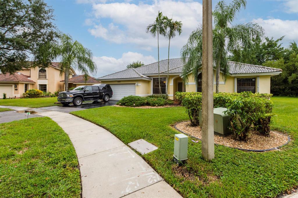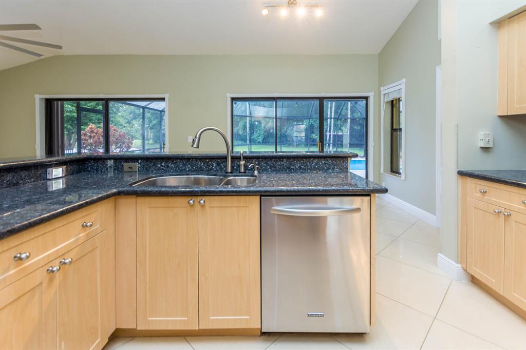 Immaculate 4/2 pool home on almost 1/2 acre lake lot. Prestigious Fox Run in Jacaranda Open floor plan with vaulted ceilings. Large 24x24 tiles throughout. Kitchen features granite countertops, wood cabinets and top of the line stainless appliances. Spacious family room with breakfast nook area. Formal living and dining rooms. Updated bathrooms. Living areas and master bedroom open up to pool/patio area. Huge screened pool and patio area with a portion of the patio covered. Almost 1/2 acre lot. New roof in 2019.Indoor washer & dryer. Accordion storm shutters. Low maintenance fees. Move in condition This home will not last! Easy to Show!! Move In Ready!!
