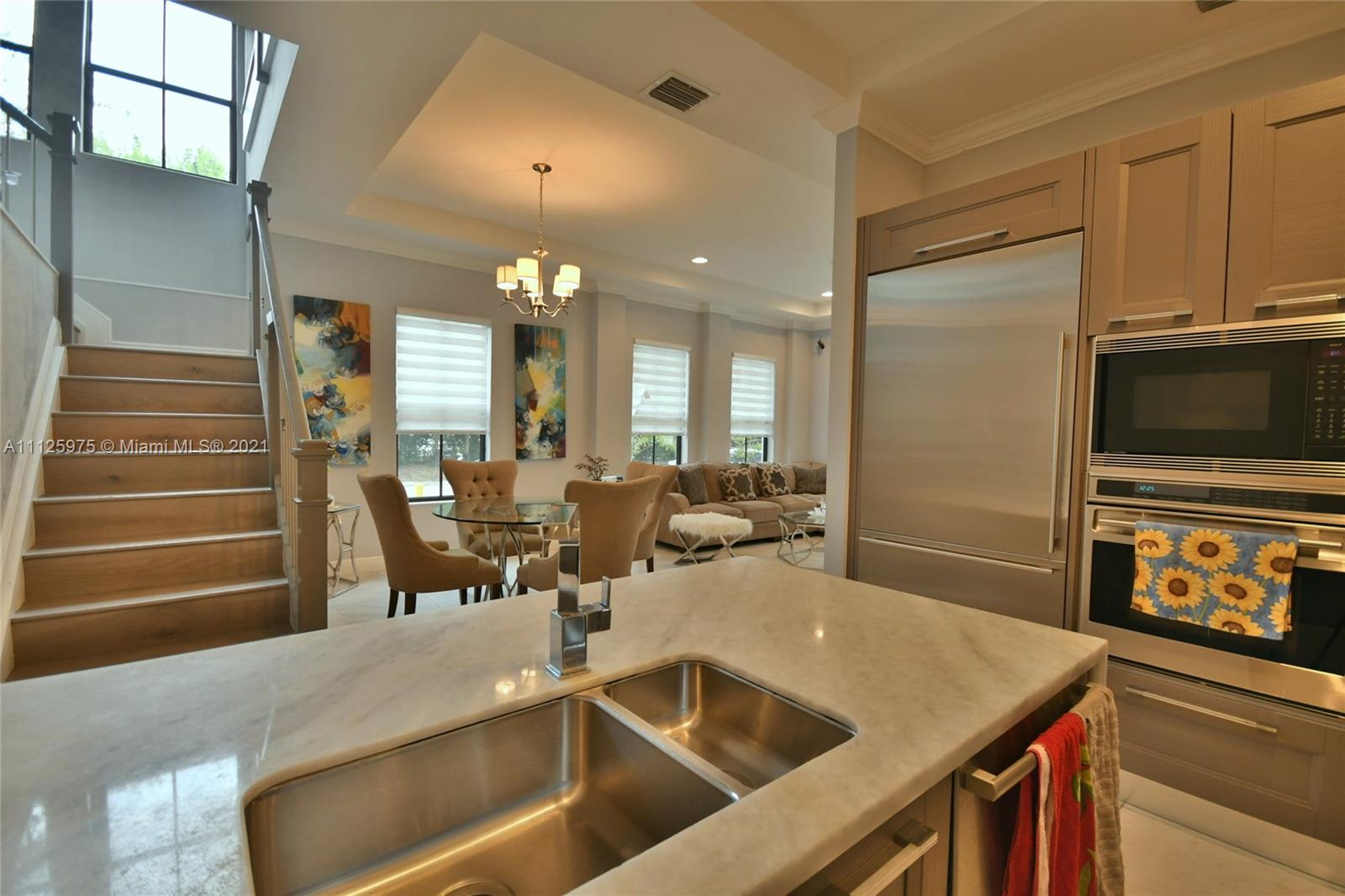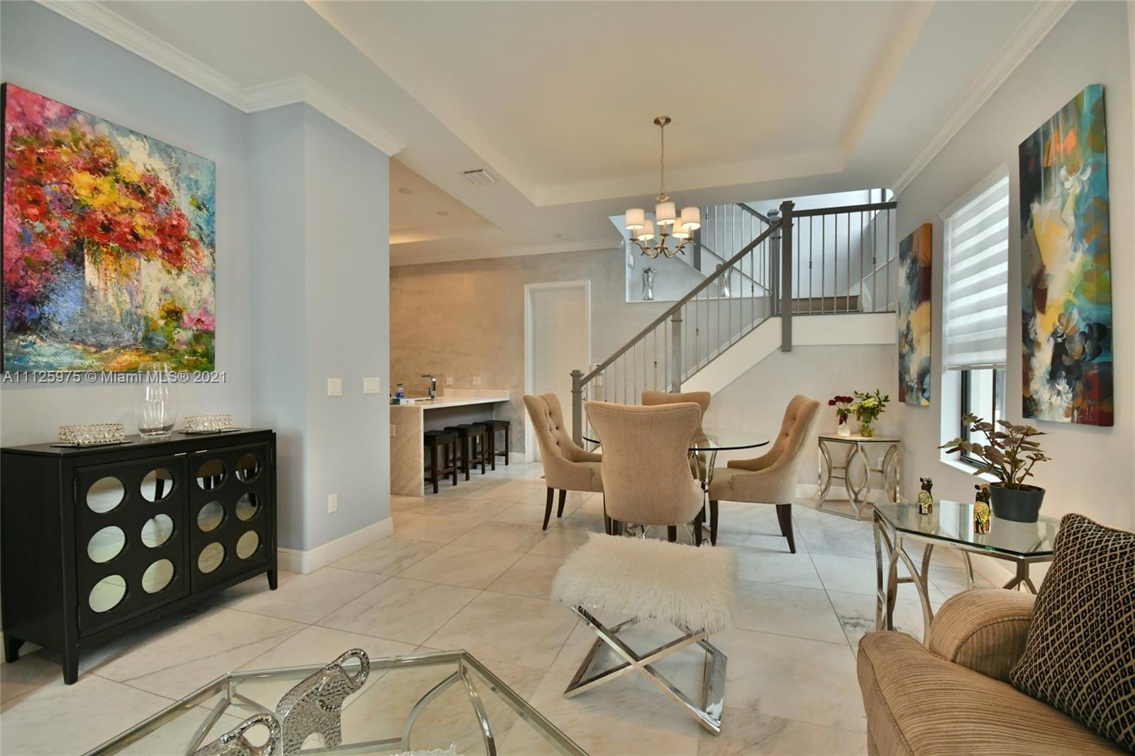 Bright, Homely and Spacious 4 bed/3 bath 2-story Corner Townhouse in the heart of Downtown Doral. Cozy Porch opens up to the High Ceiling Living-Dining area. Marble and Wood flooring wrap around the complete space. One Bedroom and one full Bathroom downstairs are very convenient for many uses. This property features High Impact Windows and Doors, Marble countertops & Top of the line Stainless Steel Appliances, Freshly painted huge 2-car Garage. Laundry Room with GE Washer & Dryer and Mop/Multi use side Sink located upstairs. Enjoy the quiet and cozy Community Pool a few steps from the property as well as one block away from the finest Charter School. Very Low Assoc Maintenance. Please contact the Listing Agent to accommodate the showings of this magnificent property/unique opportunity.