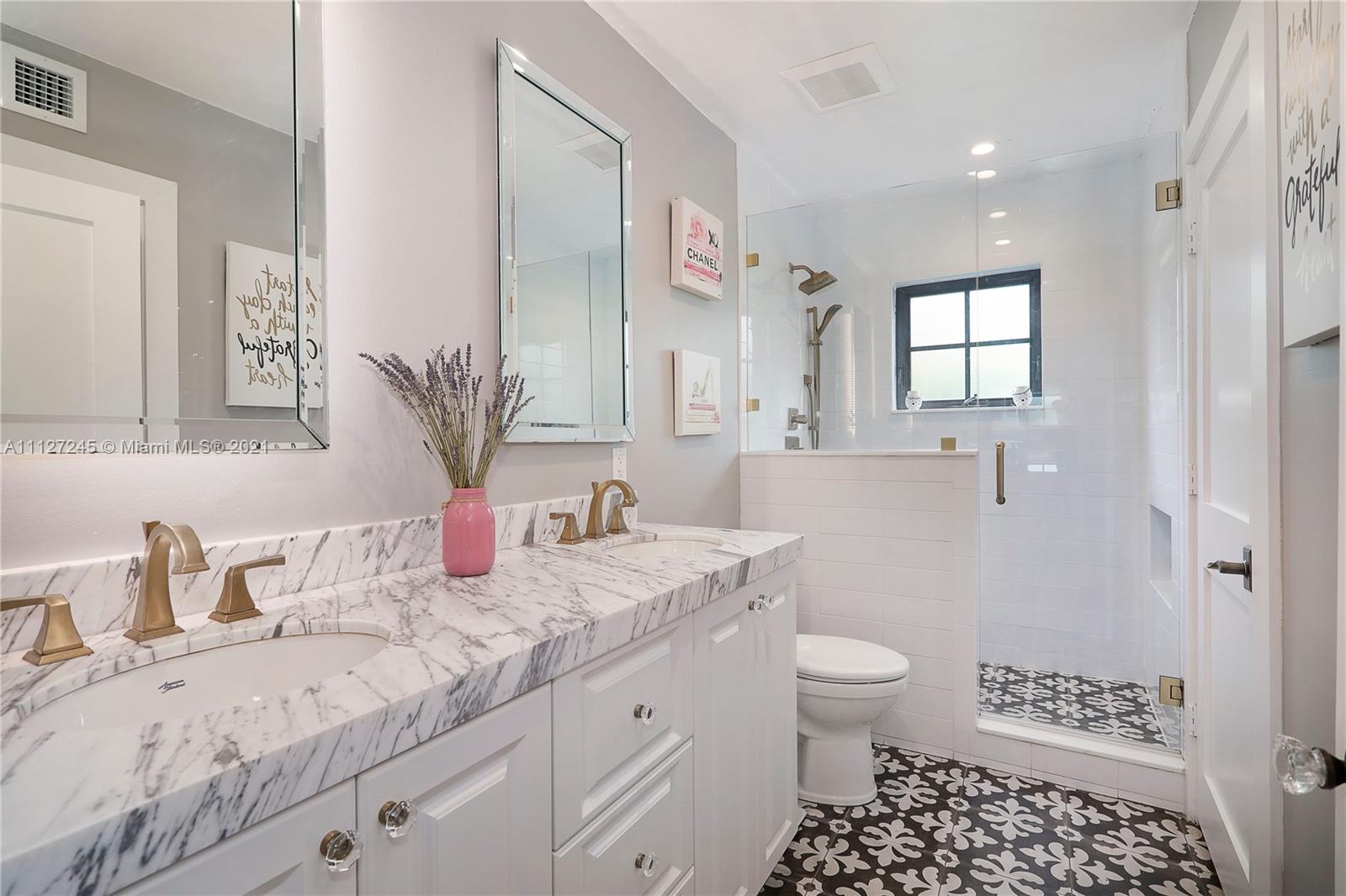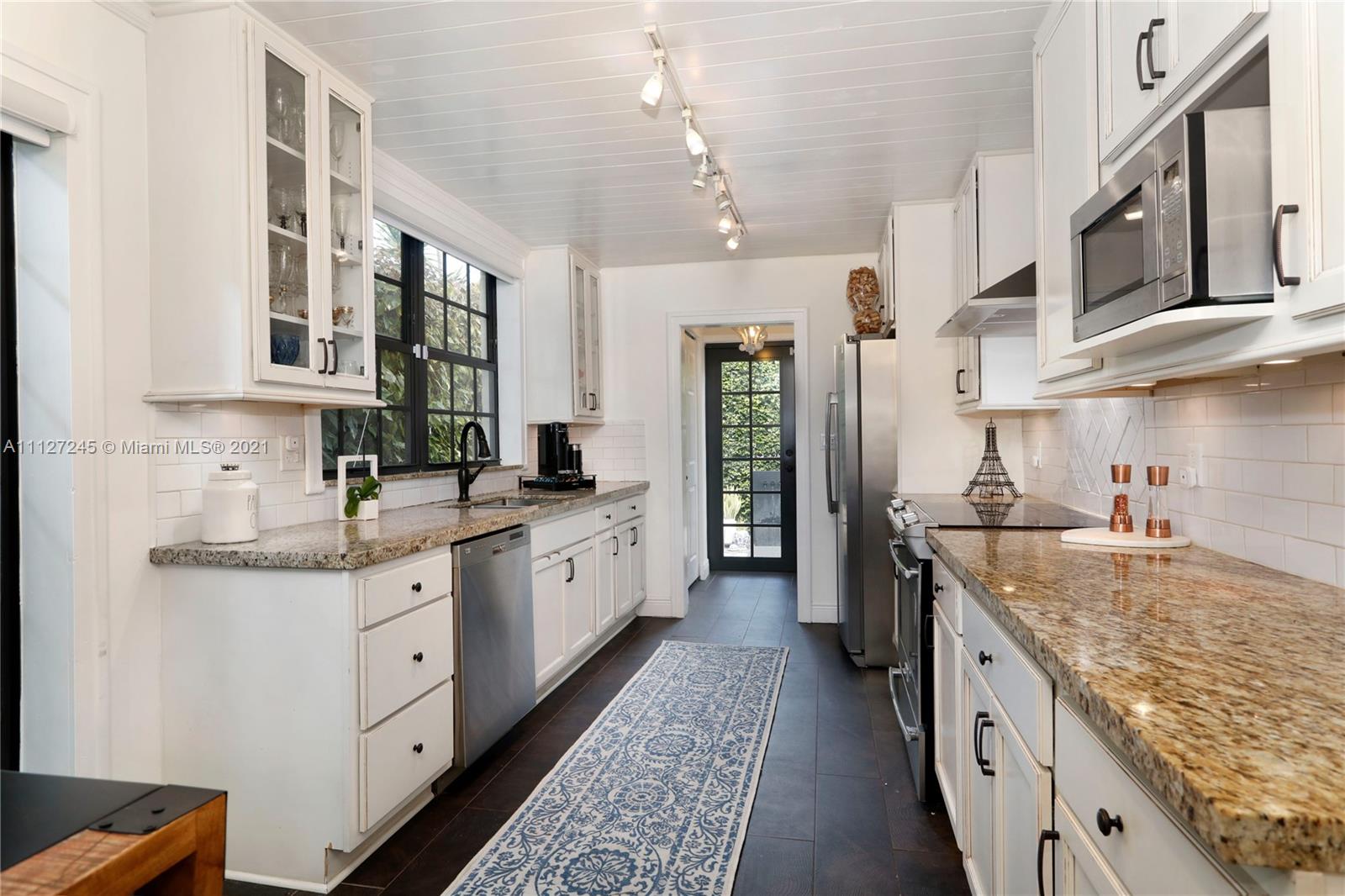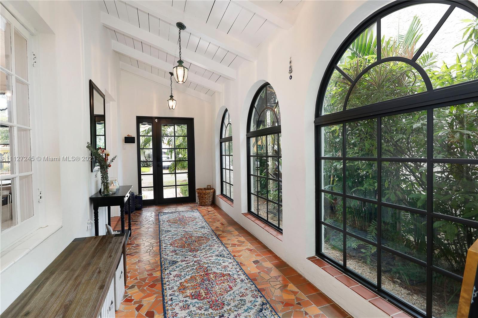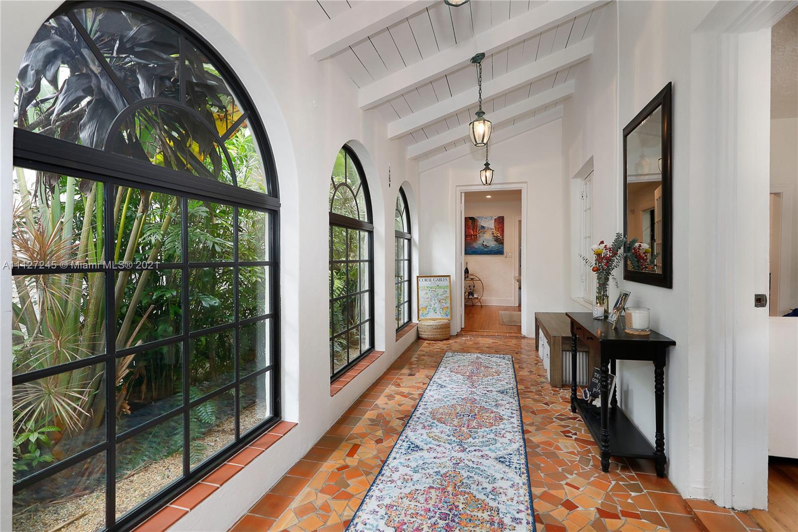 A classic Spanish style home filled with character & perfectly updated. This enchanting Coral Gables residence features a grand foyer entrance w/ original mosaic style flooring & arched windows leading through to a light filled dining room & a great living area w/ fire place & high ceilings. Main house consists of two good size bedrooms & bathrooms. Master bath has been meticulously redone to include dual sinks & an additional California style closet. The updated galley kitchen leads out to a beautiful & private backyard with lush landscaping. A detached suite makes the third bedroom perfect for your home office/den or additional entertainment room. High end finishes include impact windows and doors throughout, high hat lighting and a newly reinforced foundation. A true collector's item.