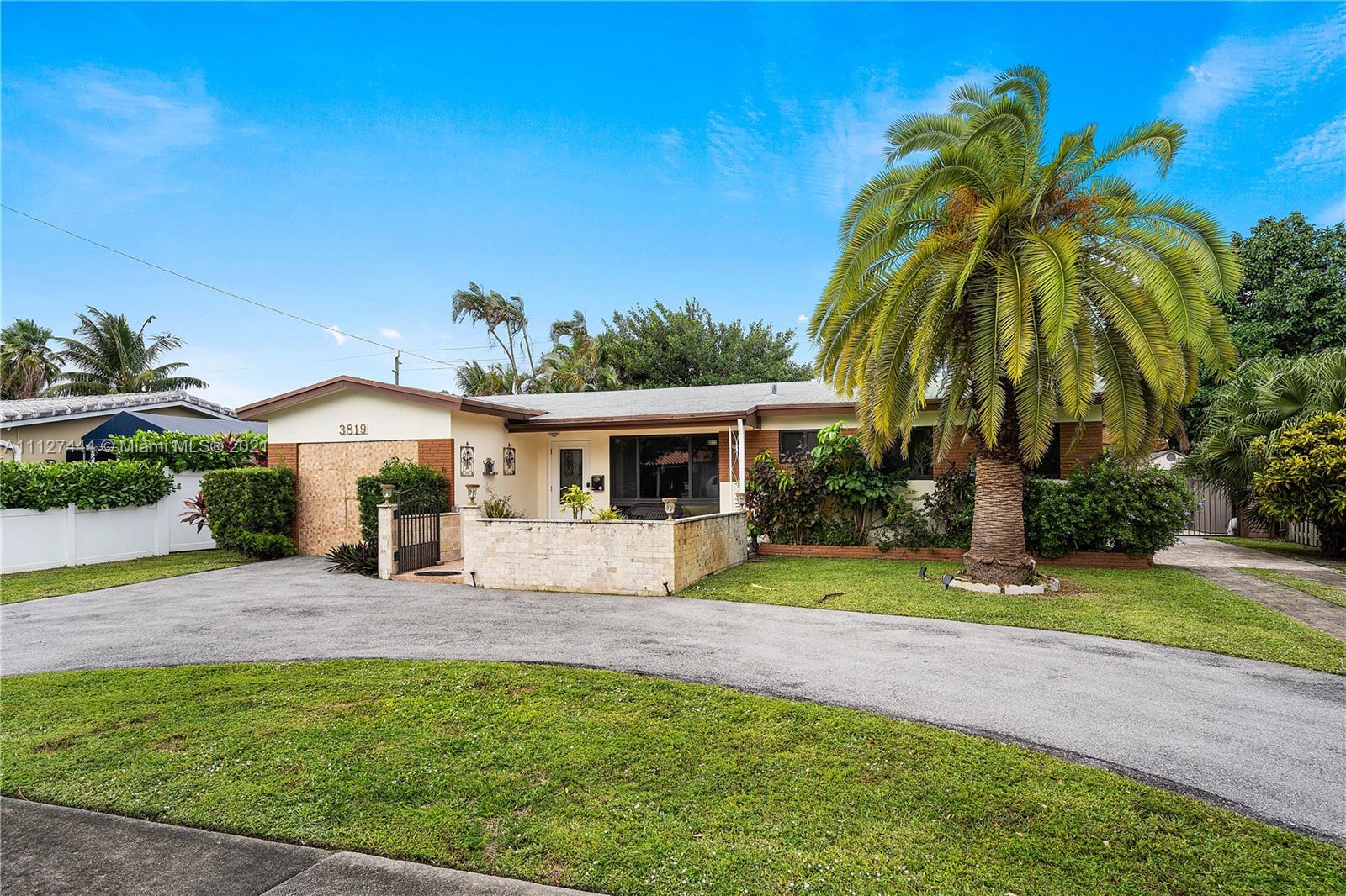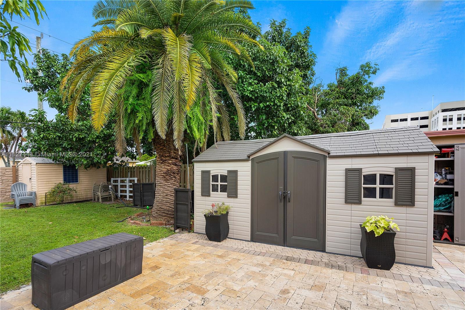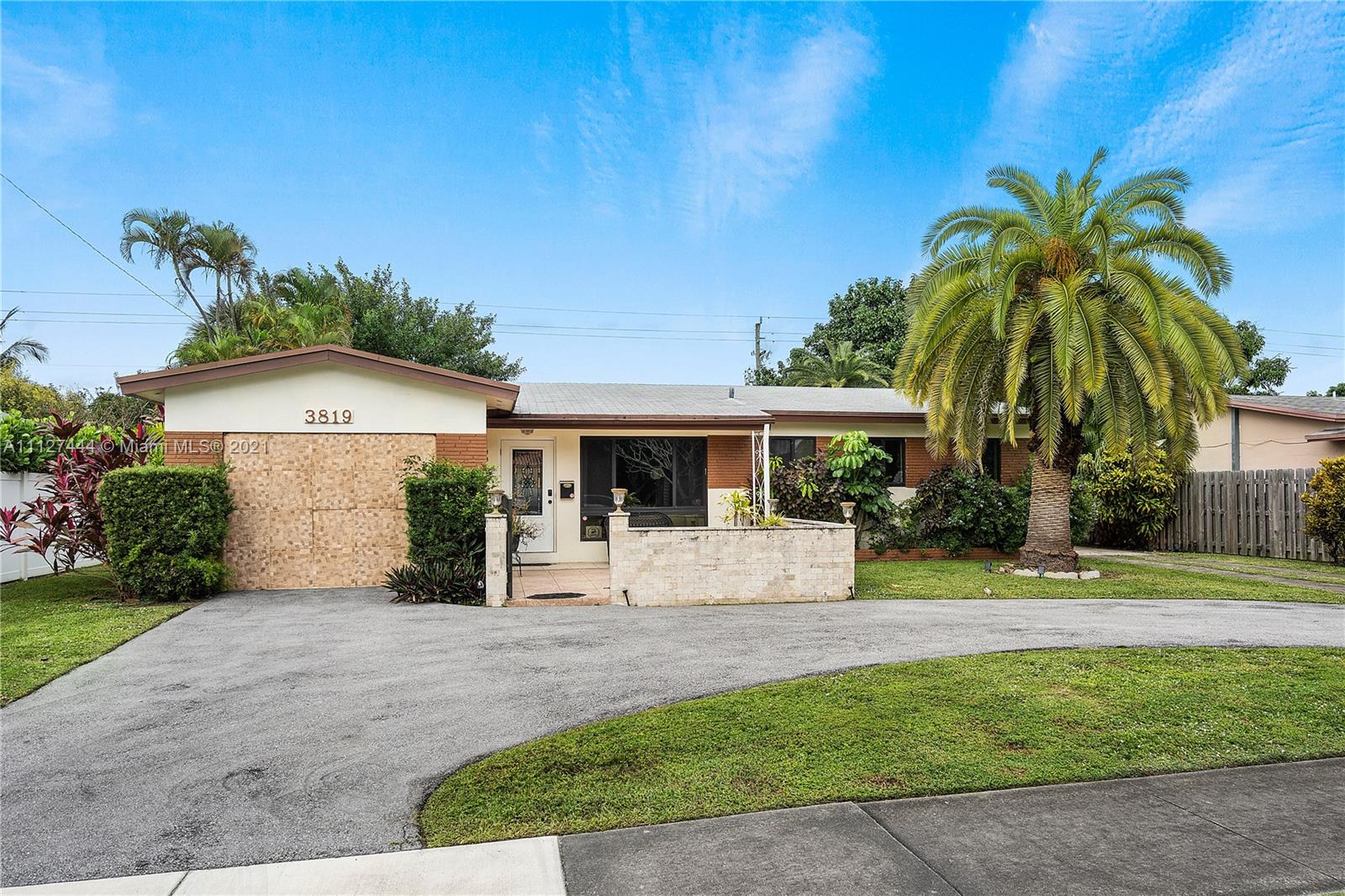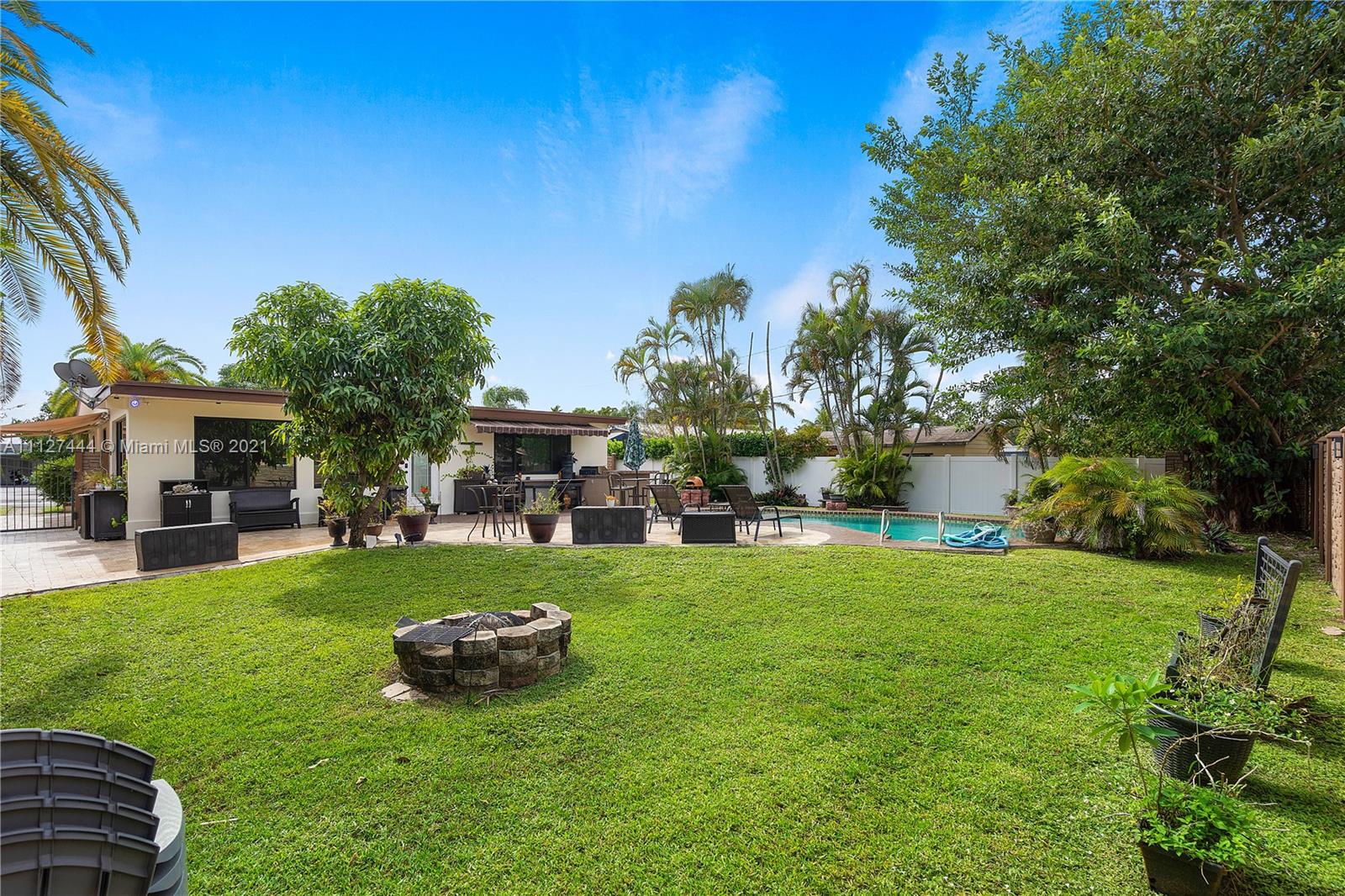 Enter through the front doors with the new paver patio that is gated. 1,690 sqft 3/2 with bonus in-law suite (could be a fourth bedroom) Recently remodeled throughout, tile floors, hurricane proof windows, new travertine pavers, long circular driveway with extended drive on the side of the house and stainless steel appliances. Outside is a fabulous oasis for relaxation, entertaining and grilling on the new BBQ island. Yard is fenced in with resin fencing, new shed, mango tree, rare palms, and solar shower for when you are done swimming in the pool. Located on the back and side of the house are remote control awnings.