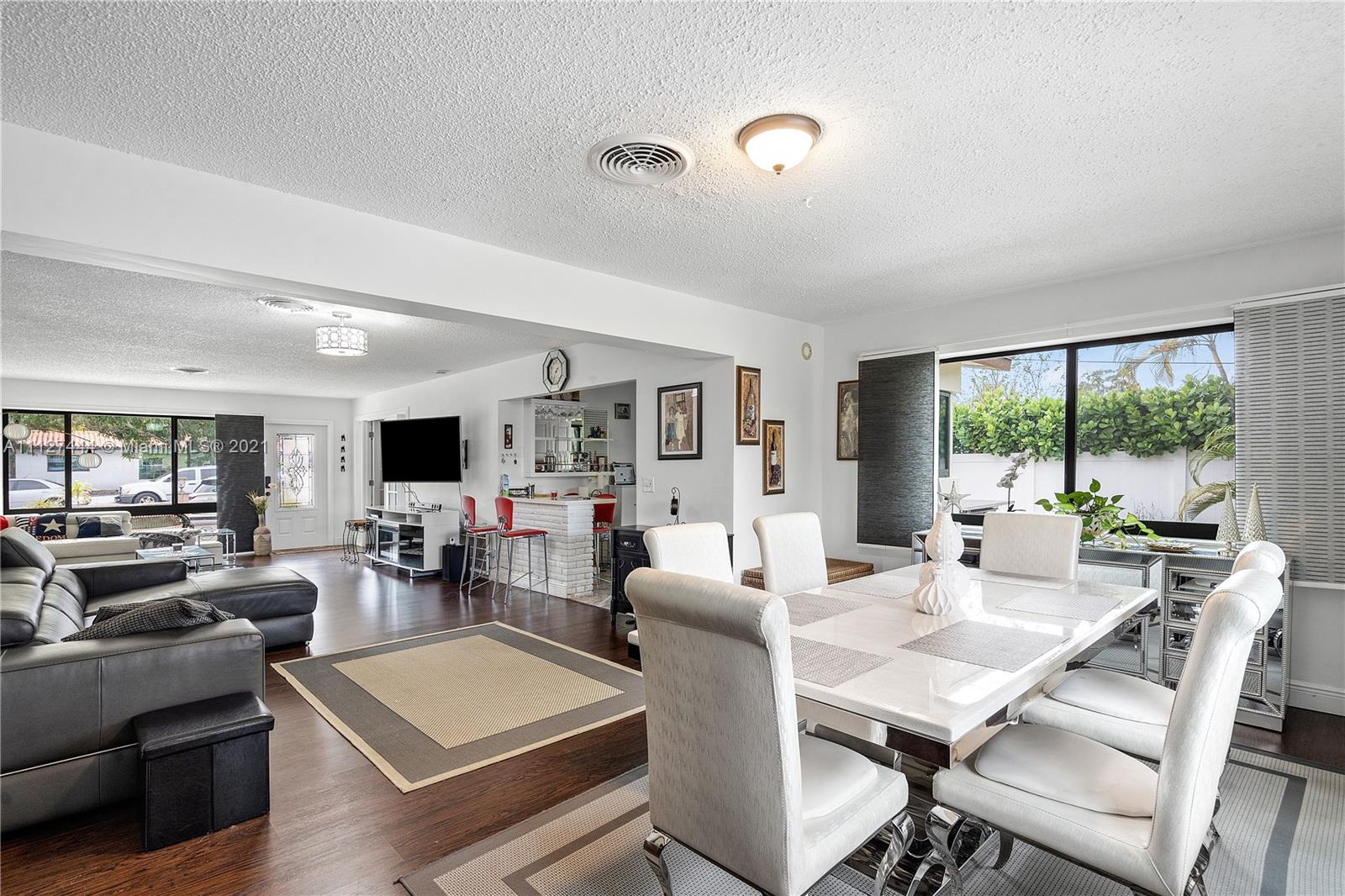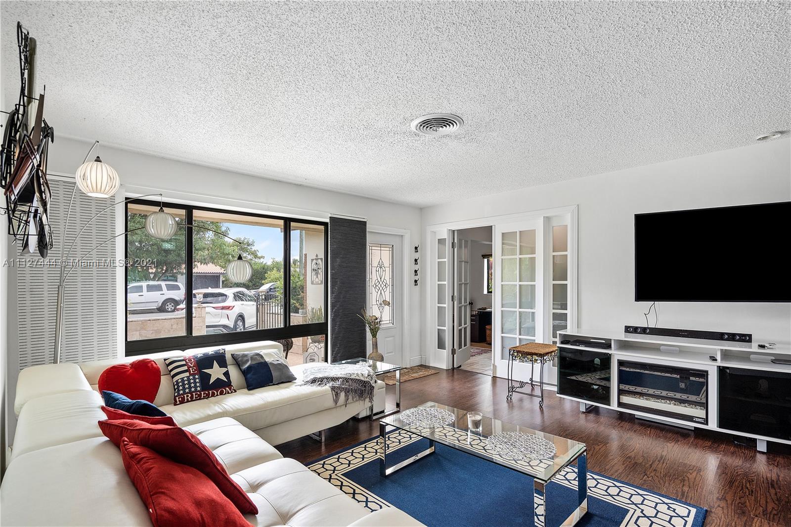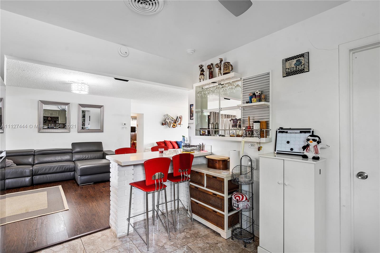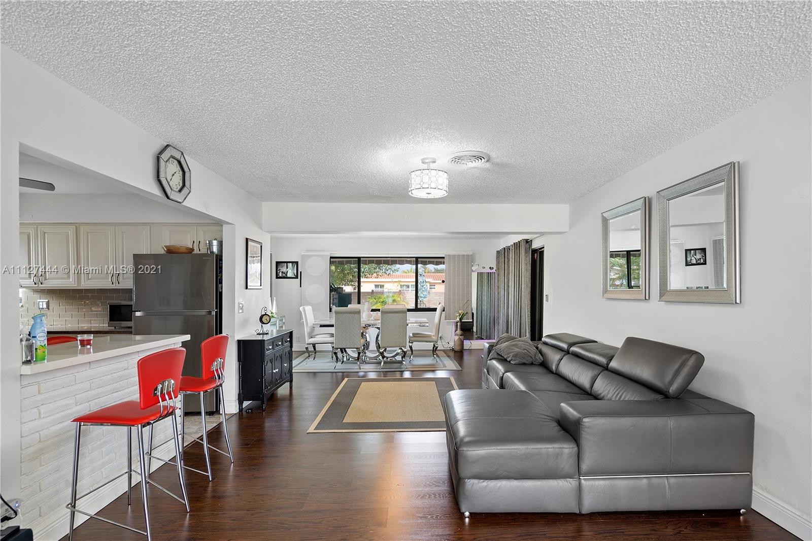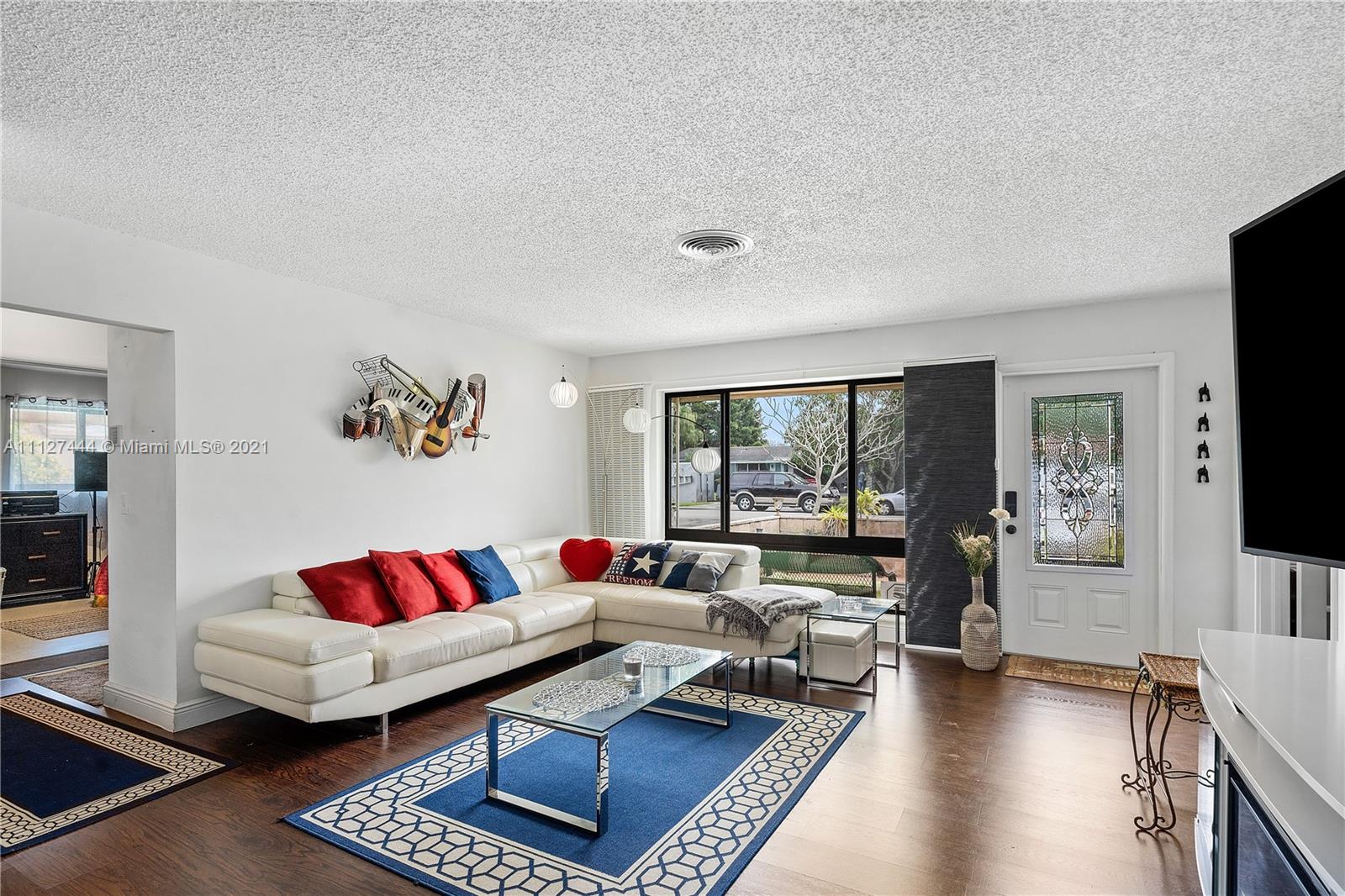 Enter through the front doors with the new paver patio that is gated. 1,690 sqft 3/2 with bonus in-law suite (could be a fourth bedroom) Recently remodeled throughout, tile floors, hurricane proof windows, new travertine pavers, long circular driveway with extended drive on the side of the house and stainless steel appliances. Outside is a fabulous oasis for relaxation, entertaining and grilling on the new BBQ island. Yard is fenced in with resin fencing, new shed, mango tree, rare palms, and solar shower for when you are done swimming in the pool. Located on the back and side of the house are remote control awnings.