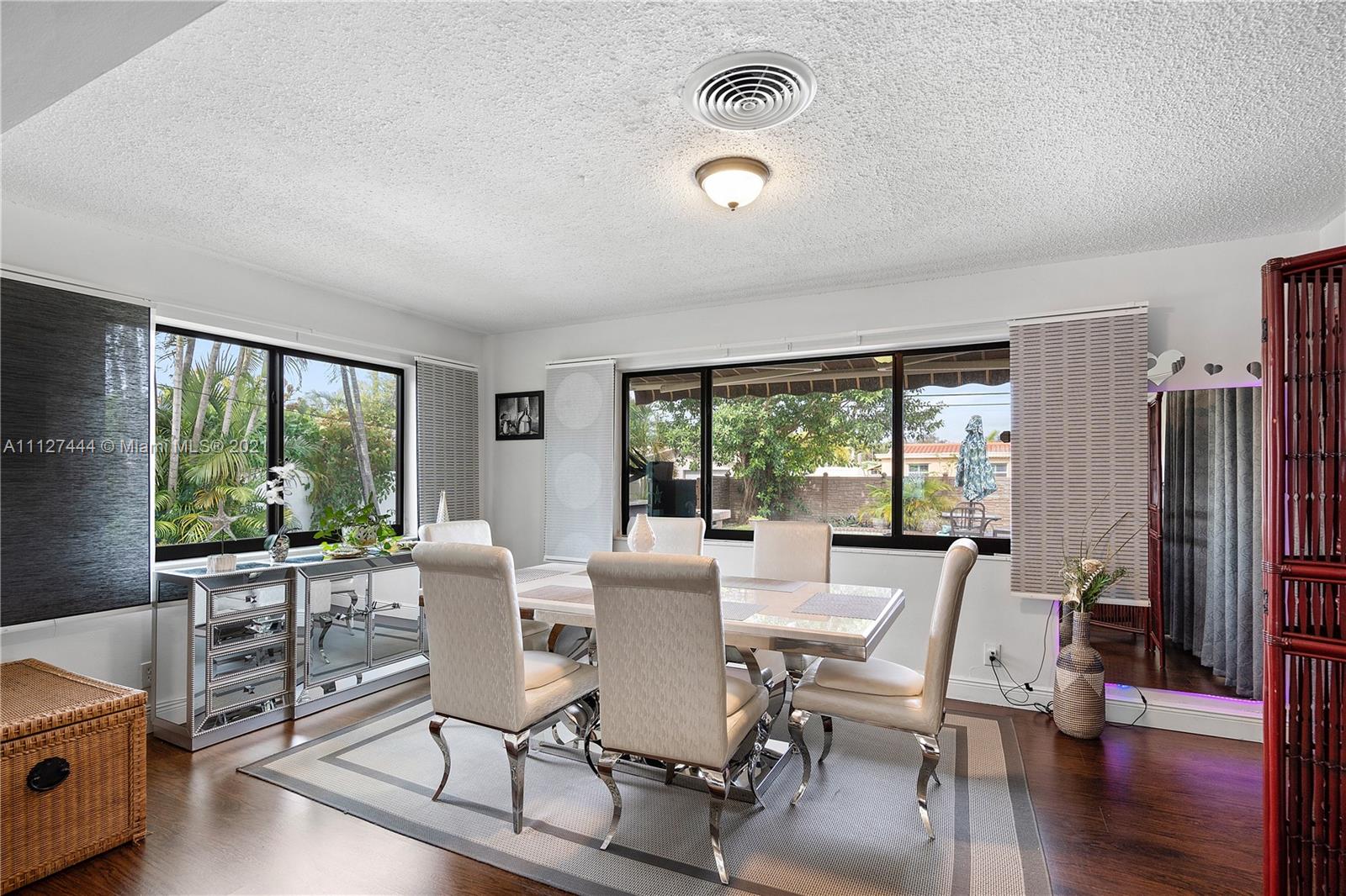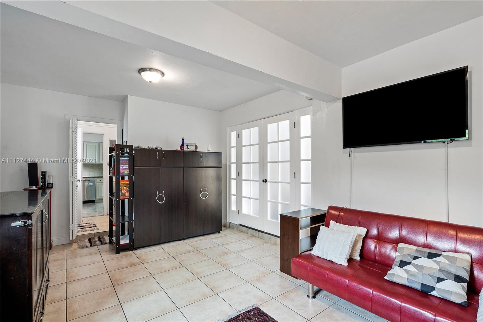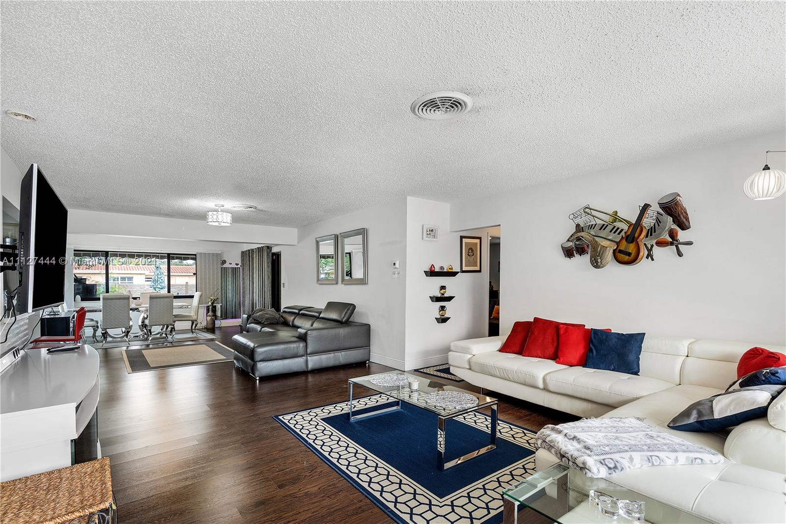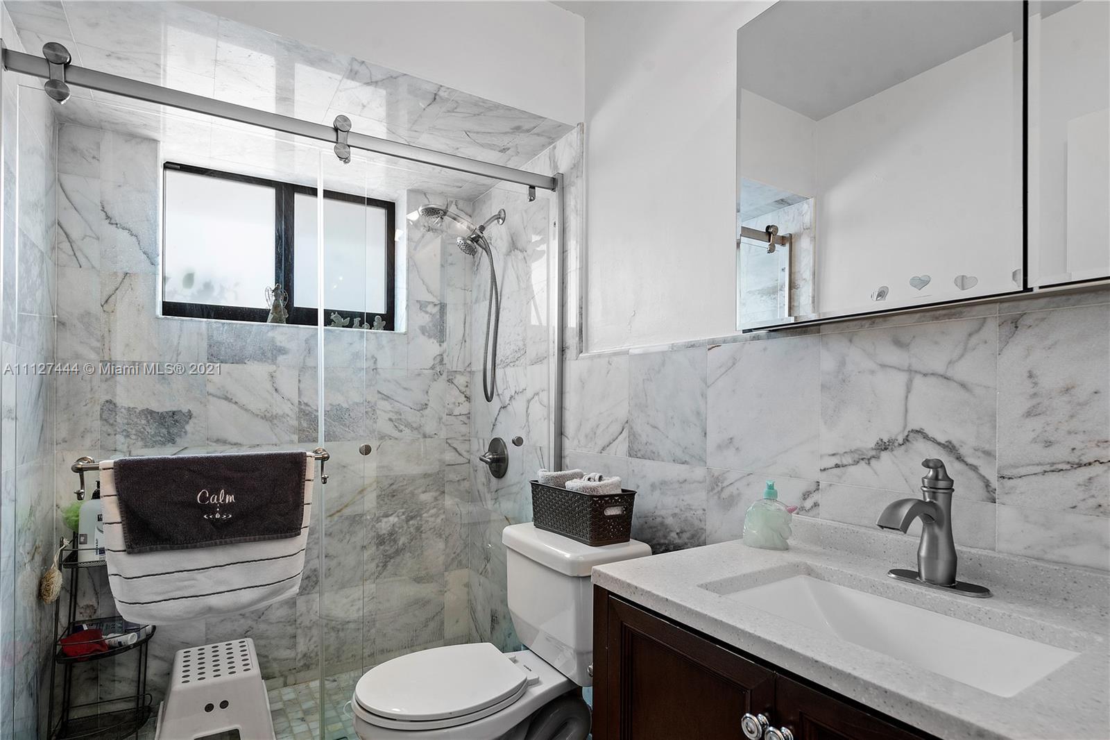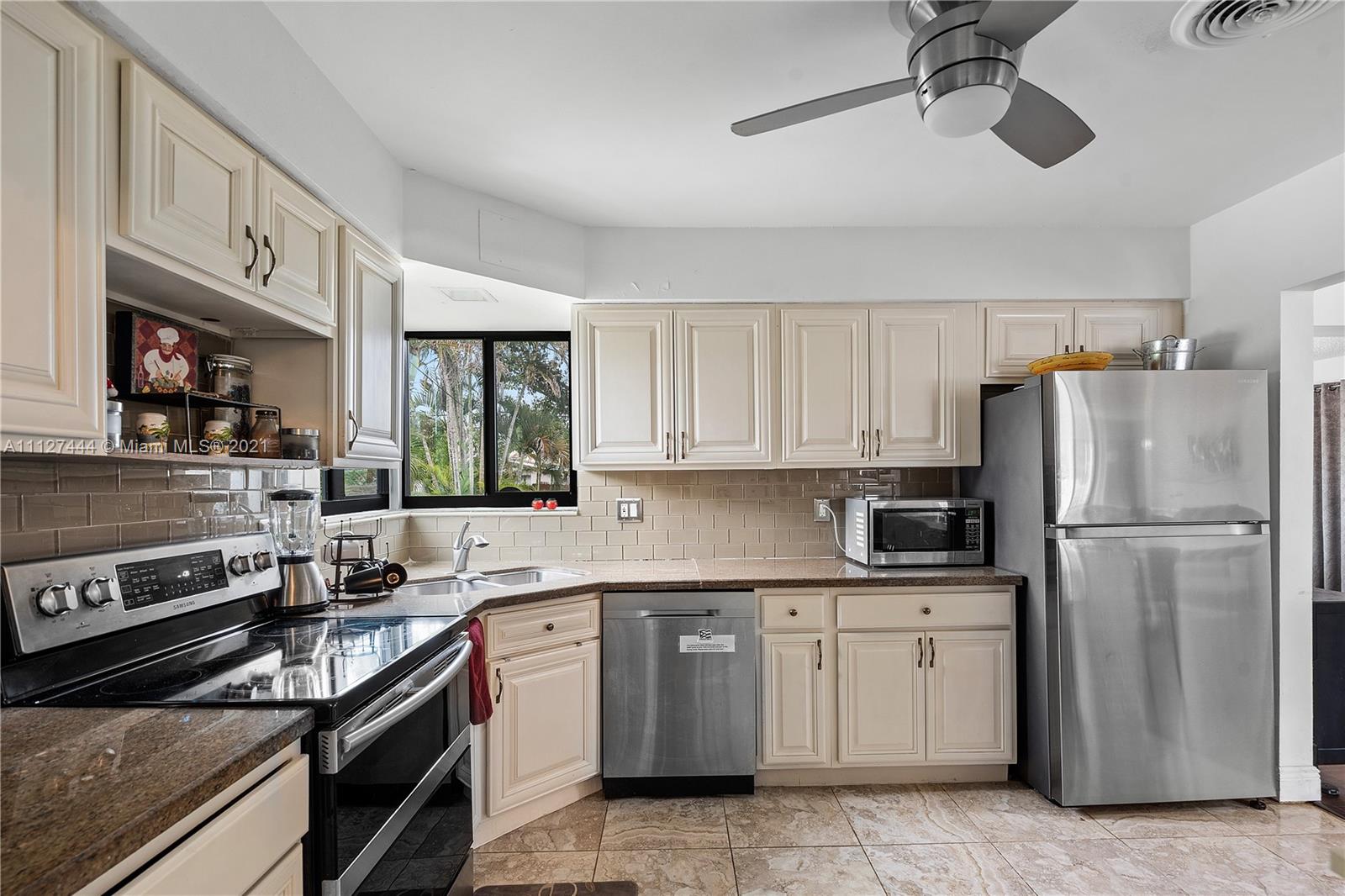 Enter through the front doors with the new paver patio that is gated. 1,690 sqft 3/2 with bonus in-law suite (could be a fourth bedroom) Recently remodeled throughout, tile floors, hurricane proof windows, new travertine pavers, long circular driveway with extended drive on the side of the house and stainless steel appliances. Outside is a fabulous oasis for relaxation, entertaining and grilling on the new BBQ island. Yard is fenced in with resin fencing, new shed, mango tree, rare palms, and solar shower for when you are done swimming in the pool. Located on the back and side of the house are remote control awnings.