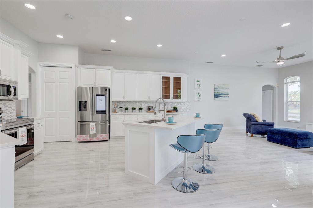 Stunning 5 bedroom/4 full bathroom, split floorplan, lakefront, pool home, featuring brand new tile roof, 3-car garage, all new kitchen appliances (including wine cooler and refrigerator with computer/family hub), custom kitchen island, quartz countertops, newly installed drinking water filtration system, massive master suite with his/hers walk-in closets and jacuzzi with separate standing shower, new interior and exterior AC units, all new flooring, all new bathrooms, all new fans, new and modern lighting, high vaulted ceilings, rehabbed diamond brite pool. Very low HOA fees.