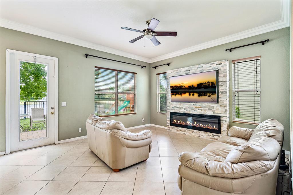 Spacious 2-Story Home located in a Gate Community (Prime Location). Beautiful Lake view (Lighted water fountain) This home is loaded with features you will fall in love with. Cathedral ceilings, premium crown molding throughout the home, decorated with a custom fireplace wall with room to mount a TV. Master bedroom is a must see. AC replaced 2 years ago (10-year warranty) New water heater. Laundry room includes deep sink, built-in countertops, large linen closest.
