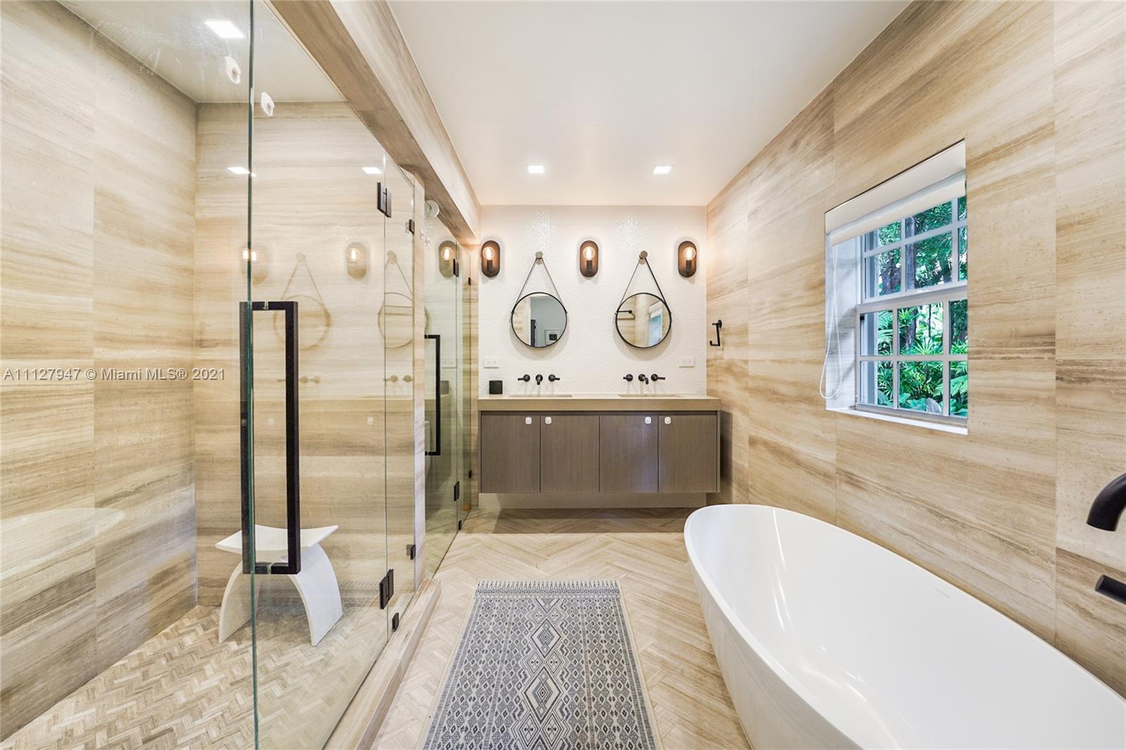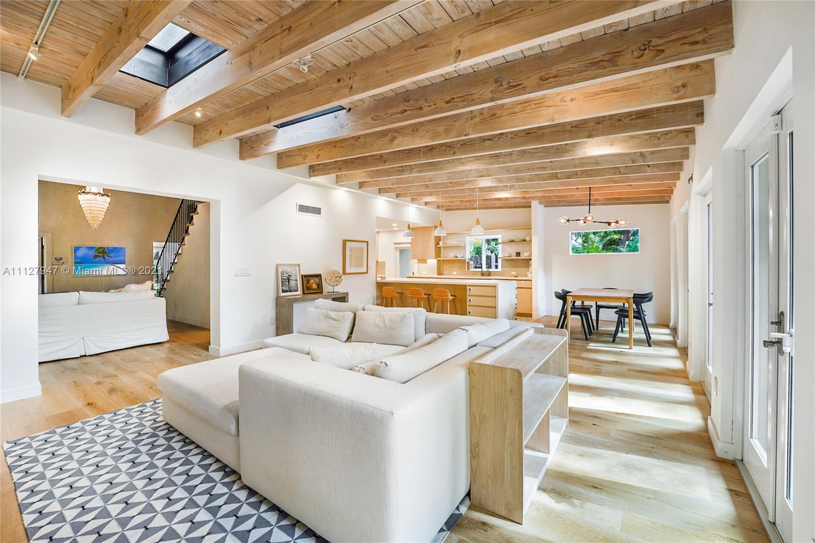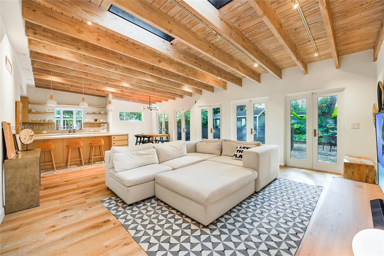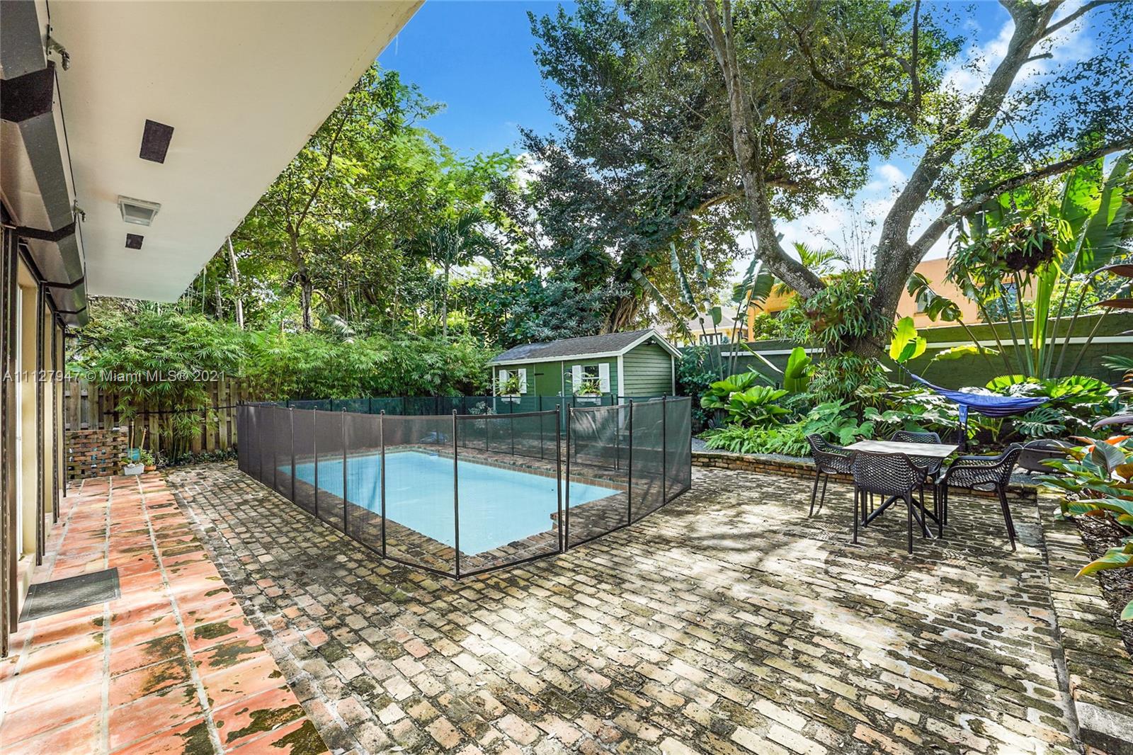 A fairy tale home meets modern design elegance. This 3 bed/3bath remodeled gated home is nestled on an oak laden lot. A dramatic foyer and living room with 20ft. beamed ceilings leads to social areas, with views through French doors to a salt water sparkling pool. The open family/dining area and gourmet kitchen make this home perfect for entertaining! Special features include a downstairs master bedroom (27 x 17), 10ft. ceilings, hardwood floors, new impact windows, just steps to downtown Coconut Grove and all the top schools.