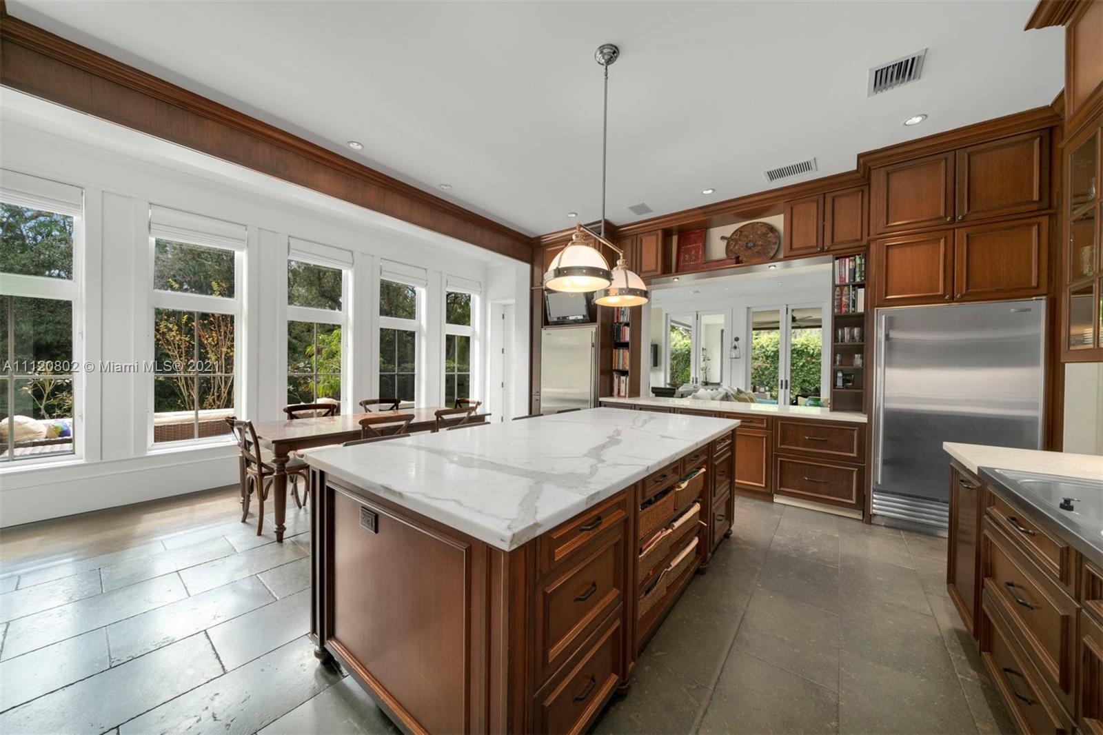 Extraordinary 13,849 Sq. Ft. residence in the coveted and guard-gated Snapper Creek Lakes community, with 8 bedrooms, 6 full and 2 half baths, Brazilian cherry wood floors and elegant finishes. Includes a theater, billiard room, bar, wine cellar, gym and 4-car garage. The formal dining and living rooms are perfect for entertaining, and the chef’s kitchen has top-of-the-line appliances, marble countertops and breakfast area. The stunning library has a fireplace and circular staircase leading to the second level. The main suite has a private terrace and jacuzzi, spa-like bath with dual vanities, frameless shower and bathtub. Nestled on 1.14 acres of gorgeous grounds, with an infinity pool, adjacent lounge area, summer kitchen, gazebo and homeowner's rights at the Snapper Creek Marina.