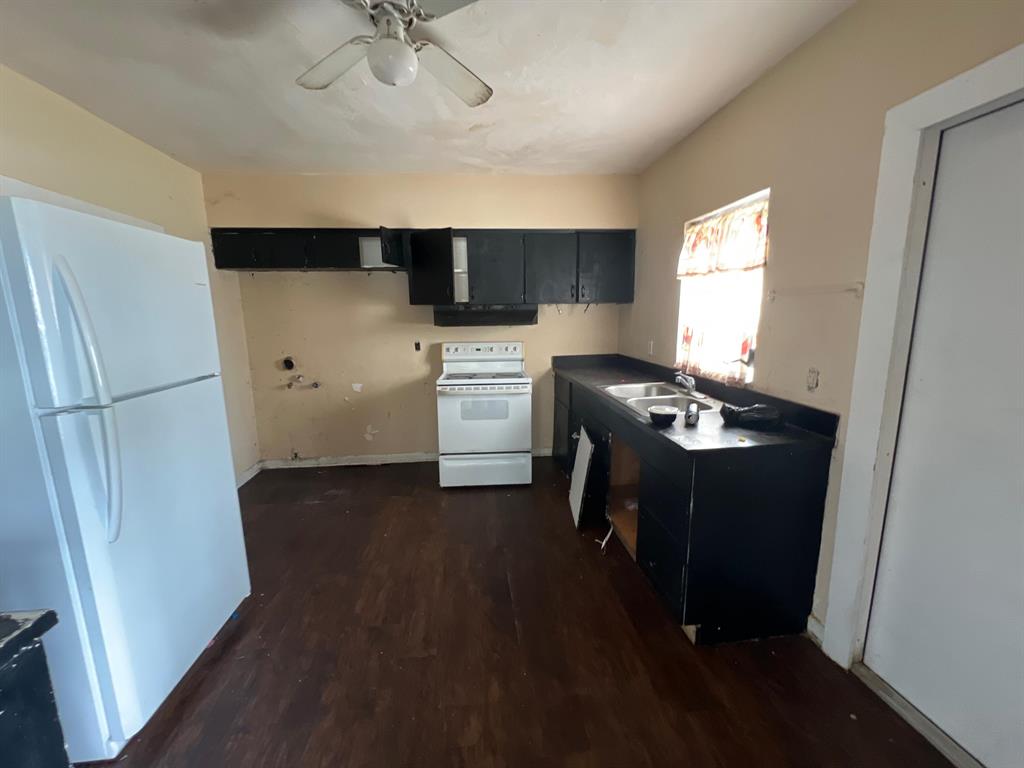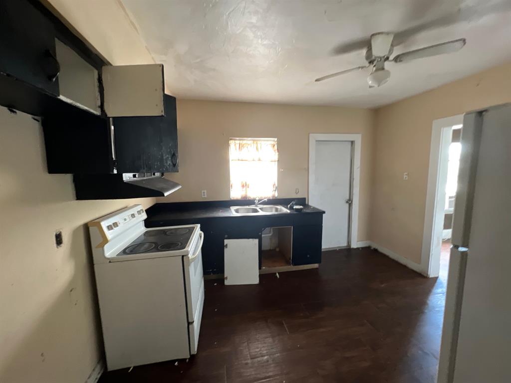 Spacious home and spacious double lot. The home has 4 bedrooms and 2 bathrooms. Great front porch, lots of windows and floors have laminate flooring throughout. All the sizes and information are approximate, buyer to verify. All offers must be cash only, with no less than $10k deposit, no inspection period. Must have due diligence done before submitting offer. Proof of funds must accompany offers.