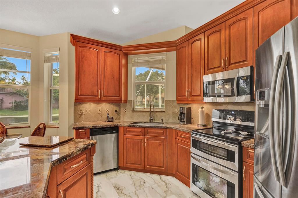 LOVE where you live - happily ever after in this 4 BDRM 2 BA Pool home on a crystal beautiful waterway. IMPACT windows throughout, hurricane protected garage, UPDATED kitchen w/ gorgeous tall wood cabinets that compliments GRANITE counters, top of the line SS appliances, OVERSIZED granite kitchen island, BAY WINDOW overlooks pool and yard, BRAND NEW 4 TON 16 SEER Air Conditioner, GENERATOR stays with home! UPDATED bathrooms, soak endlessly in the primary bathroom's JACUZZI tub, cabana bath door leads to pool deck ALL CLOSETS custom shelving, 24x24 PORCELAIN tile flooring, FORMAL dining & living rooms, in addition to a FAMILY ROOM, SCREEN ENCLOSED POOL w/ large cool decking, get plenty of use w/ additional garage shelving, pull down staircase to attic. Freshly painted MOVE-IN READY!