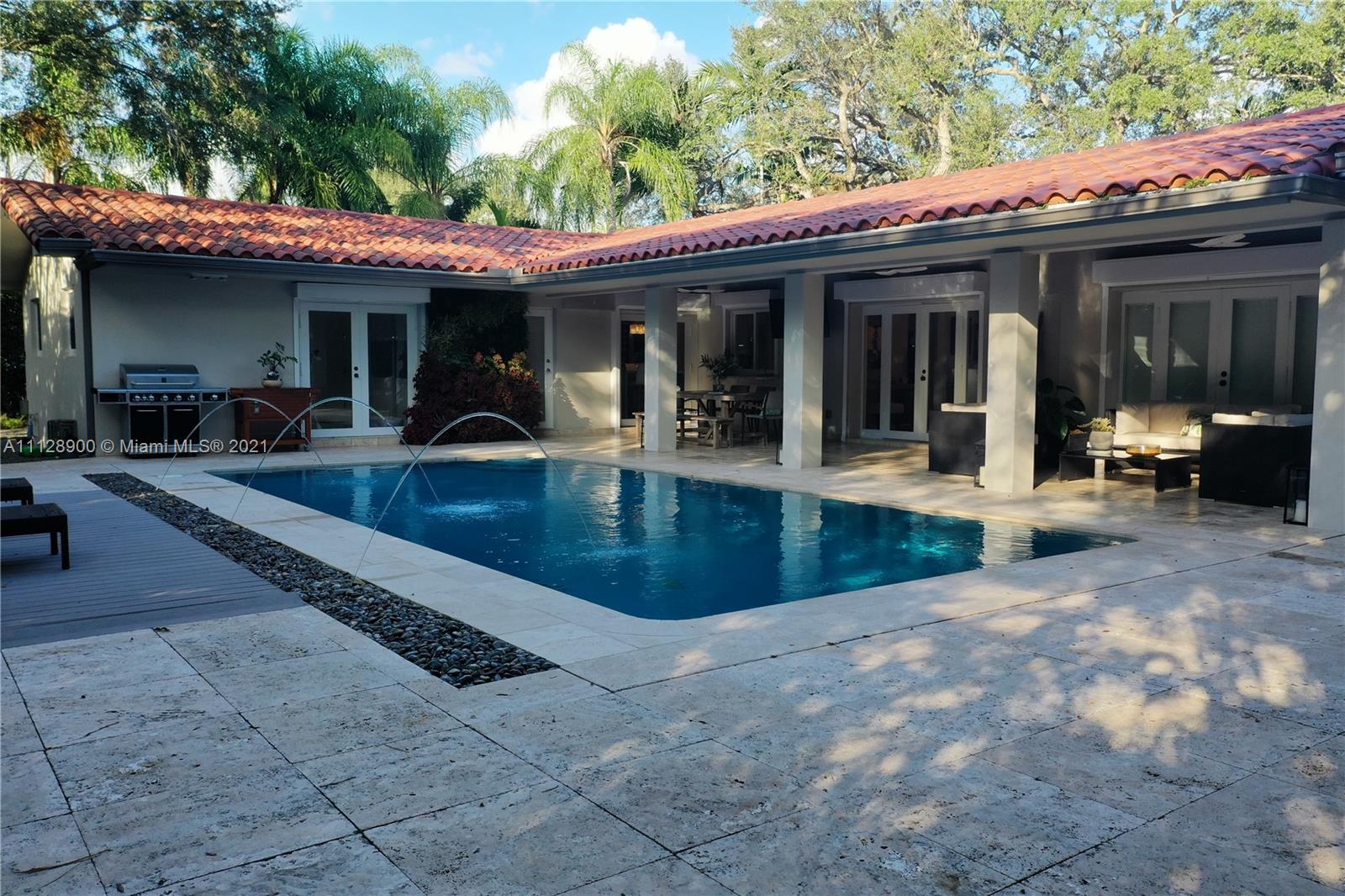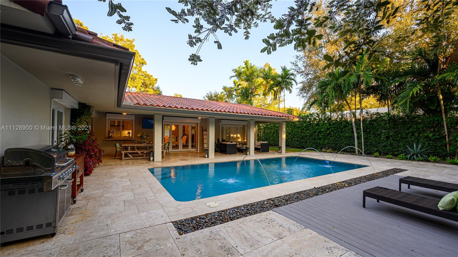 Exquisite South Gables home with pool in this peaceful neighborhood. This home features 3 bedrooms/ 3 bathrooms plus an ample den which be converted back into a bedroom (originally 4 bedroom). A large covered deck/terrace, expansive living room, pristine Veneta Cucine Italian kitchen with luxury appliances, ample family room, LED lights, lush landscaping, smart system throughout the entire property, spacious garage & a salt water heated Zodiac system swimming pool. This home is ideal for indoor/outdoor entertaining. Residence has been fully updated to have been made a forever home that sits on a large 11,000 sq ft. lot, with a pristine backyard. Unbeatable location! 5 minutes from downtown Coconut Grove, Merrick Place and South Miami. 15 min to Brickell/downtown & UM walking distance.