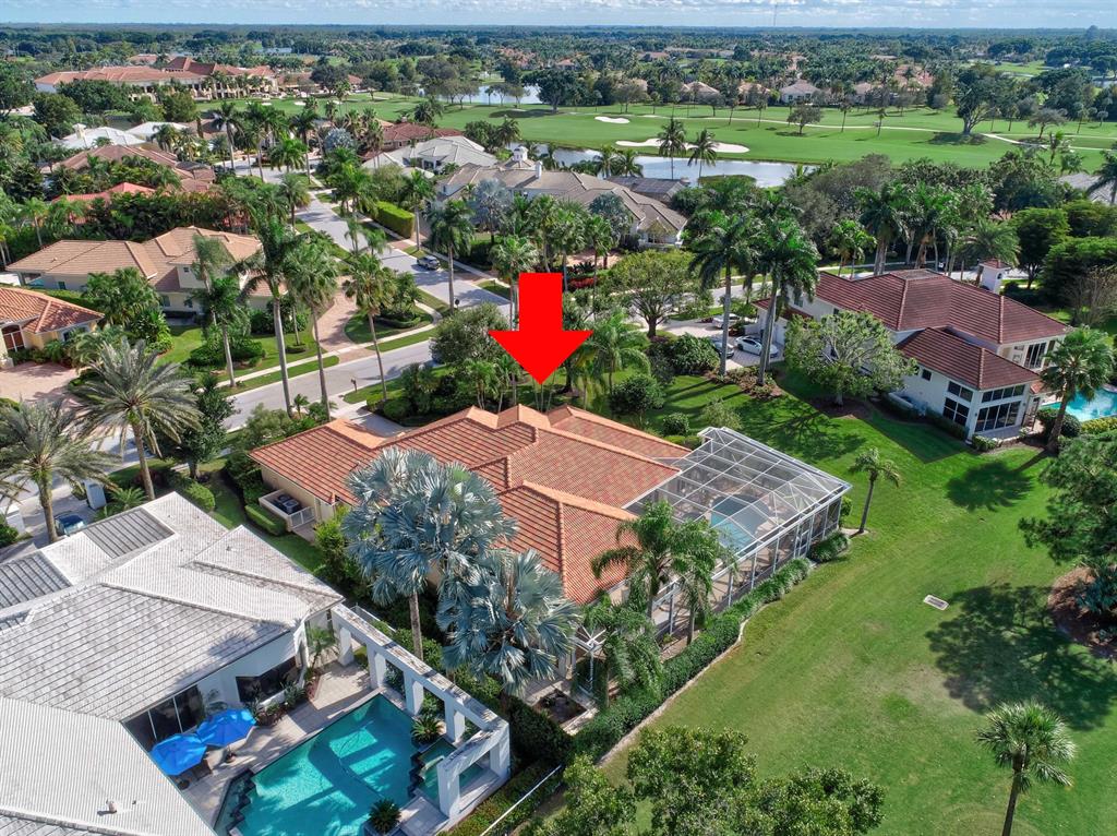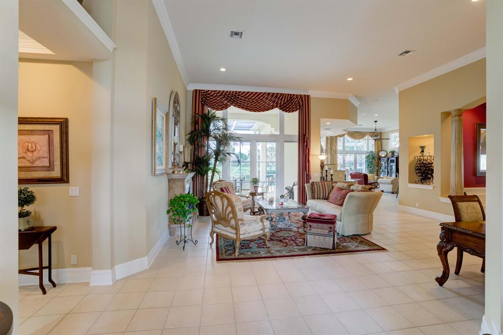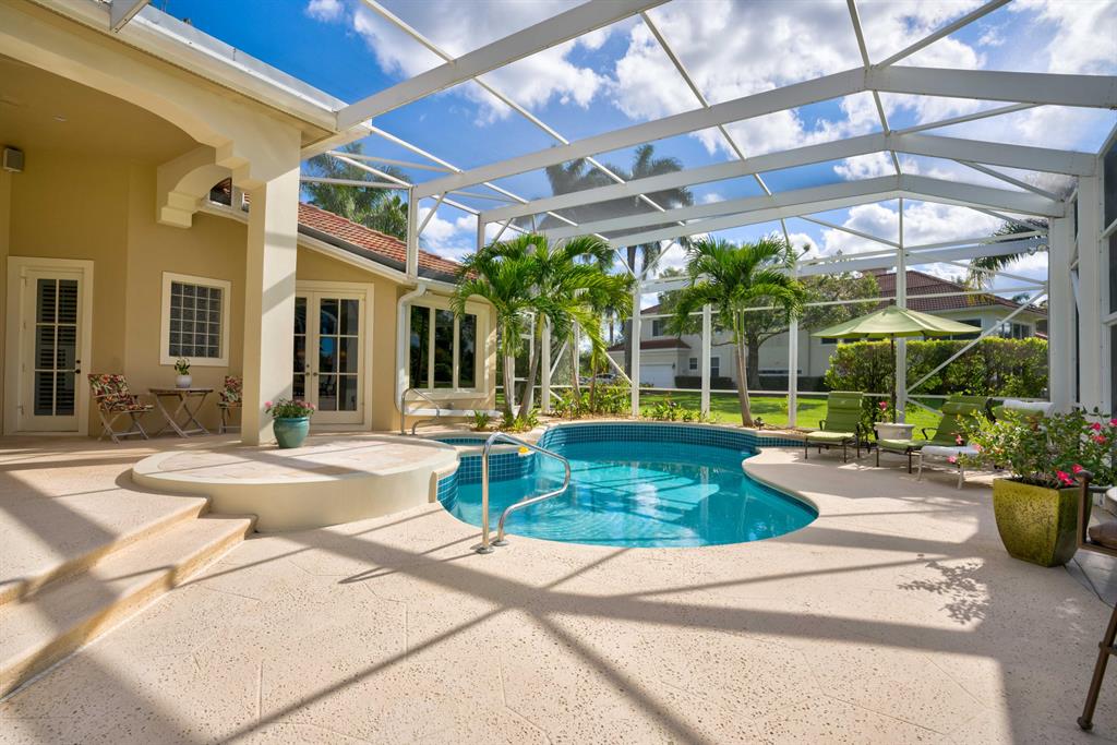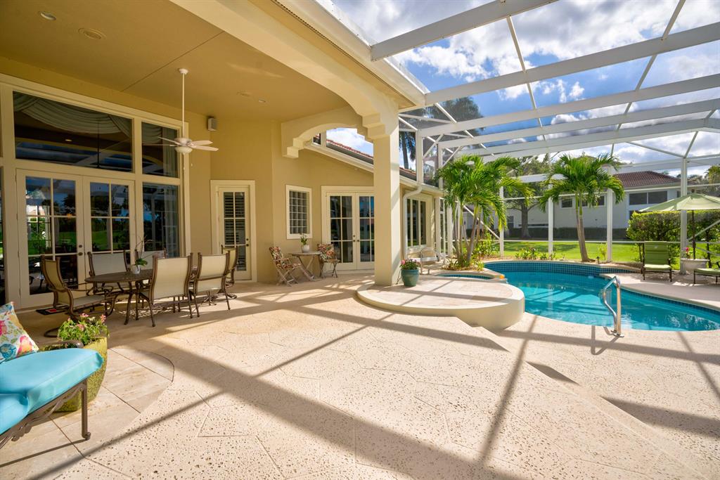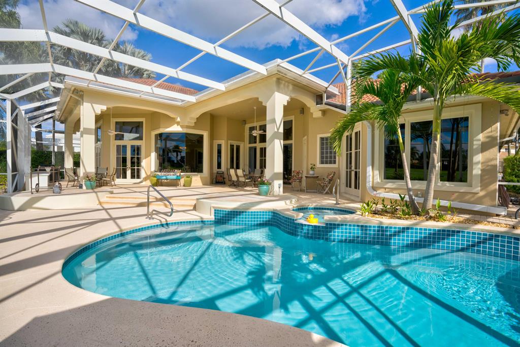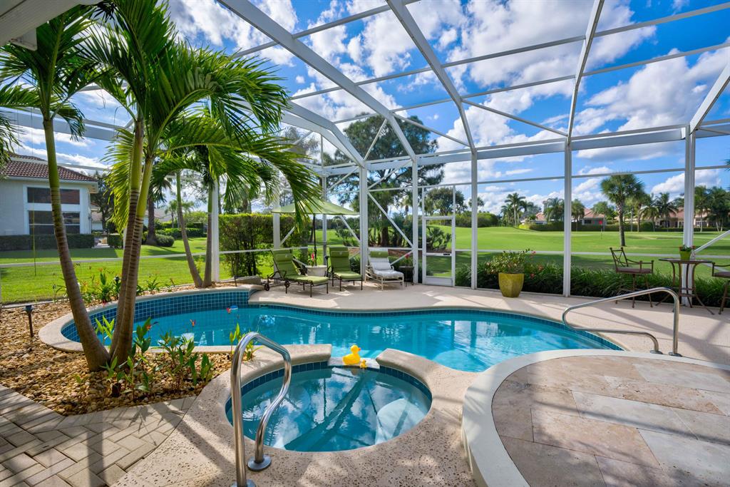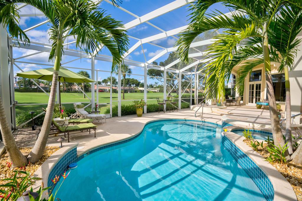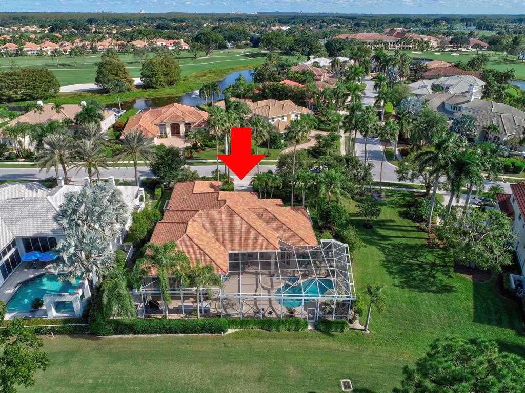 Welcome to your new home! This stunning 3 Bedroom + Office/Den, 4 1/2 bathroom, 2 1/2 car garage custom home is located in the very desirable Ibis Golf and Country Club and sits directly on the 2nd green of the world-renowned ''Legend'' Nicklaus golf course. From the moment you walk in you will feel right at home and notice the fantastic natural lighting and breath-taking views. All 3 bedrooms are en-suite with full private bathrooms and walk-in closets. The primary bedroom features updated ''his'' and ''hers'' full private bathrooms (one can double as a Cabana Bath) and THREE custom walk-in closets with wood floors. The Office / Den features custom built-ins and wood floors. The formal dining room features a coffered ceiling, wainscoting, 2-piece crown moulding, and large wooden columns.