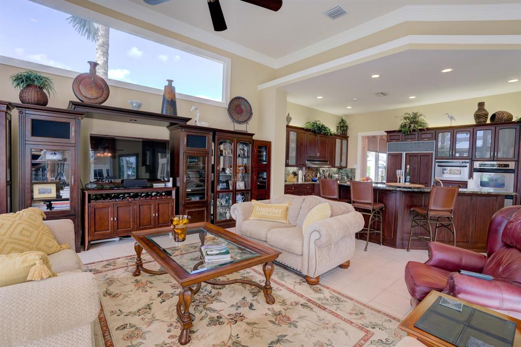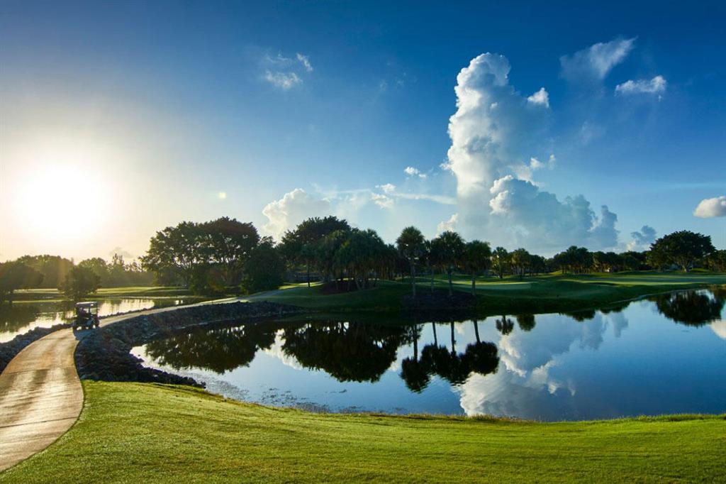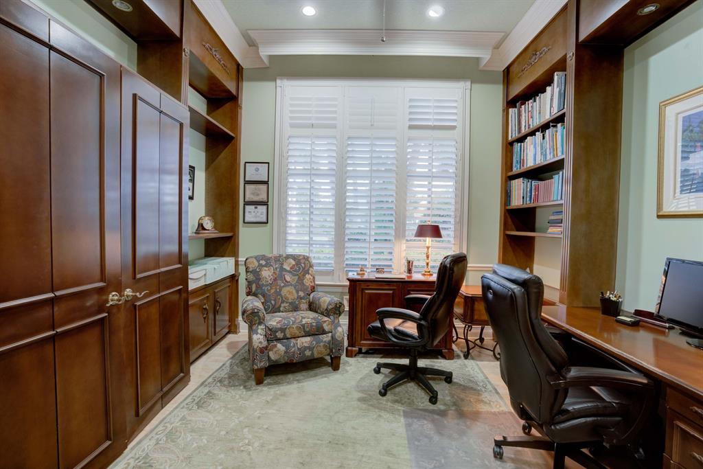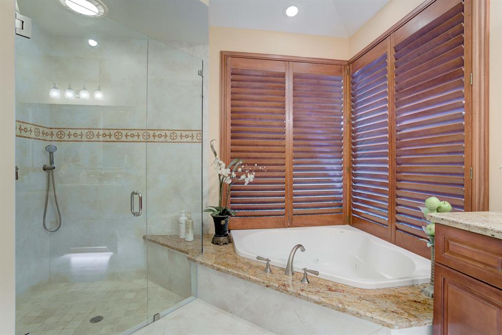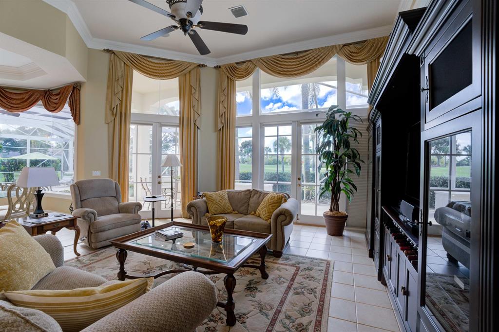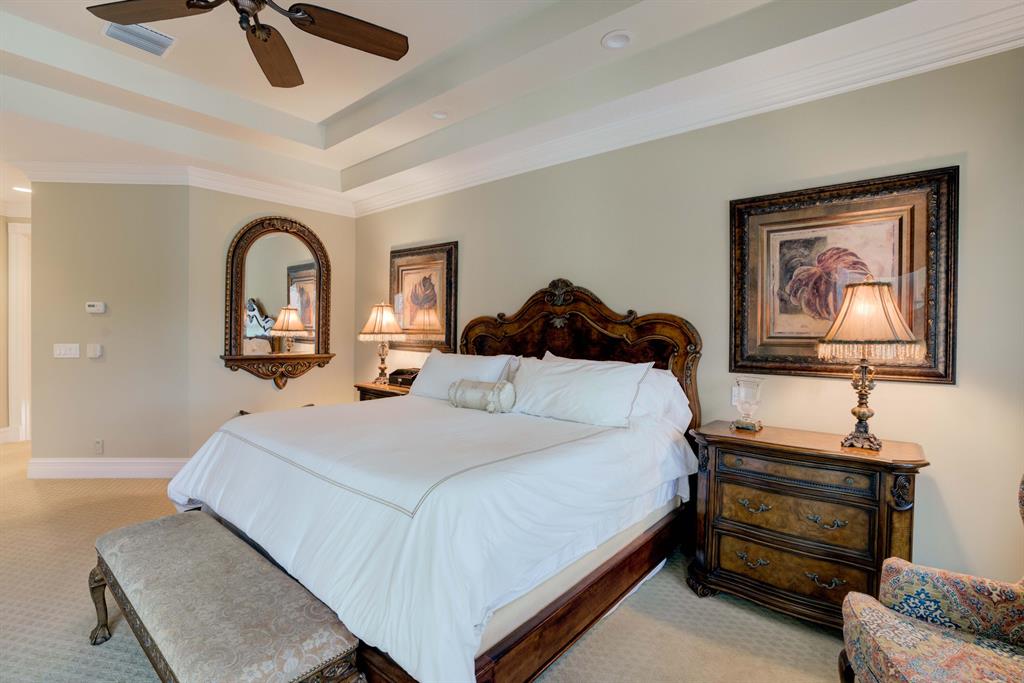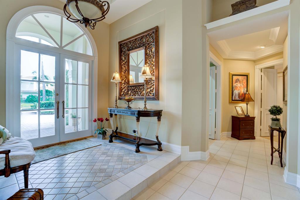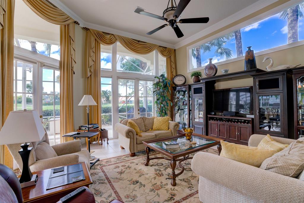 Welcome to your new home! This stunning 3 Bedroom + Office/Den, 4 1/2 bathroom, 2 1/2 car garage custom home is located in the very desirable Ibis Golf and Country Club and sits directly on the 2nd green of the world-renowned ''Legend'' Nicklaus golf course. From the moment you walk in you will feel right at home and notice the fantastic natural lighting and breath-taking views. All 3 bedrooms are en-suite with full private bathrooms and walk-in closets. The primary bedroom features updated ''his'' and ''hers'' full private bathrooms (one can double as a Cabana Bath) and THREE custom walk-in closets with wood floors. The Office / Den features custom built-ins and wood floors. The formal dining room features a coffered ceiling, wainscoting, 2-piece crown moulding, and large wooden columns.