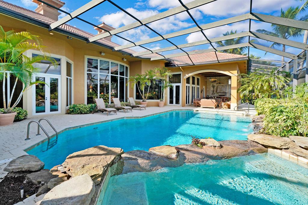 Masterfully built and beautifully appointed custom estate awaits just you and your suitcase. Situated on THE LARGEST LOT in Ibis's prestigious Eagle's Isle neighborhood, this 6BR/6.5BA+LIBRARY/ 5-CAR GARAGE Cribb-built estate boasts an epic GUEST HOUSE with a dramatic walkway that connects the two separate homes. With 500 sweeping feet of prime golf and water views east, this estate provides panoramic views of the 12th hole of Nicklaus' redesigned Legend Course. As you approach the residence, you'll first notice the 1700 SF guest house, architecturally designed to complement the main home. The circular Chicago Brick driveway and wood trimmed port o cochere welcome you to this one-of-a-kind estate. Everywhere you look, you will appreciate the fine materials and quality craftsmanship.