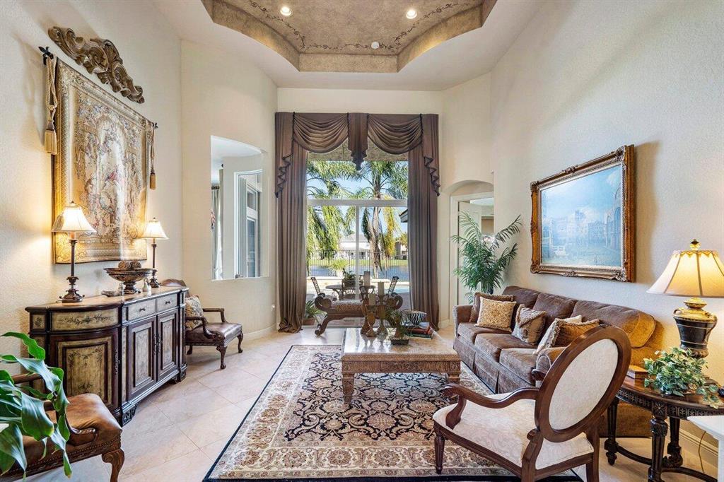 SPECTACULAR! From the moment you enter, the gleaming floors & PANORAMIC LAKEFRONT VIEWS take your breath away & you instantly know this is your home. This 4 bed, 2 1/2 bath LAKEFRONT POOL HOME w/ 2 YEAR OLD ROOF has been meticulously maintained & is located in an A-RATED SCHOOL DISTRICT in the HIGH-END RESORT neighborhood of Saturnia. You will be WOWED as you enter the grand foyer & take in the stunning lake views & volume ceilings w/ jaw-dropping artistic details. Be prepared to be impressed when you step out onto the beautifully paved patio w/ panoramic lake views- perfect for entertaining family and friends. Enjoy the tranquil sounds of the waterfall cascading over the pool or walk down to the lake & explore Florida nature with a front-row view of stunning sunrises and sunsets. The 2