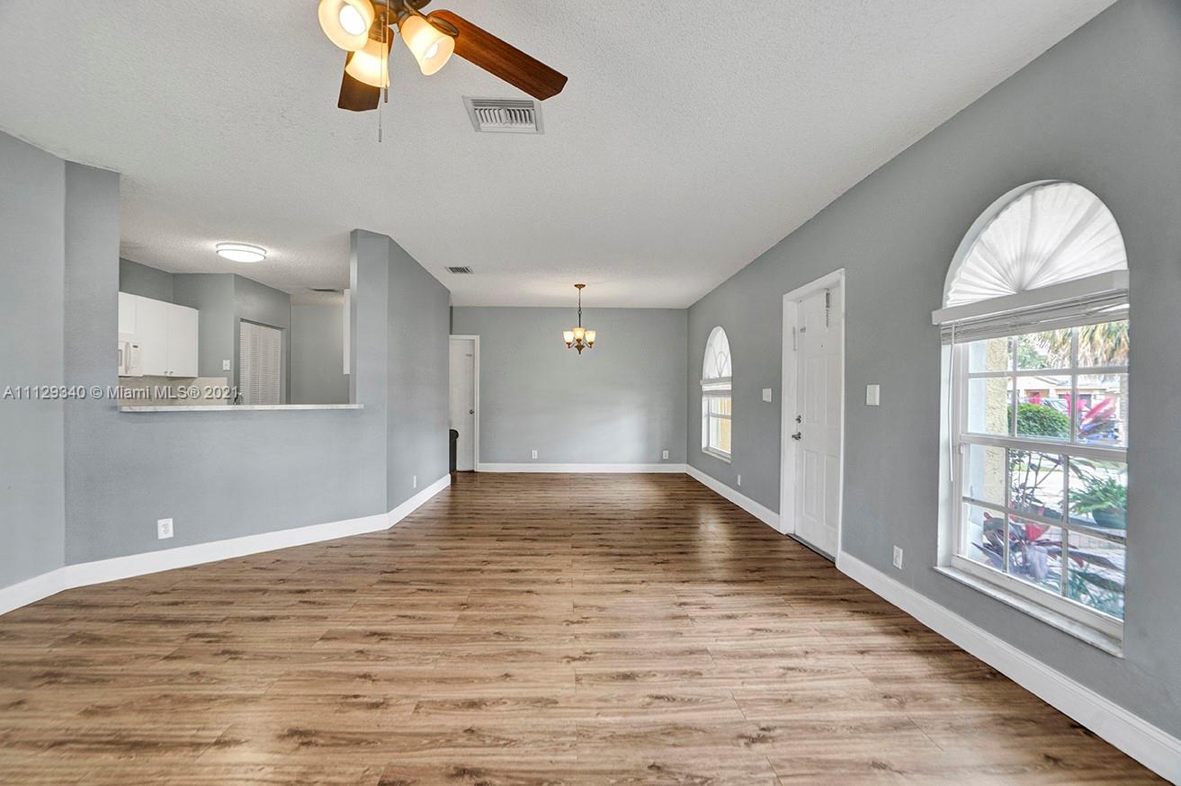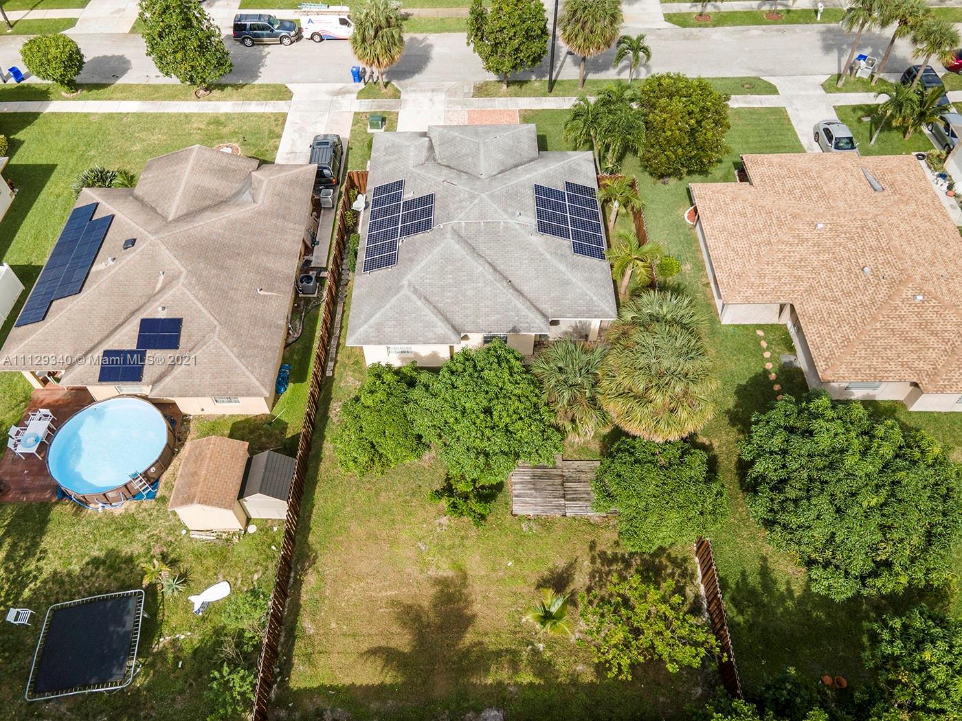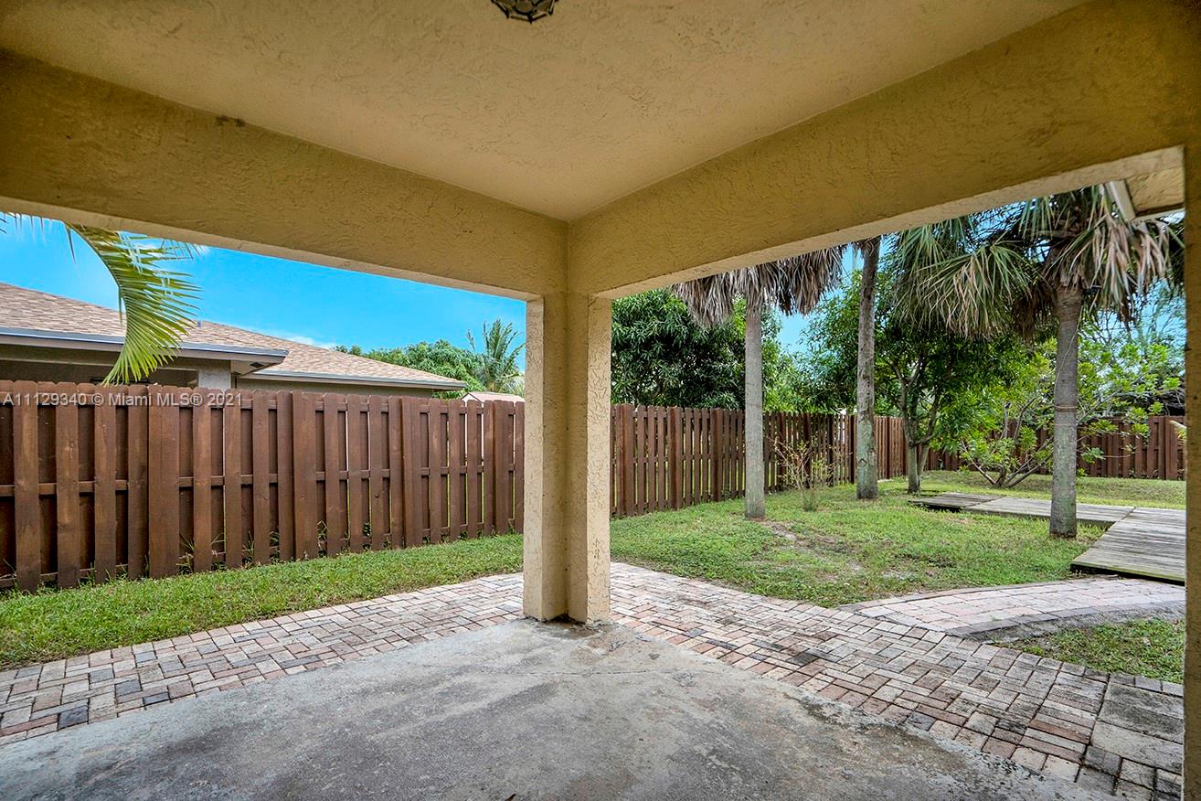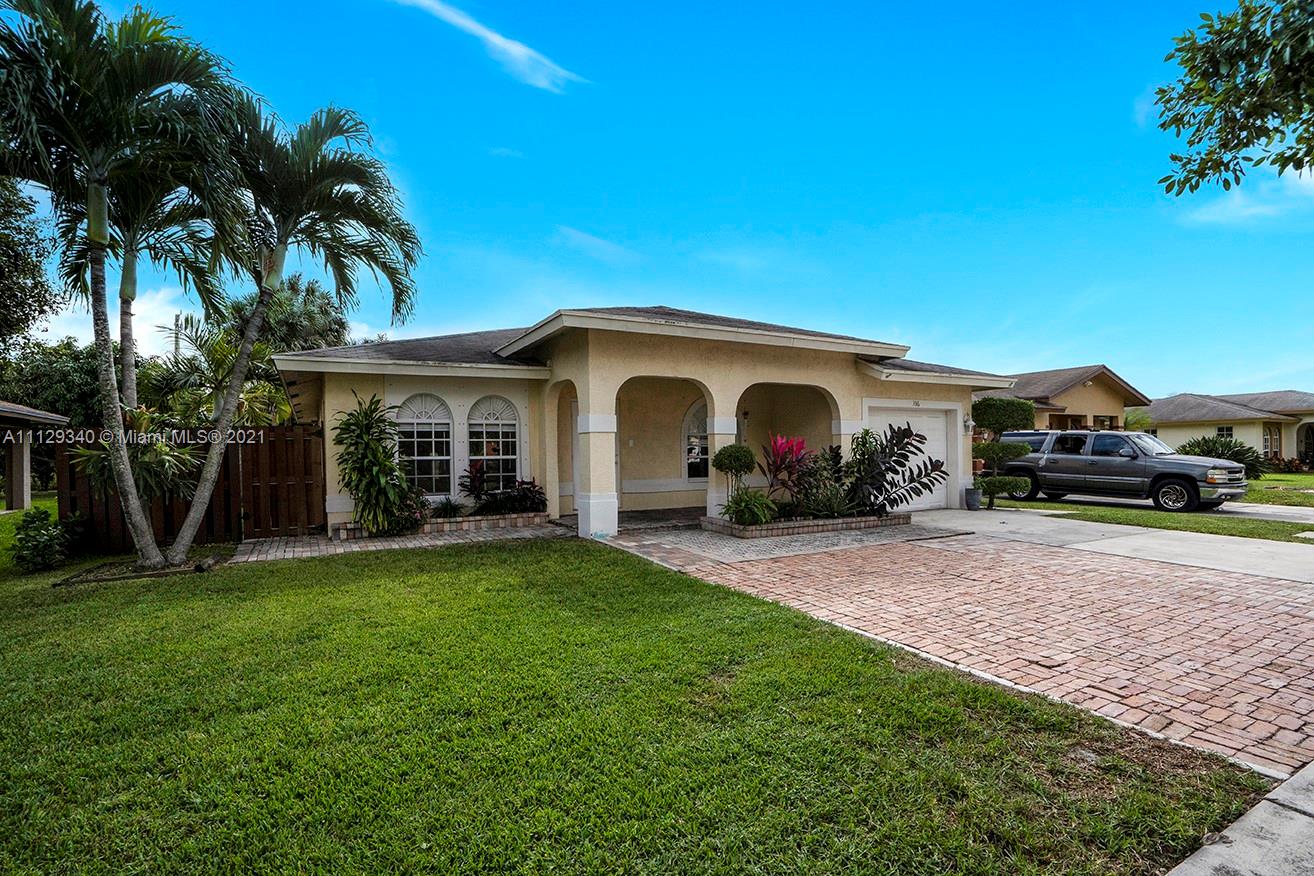 Kendall Gardens at Pompano Beach amazing opportunity. Single family house located in a "Cul-de-Sac in a few min to I95, built 2001, house has 2 sets of solar panels as great bonus. (paid by seller)Over 1700 sqft 3 beds, 2 full bath + office/den/family room.(it can be easily converted into a 4th bedroom. Open Kitchen to dining and living room. Arch windows, laminate wood floor throughout. Master with dual sinks, shower with glass door and walk in closet. Laundry tub and W/D in garage. No association fees. Front and back porch, oversized lot fenced with fruit trees in a large backyard, wood deck and room for pool. Great pavers in the front with space for 3 cars + 1 car garage. Sale is not contingent on appraisal. Easy to show.