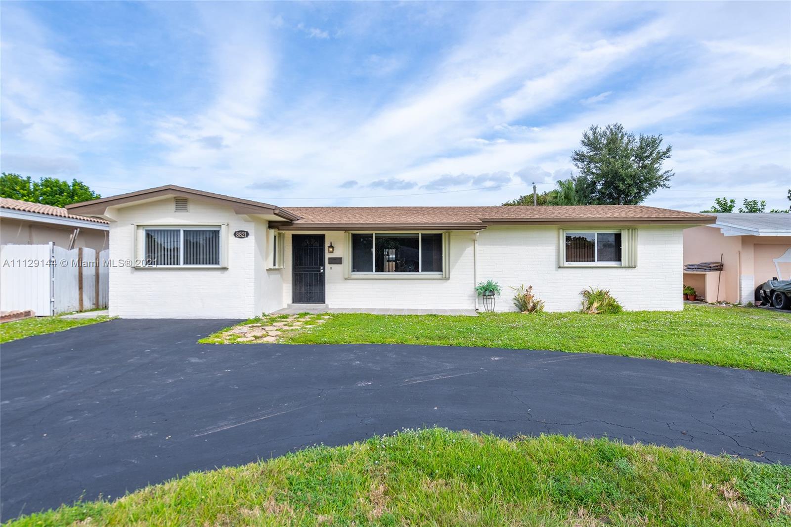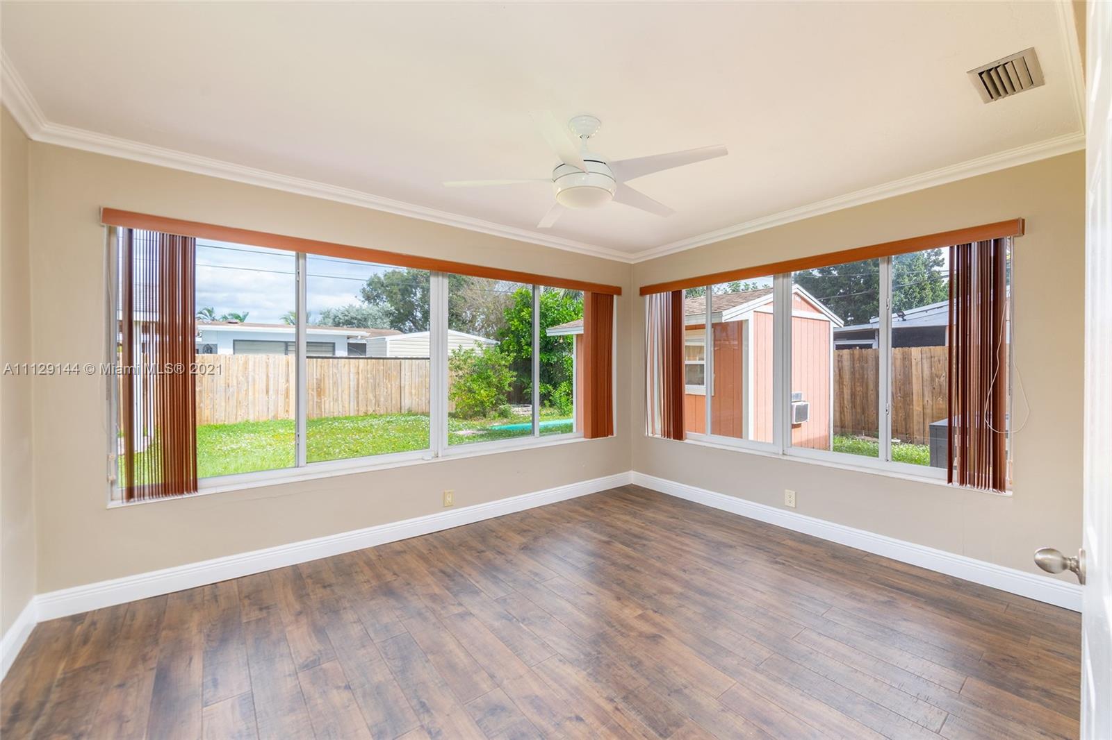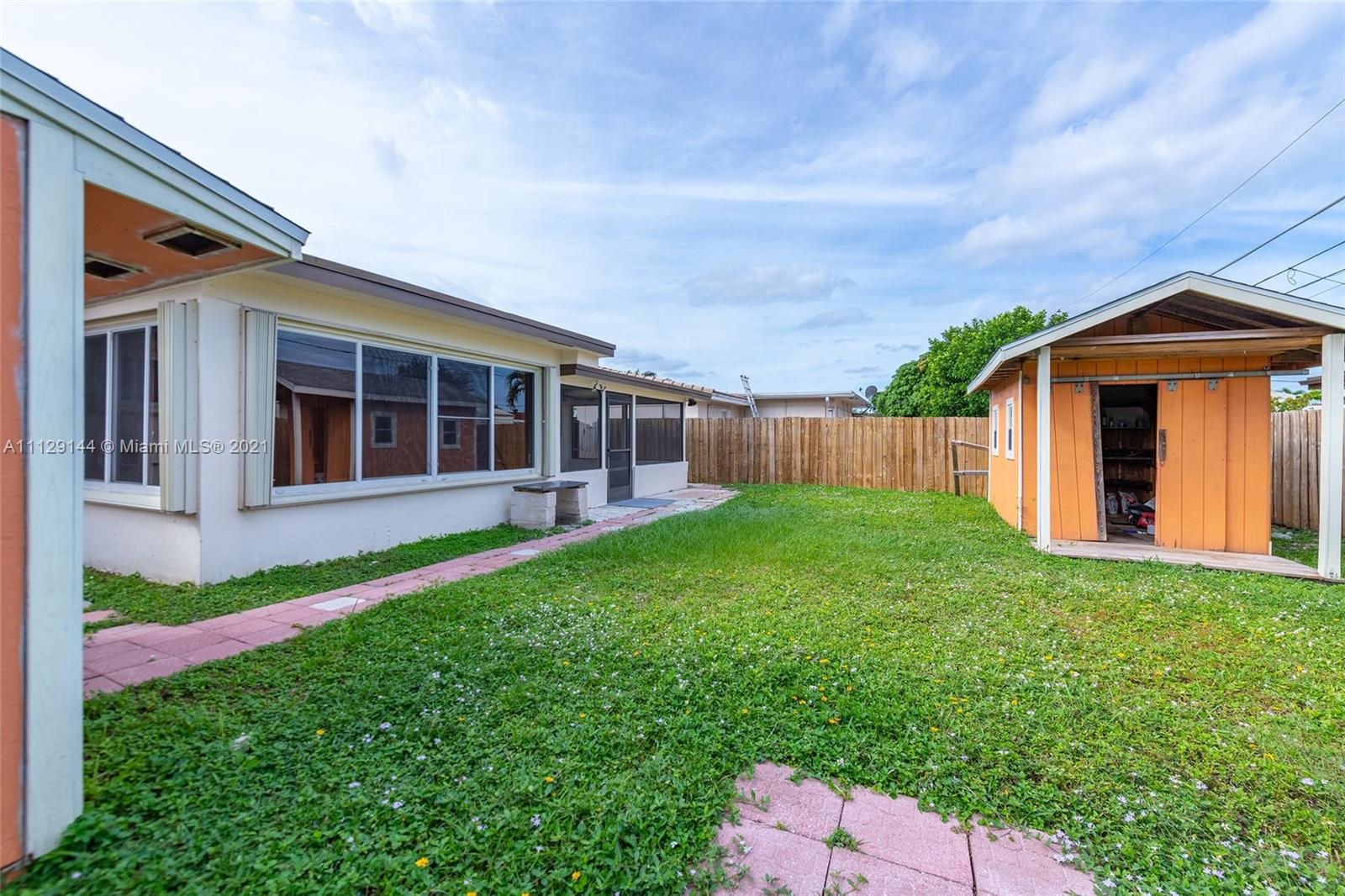 Beautiful home in a quiet and safe neighborhood in Pembroke Pines. No HOA and there is plenty of parking with this circular driveway! The home boasts upgrades such as new brand flooring in bedrooms and brand new remodeled bathrooms. It also features a newer kitchen with pantry, a newer roof (4 years old), and a newer 4-ton air conditioner. It features a bonus room that could be used as an office, mancave, playroom, etc. Tons of natural light shine throughout this home, making it a bright and peaceful space. The kitchen sink overlooks the screened in patio and a huge fenced in backyard featuring a storage shed, a firepit area, and a "she-shed" already set up with AC and wood flooring. The home comes complete with a large laundry room and is fully hurricane protected.