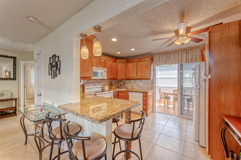 A new tile and flat roof is now being put on this beautifully upgraded 2 Bedroom / l Bath Single Family home in 55+ Leisureville Community. No Land Lease! The LOW Leisureville Community fees include a scheduled Community Shuttle Bus, Common Areas, two heated Pools, use of par 3 golf course and scheduled roof and house painting. Home has Impact Windows EXCEPT the Florida Room windows. Water Heater replaced Nov. 2021.