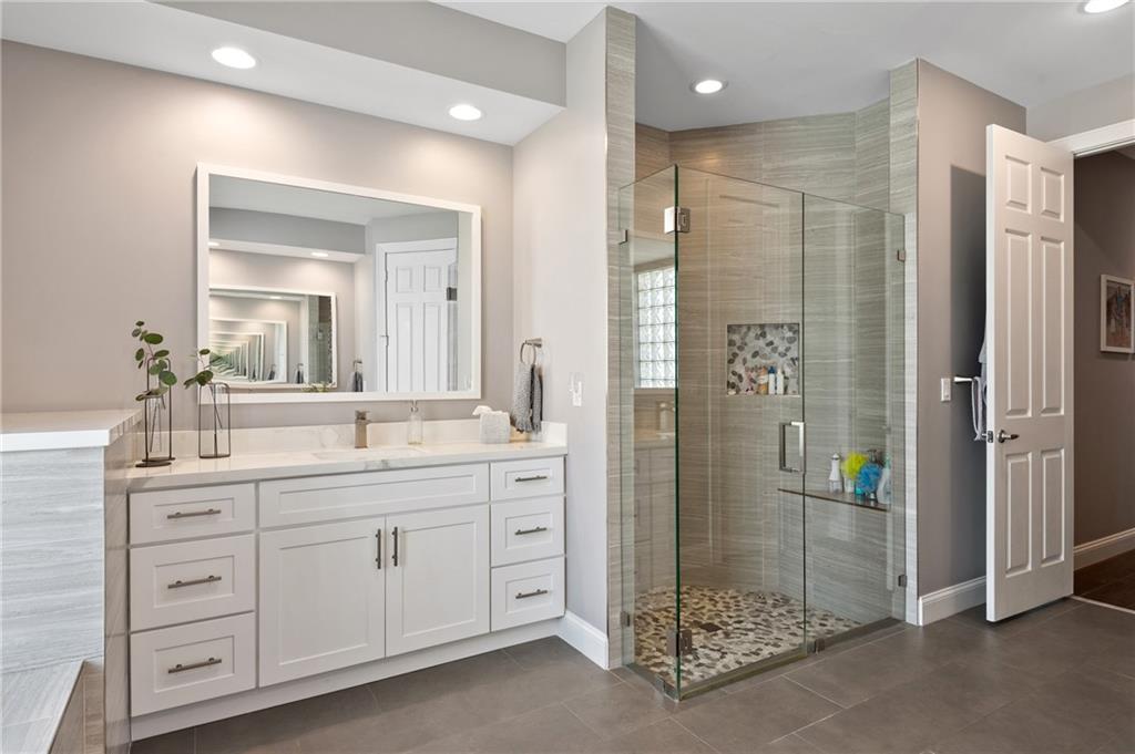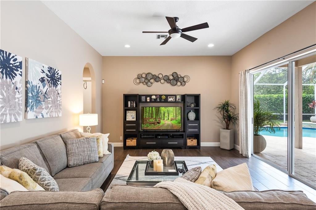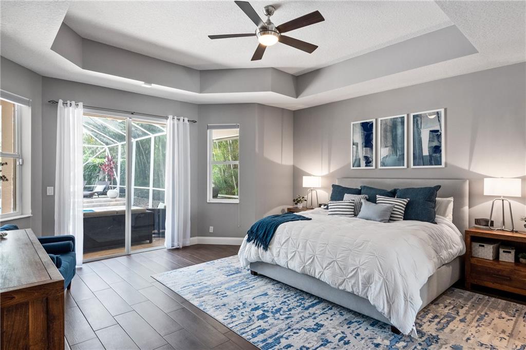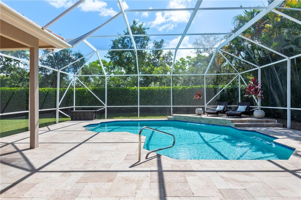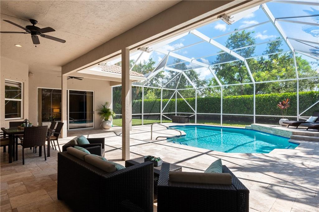 Beautifully renovated 4 bedroom (plus office), 3 bathroom, 3 car garage, pool home with a triple split floor plan. This one story home is located in the prestigious gated community of Boca Falls in the ESTATES. This home has a brand new roof (2020), new 50 gallon hot water tank (2021), fully updated kitchen with white shaker cabinets, granite counters, double oven, stainless steel appliances, new wood like tile flooring throughout the common areas, all bathrooms have been updated. Large screened in pool perfect for entertaining. Pool was updated to a salt water system with a new pump. HOA includes community pool, 24 hour roaming security, two convenient gates with live security guards.