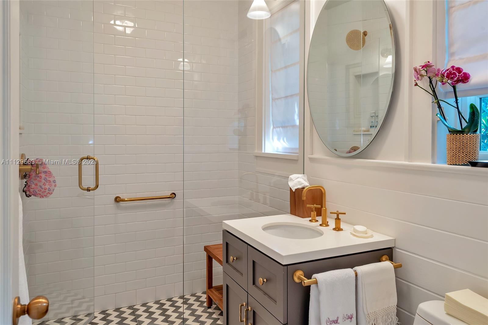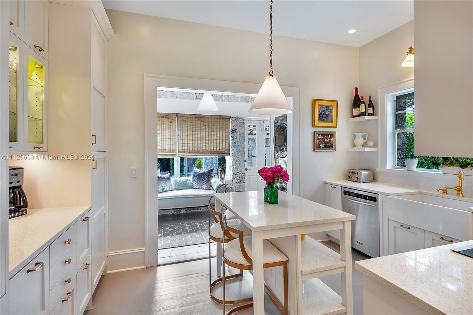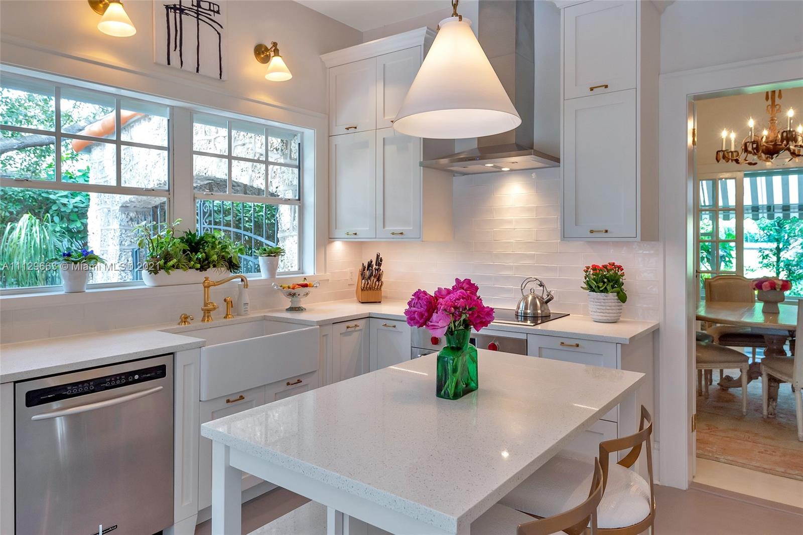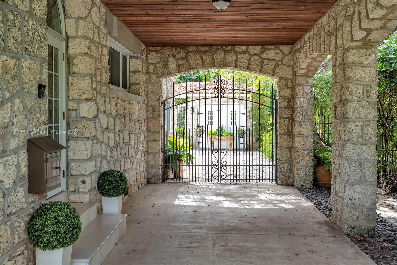 Situated on the Granada Golf Course sits Coral Cottage, the quintessential coral rock historic 3/2 main house with a 1/1/guest house, where in 2016, no expense was spared with this complete designer renovation. New oversized marble master bath with custom coordinating marble California Closets. New kitchen fully renovated. Black & white marble floor imported from Spain in side entrance hall. Partial impact windows and panels for the historic windows and doors. Miami-Dade county pine floors. Impeccably trimmed garden and new Chicago-brick patio. 1/1 guest house maintains quaint garage facade, features a new exquisite foyer, wine fridge/bar, and bathroom. Main house light fixtures not included. Per owner, sq. ft. larger than tax roll.