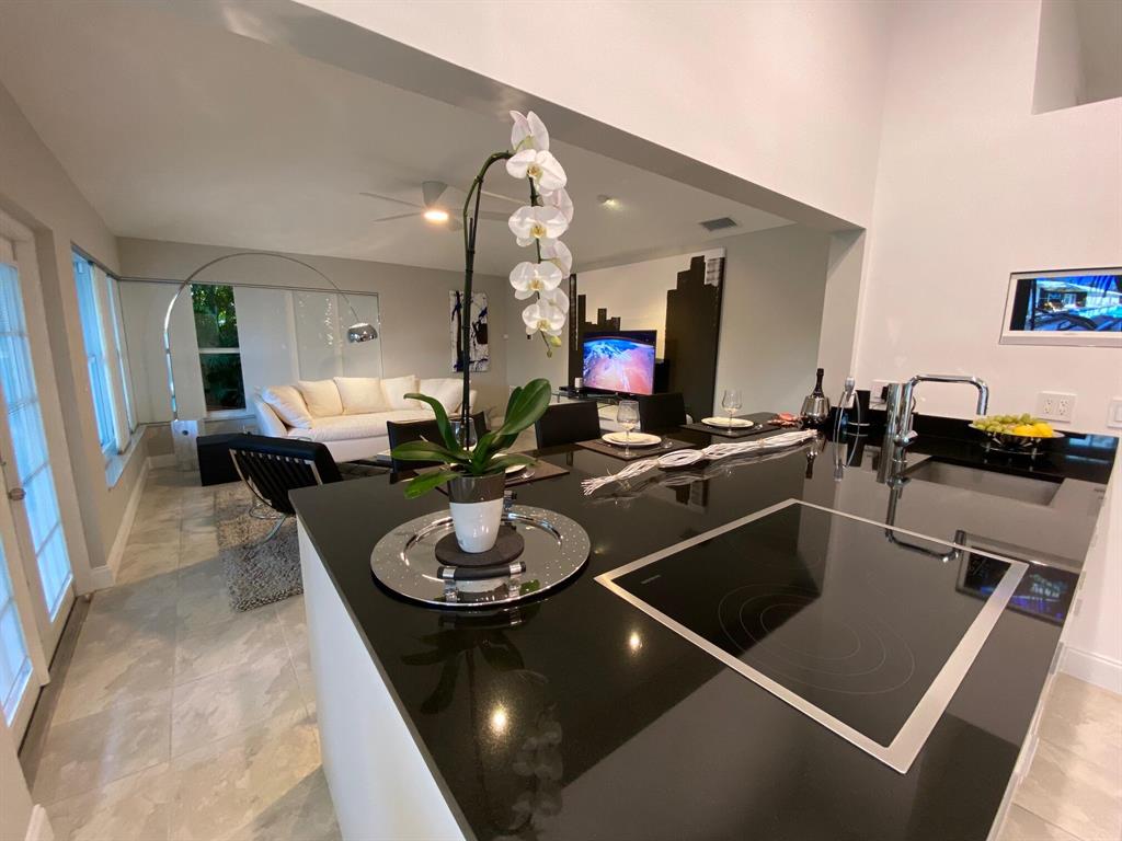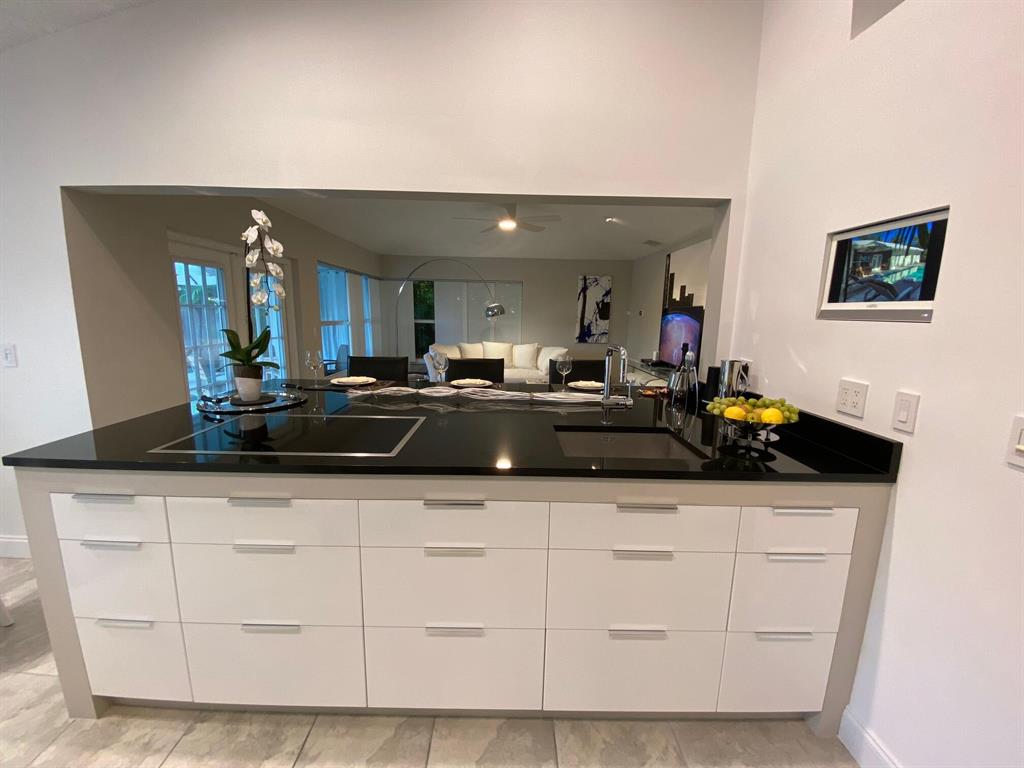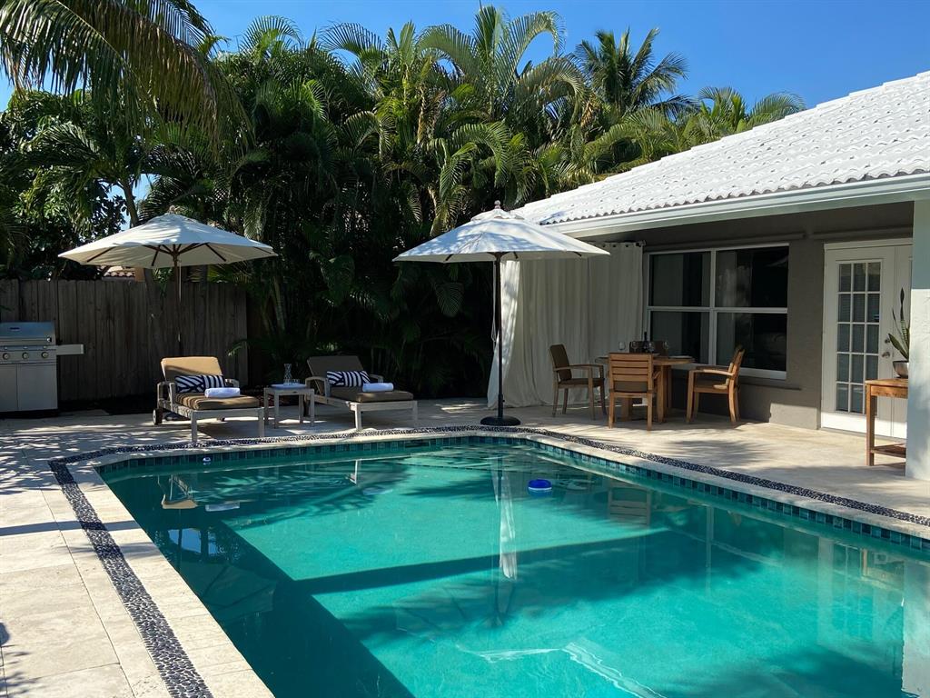 This move-in ready designer pool home was completely renovated both inside and out in 2021...located on an oversized corner lot in desirable Hidden Lake community in East Boca Raton, this stunning tropical reteat features very clean, contemporary design using only the finest natural premium materials. The custom built high end kitchen features Gaggenau and Thermodor appliances, an oversized granite counter top island in Nero Assoluto, with only the finest of fixtures available throughout..brand new white oak flooring in two bedrooms, LED lighting throughout, both bathrooms beautifully outfited with Porcelanosa natural granite tiles and corian, Grohe fixtures and so much more! Oversized, fully fenced private lot with only one direct neighbor offers the tropical FL lifestyle of dreams...