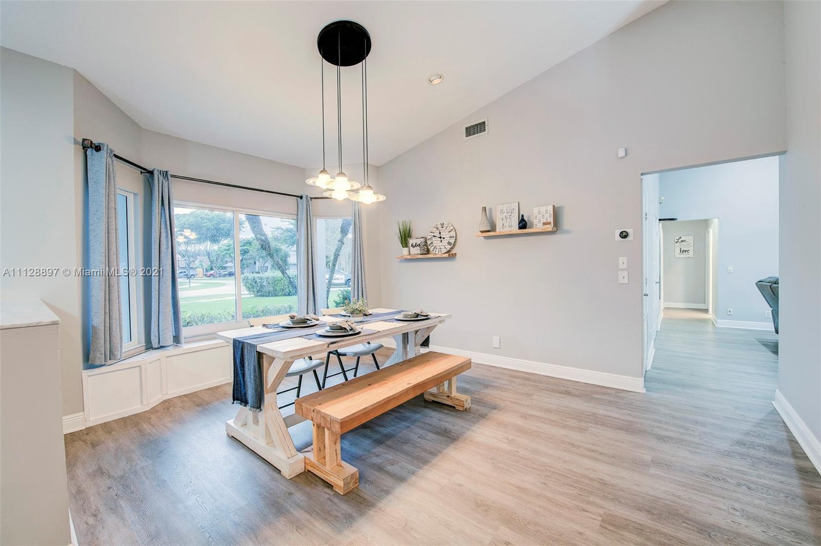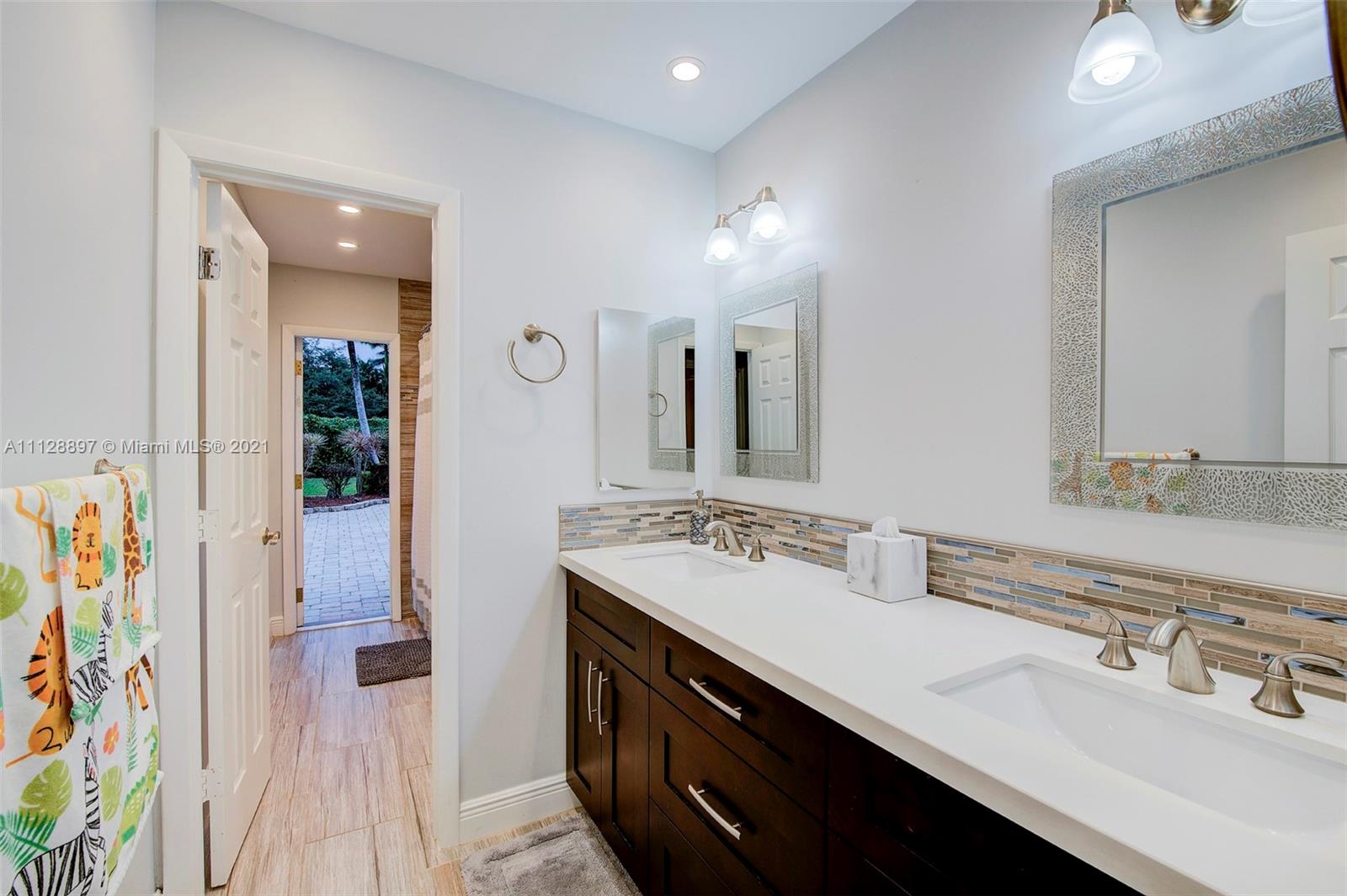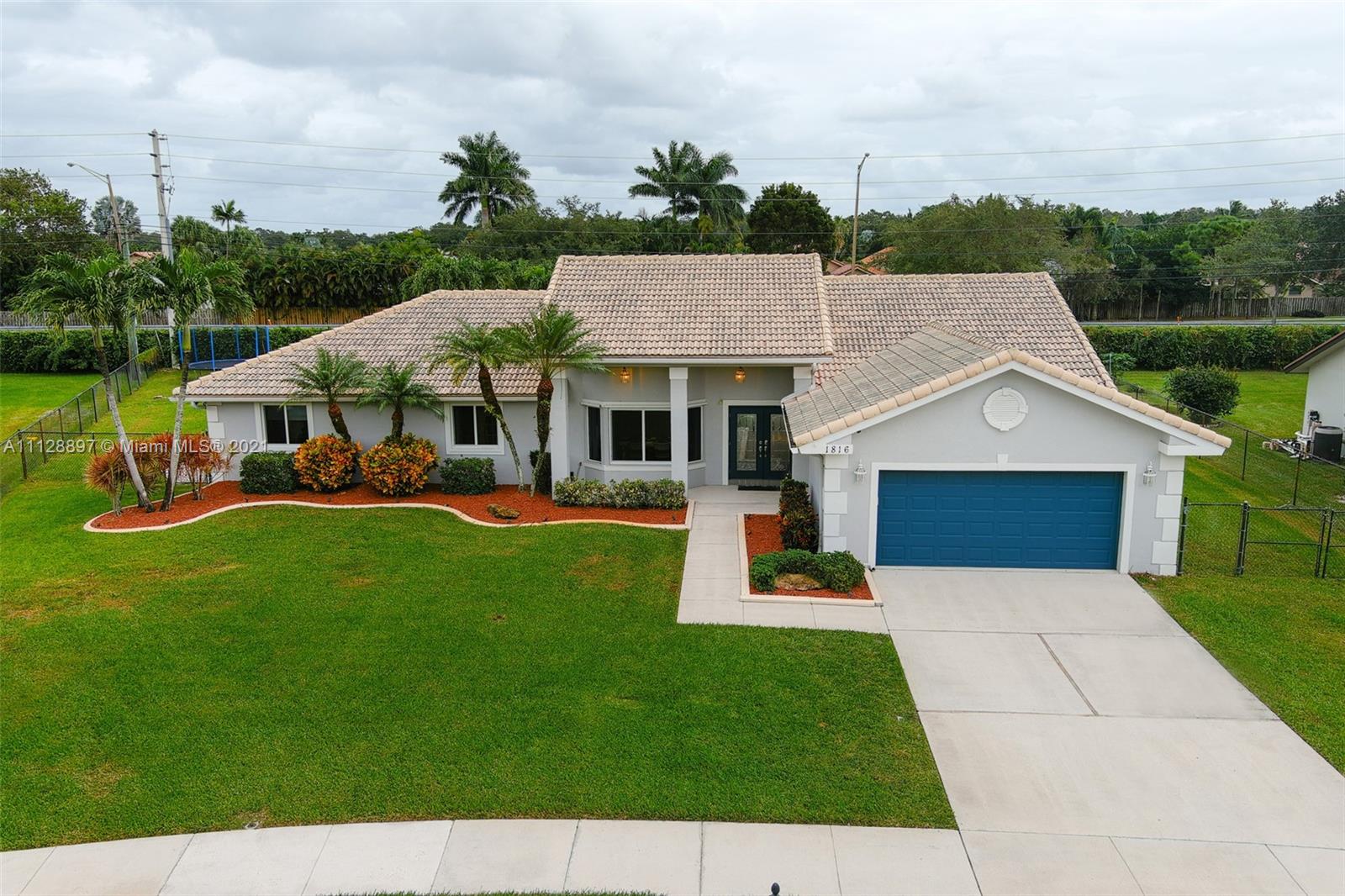 Prepare to be amazed! Incredible one-story pool home situated on a large lot in the desirable Ridgeview Lake Estates! This home boasts 4 bedrooms, 2 full bathrooms + a separate in law suite/offices. Enjoy an open floor plan w/ a remodeled kitchen that opens up to the family room area! Brand new flooring throughout. A/C 2021! Freshly painted interior and exterior! Hurricane impact windows + doors/ shutters throughout. Both bathrooms updated 2021! This is the ideal home for entertaining with an outdoor oasis & spacious lot! Covered patio area + summer kitchen facing serene pool/spa. Huge master suite w/completely gorgeous newly renovated master bathroom. Equipped with audio speakers and smart home features! Low HOA! Excellent location! A+ schools + close to major transportation!
