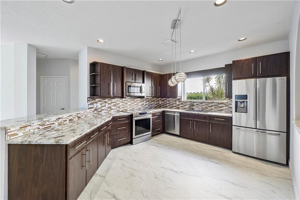 Open & inviting floor plan, light & bright for this waterfront home in ALL AGES gated community with plenty of amenities for the activity-minded family. New Kitchen with gourgeous upscale Espresso cabinets/granite counters/backsplash. Updated Bathrooms and beautiful marble-looking vinyl flooring throught most of the rooms. Large Owners suite looks out to the patio, and has frameless glass showers and tub combo, upscale vanities. Accordian Shutters & Impact Glass, Generator for storm protection, Electric Car charger, New Roof 2017, New AC 2020, 24-hr security. HOA includes Lawn, Paint, Internet, Cable. New Fitness Center & Clubhouse, Resort style pool, Lighted Tennis courts, Pickleball, playground, Pro Shop, Sauna, Yoga. Close to beach, shopping,A-rated schools. NO MEMBERSHIP REQUIRED.