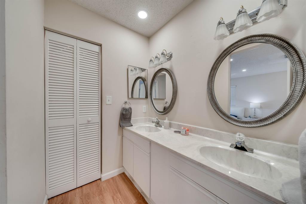 BEAUTIFUL 2BR/2-1/2BA TOWNHOUSE WITH SCREENED PATIO AND 1 CAR GARAGE. ELEGANT AND INVITING DOUBLE FRONT DOORS. STEP DOWN INTO A SPACIOUS LIVING ROOM WITH CATHEDRAL CEILING AND SKYLIGHTS. ENJOY YOUR DINING ROOM WITH A VIEW. LIGHT AND BRIGHT GALLEY KITCHEN W/ A BREAKFAST NOOK, WHITE CABINETS, AND APPLIANCES WHICH LEAD TO A SEPERATE LAUNDRY ROOM AND PRIVATE GARAGE. LOTS OF WINDOWS AND SLIDERS. OVER SIZED SCREENED PATIO PERFECT FOR ENTERTAINING! MODERN LAMINATE FLOORING AND BASEBOARDS THROUGHOUT. NEWER WINDOW SHADES. PLENTY OF CLOSETS AND STORAGE. MASTER BEDROOM WITH EN SUITE WHICH HAS DOUBLE VANITY SINKS, ROMAN TUB, AND SEPERATE SHOWER. BARREL ROOF 2020, TANKLESS WATER HEATER, HURRICANE PANELS FIRST FLOOR, ACCORDIAN SHUTTERS SECOND FLOOR. LOW HOA $160.00 MONTH. INCLUDES CABLE, COMMON AREAS,