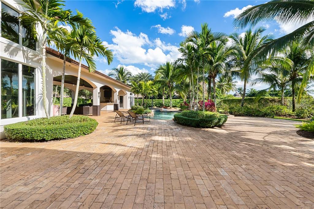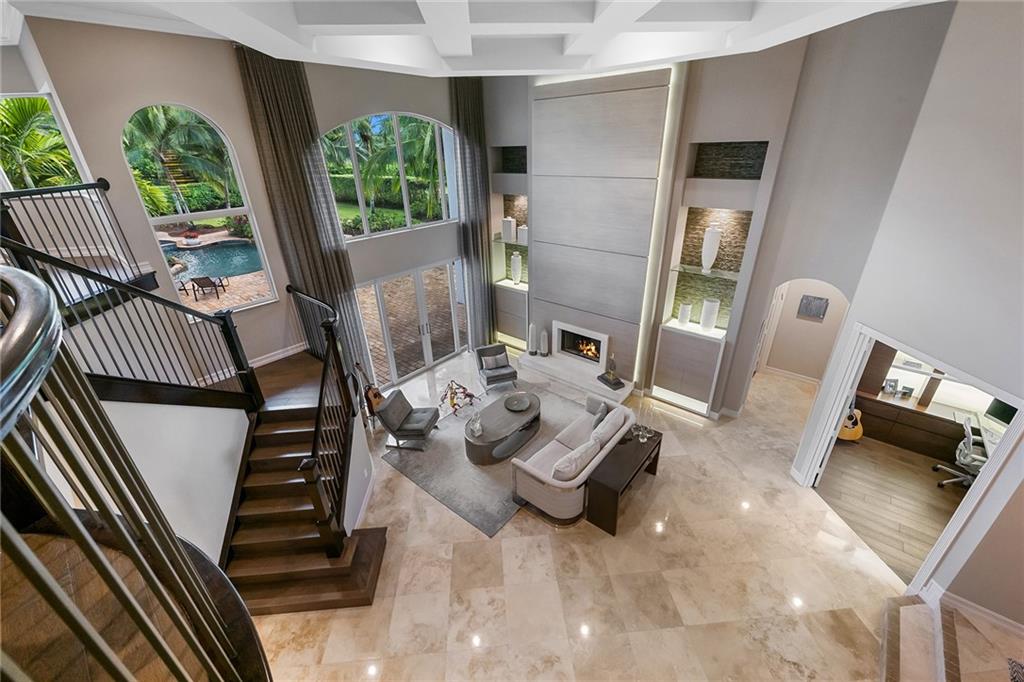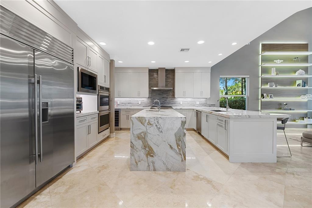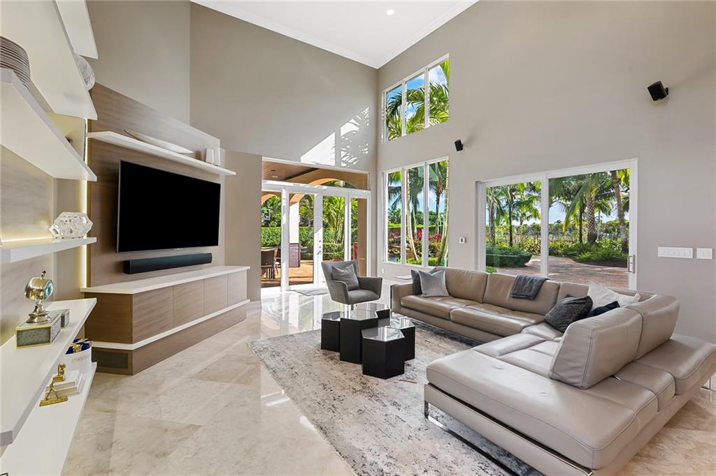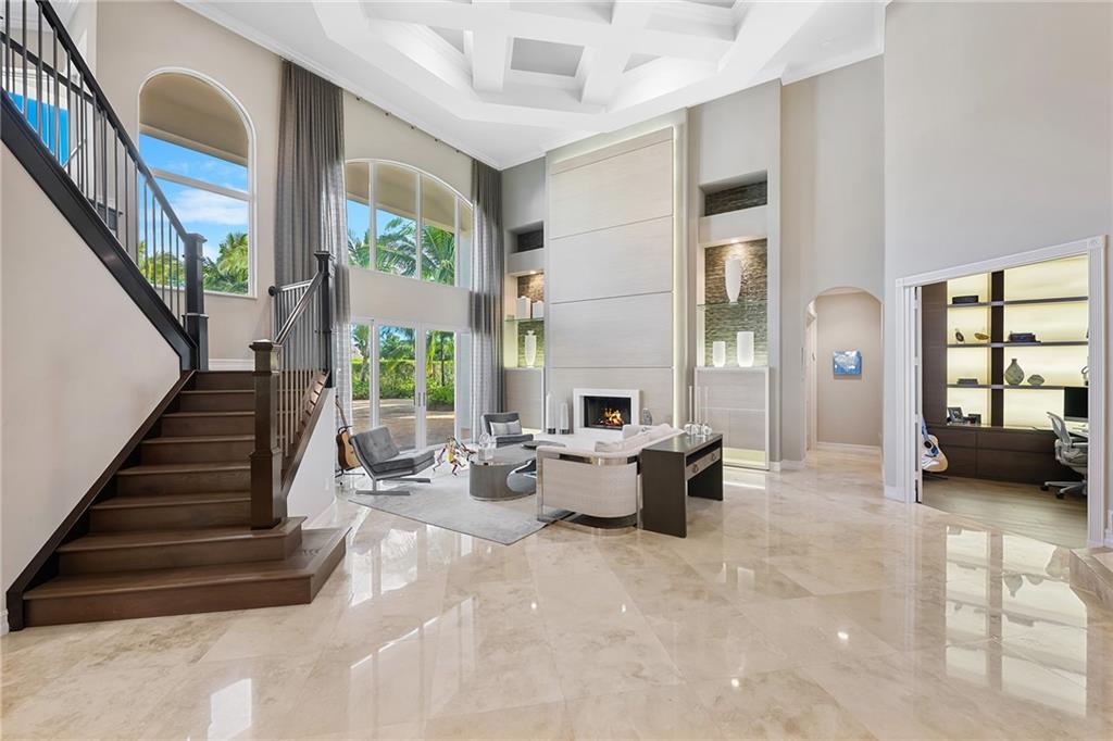 Welcome to your modern tropical paradise. This 5 bed, 6 bath home, plus office & game room, will wow you from the front doors. Enter into the living room with a 24 foot ceiling, fireplace and views of the pool. Marble floors and engineered wood in the office and bedrooms. Beautiful completely redone kitchen with subzero refrigerator & freezer, wine cooler, 6 burner gas stove, double oven & an oversized island. Completely open family room for entertaining and a formal dining area. Outdoor covered space with kitchen and attached game room. This room could easily be converted to a complete guest home. Rock waterfall, beach entry and jacuzzi. Impact glass throughout and a full house generator. Too many upgrades to mention. This home is an entertainers dream with A+ schools.