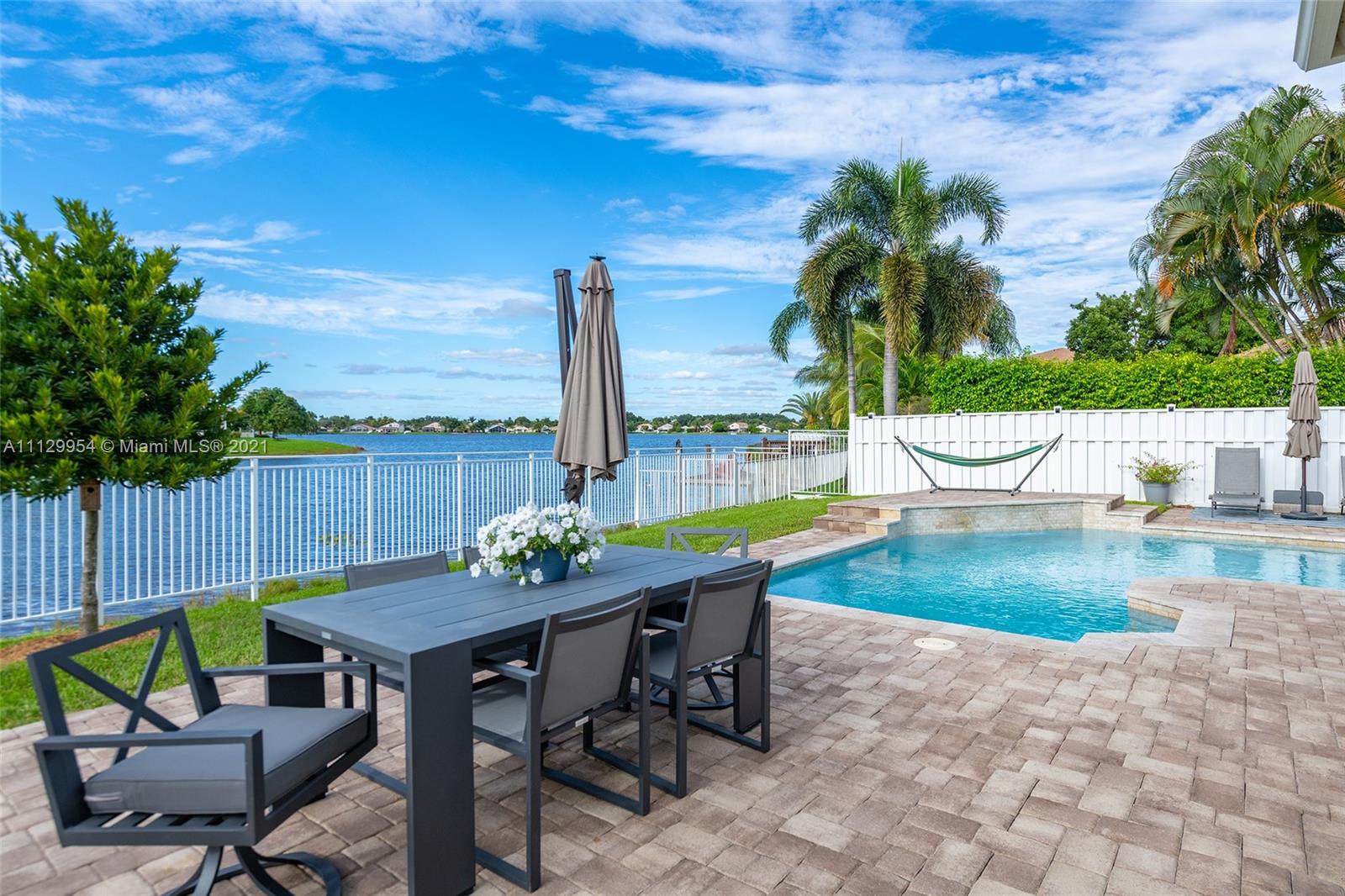 Beautifully updated 4 bedroom 2.5 bath in sought after Keystone Lake! This house has over $30,000 worth of upgrades within the past year, not to mention a new kitchen and smart home features installed two years ago. This modern kitchen contains soft close drawers, USB ports/outlets on kitchen counters, charging drawer, and a ton of extra storage. Newer appliances include refrigerator, microwave, dishwasher, stove, water heater, A/C unit, and washer/dryer. Looking out from the kitchen, the back yard is stunning, with pavers leading out to the fountained pool, and scenic views of the oversized lake that spotlights the most gorgeous sunsets. Freshly pained, hurricane ready with new impact sliding doors, and an all A+ school system, this house won't last!