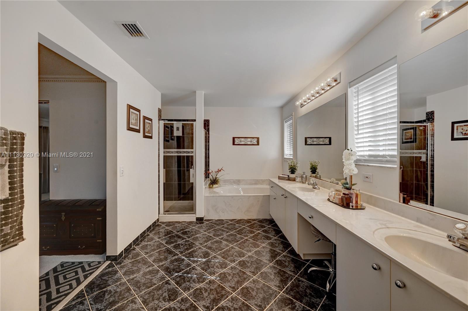 Savanna, Weston, gorgeous and elegant 5 bedrooms and 4 full bath. Home features nock down walls throughout, 12" tiles with diagonal lay out, 1 bedroom and full bath on ground level, all bedrooms with walk-in closets, crown moldings, large dining room, spacious kitchen, breakfast area with bay windows, French doors and omate window moldings. Dimmer switches for lights, archway. Extended cover patio with large private back yard, room for a pool, A+ schools. *Sole owner and caretaker since home was built 1n 1999. *Non smokers since home was built in 1999. *New 16-SEER HVAC systems installed in 2012 that replaced original 12-SEER units