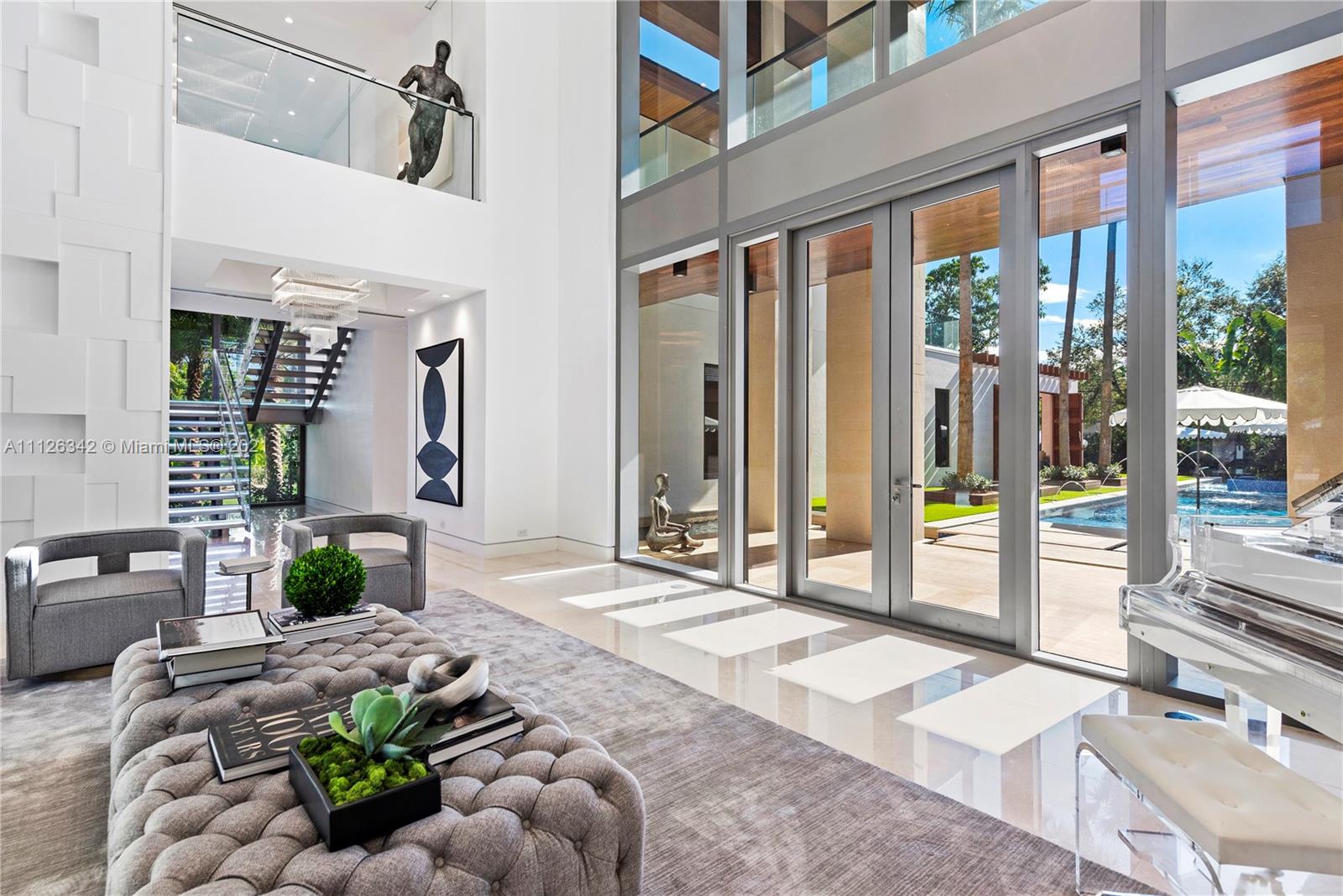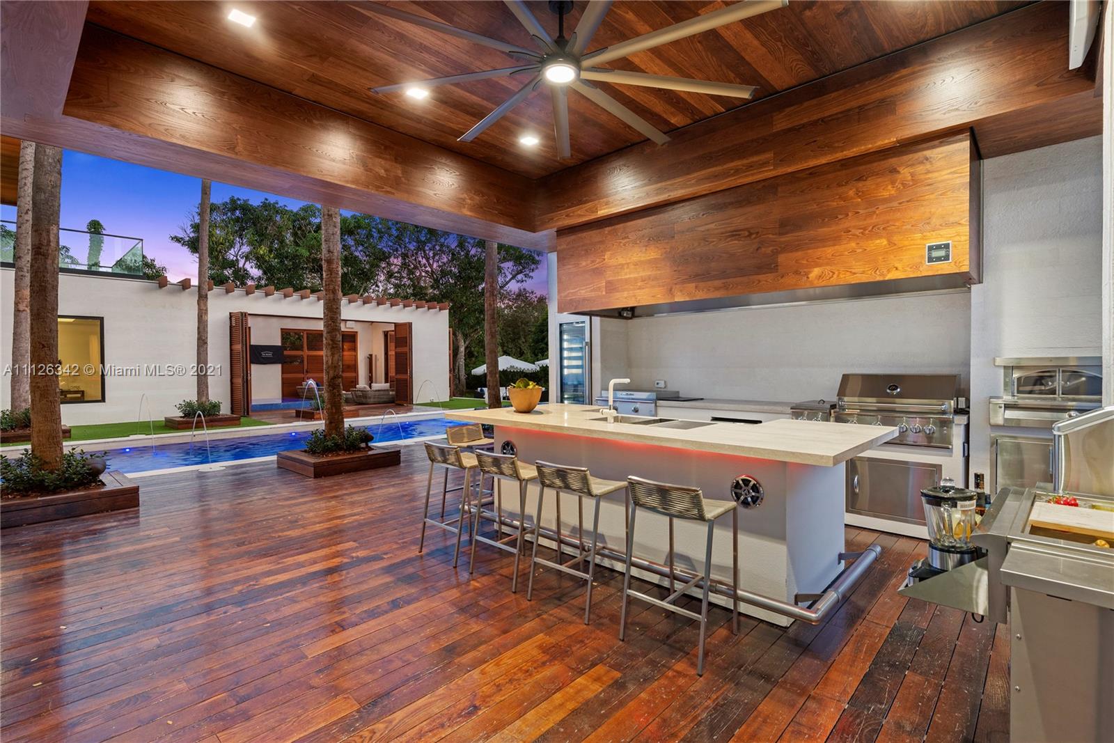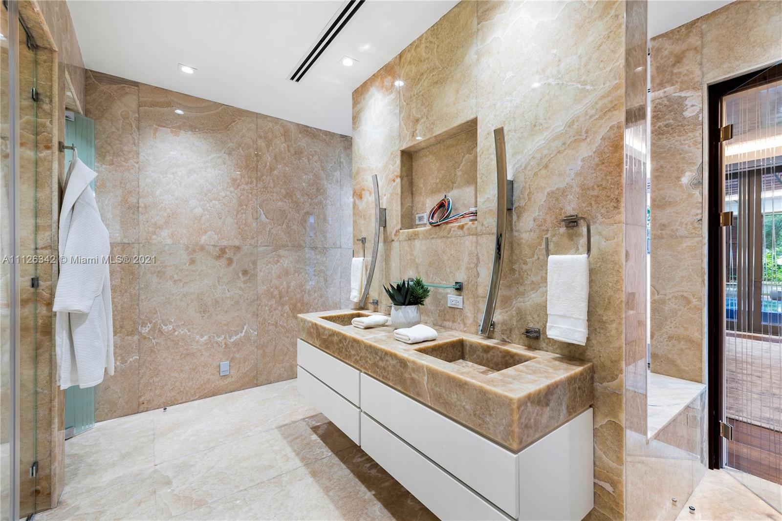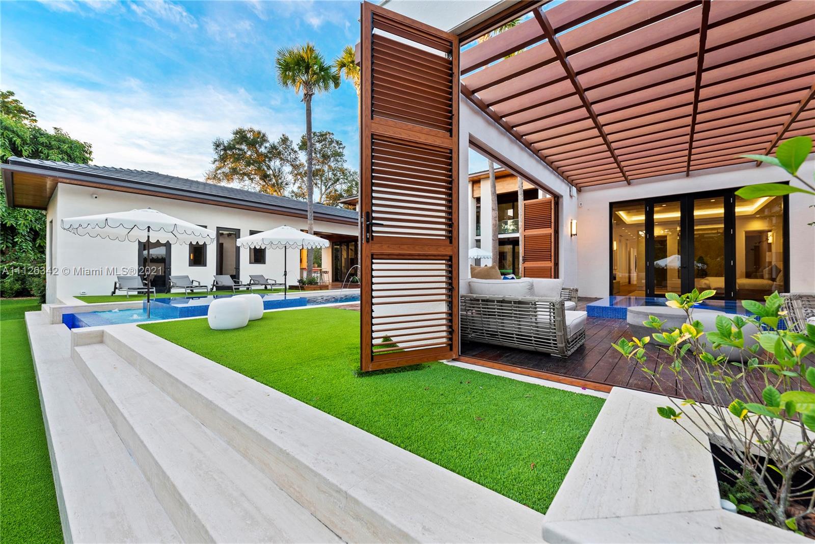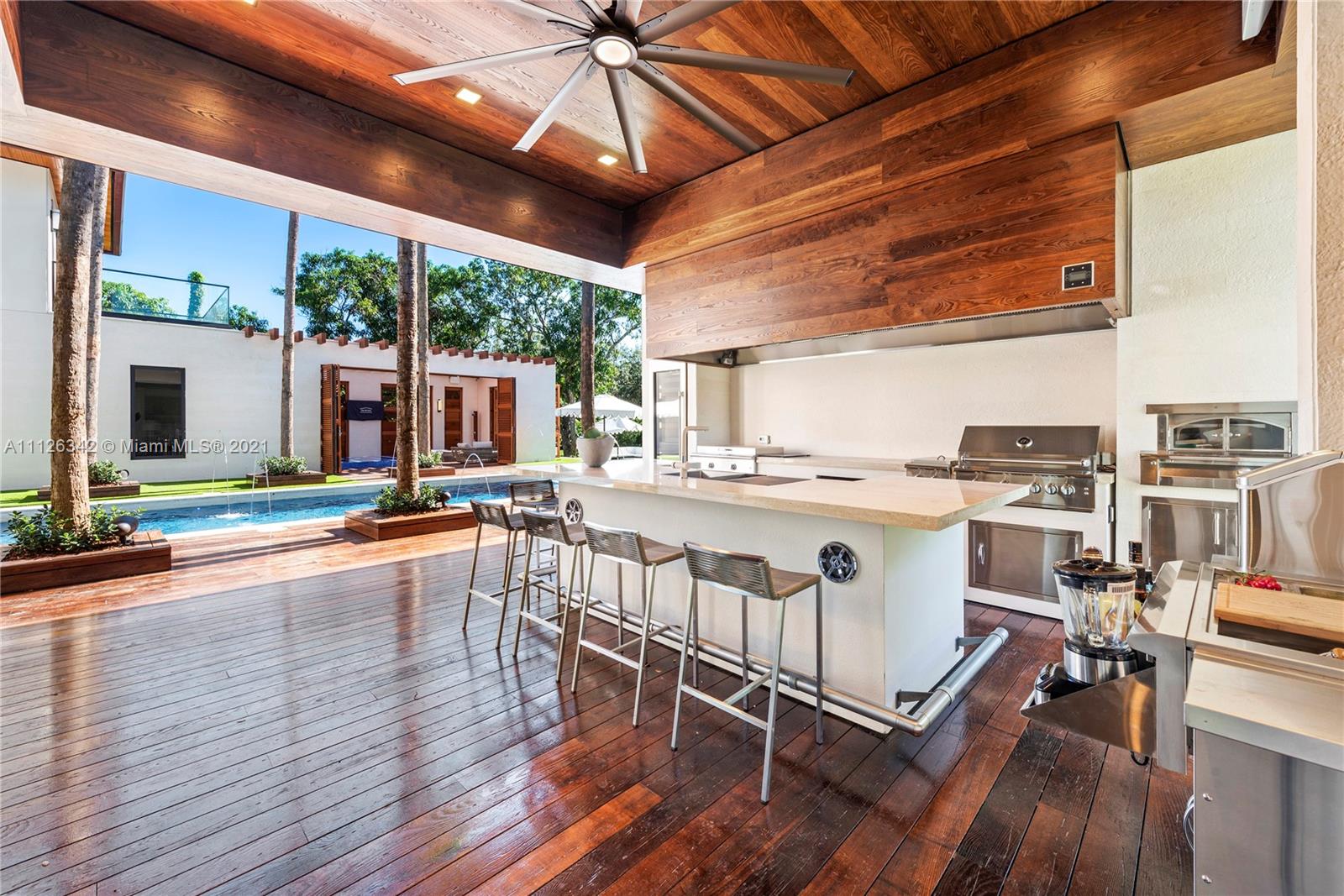 Introducing the extraordinary "Aqua Azure" a brand new, exceptionally designed estate situated on a tree-lined street in the heart of Pinecrest. Upon entering this stunning home, one is greeted by serene water features, dramatic volume ceilings and floor to ceiling impact glass that provides ample natural light to the interior. This sensational resort-style home offers superior features: savant smart system, ultra modern and sophisticated kitchen, 2 wine cellars/humidor, state of the art home theater, office, elevator, full house generator, 3 car garage with lift, fully equipped guest house, fabulous outdoor kitchen with adjacent fire pit, a master suite with its own private outdoor jacuzzi and lounging area, and a 75ft heated infinity pool. A truly unparalleled design.