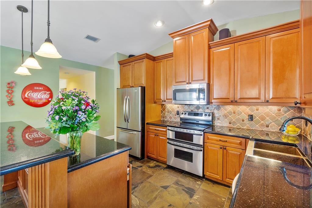 Natural light abounds in this spacious 4 bedroom, 2.5 bathroom home located in the quiet neighborhood of Island Lakes in Boca Raton. The Great room coupled with an open kitchen area lend themselves to entertaining family and friends. Stepping just outside this area onto the extensive screened-in porch and pool area not only affords more room for entertaining, but also offers up serenity thanks to the nature preserve that backs up to the property. Meticulously clean and maintained, this 2,276 square foot beauty was given a flat tile roof in 2008 and a new AC system in 2013, natural slate tile throughout the common and living areas, artisan hammered copper kitchen sink, custom cabinetry and more. Close to parks and recreational areas, this home and the surrounding community is a must see!