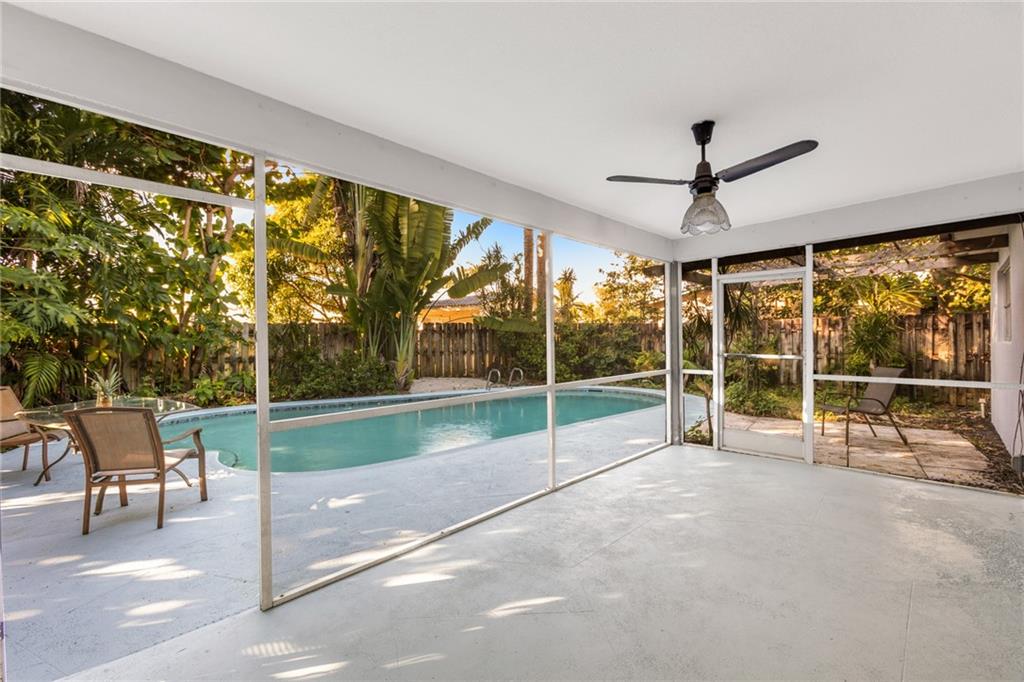 Back on Market. Great location, interior street, walk to Elem & high school. Just painted and knockdown ceilings. 3 bedrooms, 2 baths. This home has sliders from family room, living room and the bedroom. Master has full wall closet and large walk in closet with built in dresser. Floors are lamminate, ceramic tile and carpet in the living room. New stove, granite counter in kitchen Solar heated pool, electric connection for spa on patio. Screened patio, diamond brite pool with beautiful landscaping, great privacy and beach area. Yard is a must see. Beautiful fruit trees such as papaya, mango, banana, almond tree and beautiful trumpet plant New garage door, new A/c, sprinkler system, fenced, & alarm. New Dryer . No HOA .....Open House Sunday 12 to 3 PM-- JAN 2