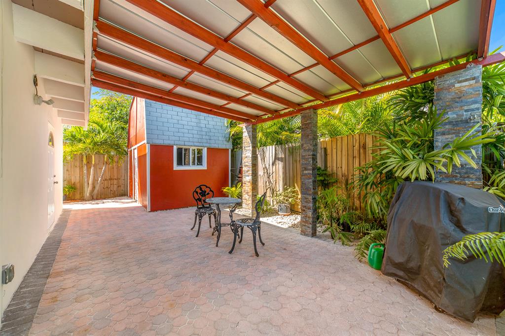 Welcome home! This Pompano Beach home is a unique oasis and true diamond in the rough. NO HOA! The home boasts large tile flooring throughout the living areas and tons of natural light. The property features a split bedroom floor plan with two bedrooms with wood flooring, sharing a bathroom on one side with a huge primary suite on the other. This suite has tons of room with a large bathroom and even a kitchenette! This space also has its own private side entrance and could double as an in-law suite or possible rental space. The home features a large, open updated kitchen with rich finishes and large dining room with accent wall. The backyard is a tropical destination unto itself with large pool, huge patio and mini orchard of fruit trees. The property also has a large 'red barn'