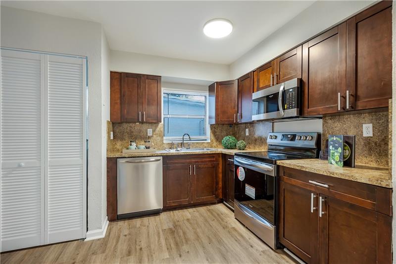 Completely remodeled 3 bed 2 bath home.Beautiful open concept living with formal living room, dining room and large family room all open to the kitchen.All rooms have a view through the huge 12' wall of sliding glass doors,outdoor patio and the large fenced yard.The interior features brand new stainless appliances,new LG washer/dryer,new paint inside and out,new vanities,kohler sinks,all new faucets and fixtures.Designer black and satin nickel hardware throughout,beautiful landcaping,new double car driveway,new electrical panel,all new lights and fans, both bathrooms and kitchen are remodeled, porcelain flooring throughout and LVP waterproof wood plank flooring in the kitchen.All rooms are large.The home is located on a street with beautiful well kept homes.Close to downtown and the beach.