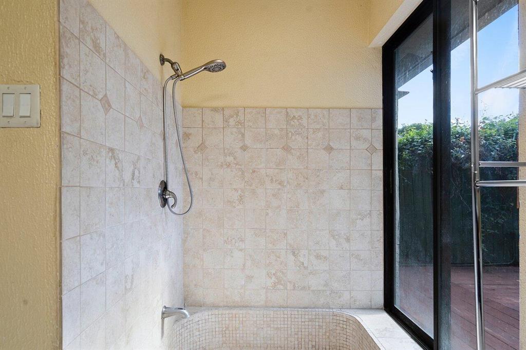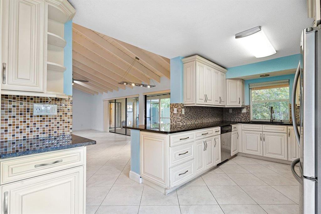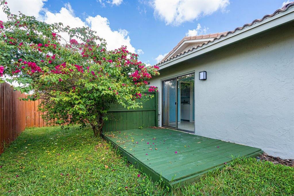 Move into this beautifully laid out 3/2.5/2 with many unique features that truly make this home inviting and whimsical. Private, fenced off zen-design deck, with in-ground hot tub with access from the master bath. Vaulted ceiling accented with exposed beams and a sun-filled skylight. Mature fruit trees are amongst the dense landscape in and around the huge and fully fenced backyard. A peaceful large screened patio is located off the spacious family room. Entertainment style kitchen with light colored, soft close kitchen cabinets, pantry and contrast granite with stainless steel appliances. Inviting, open living and dining areas. Separate and wood deck retreat adjacent to the kitchen through the glass doors.