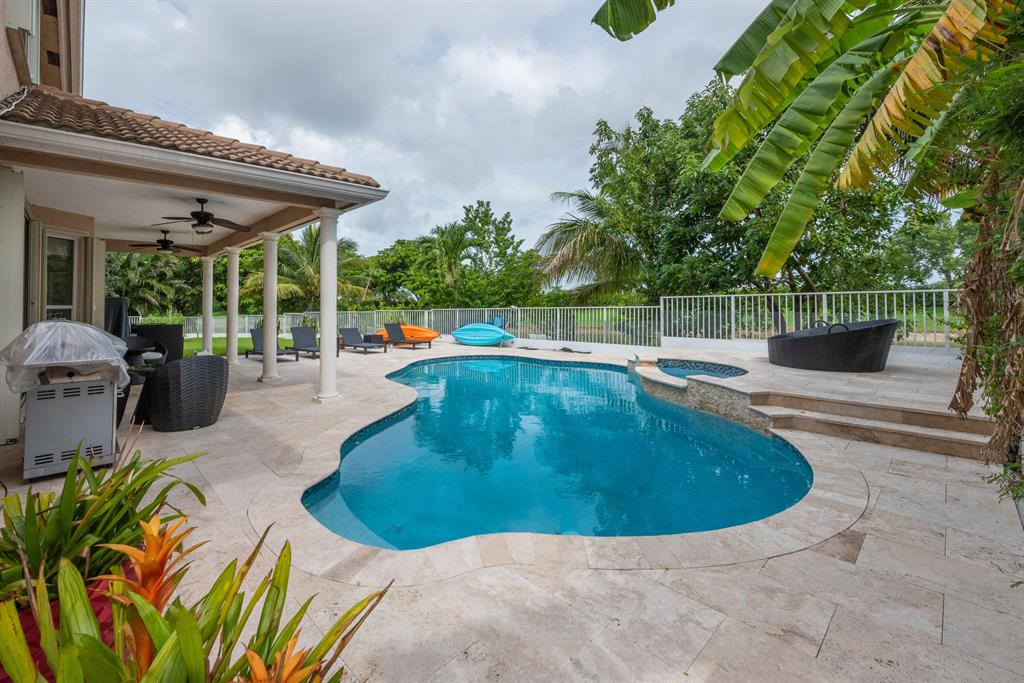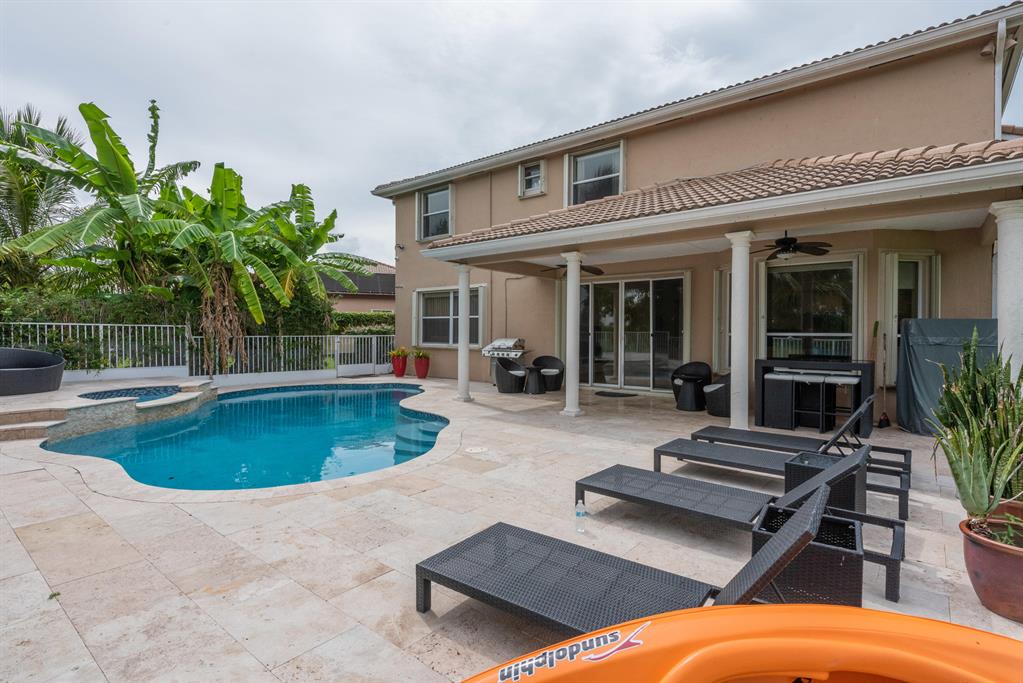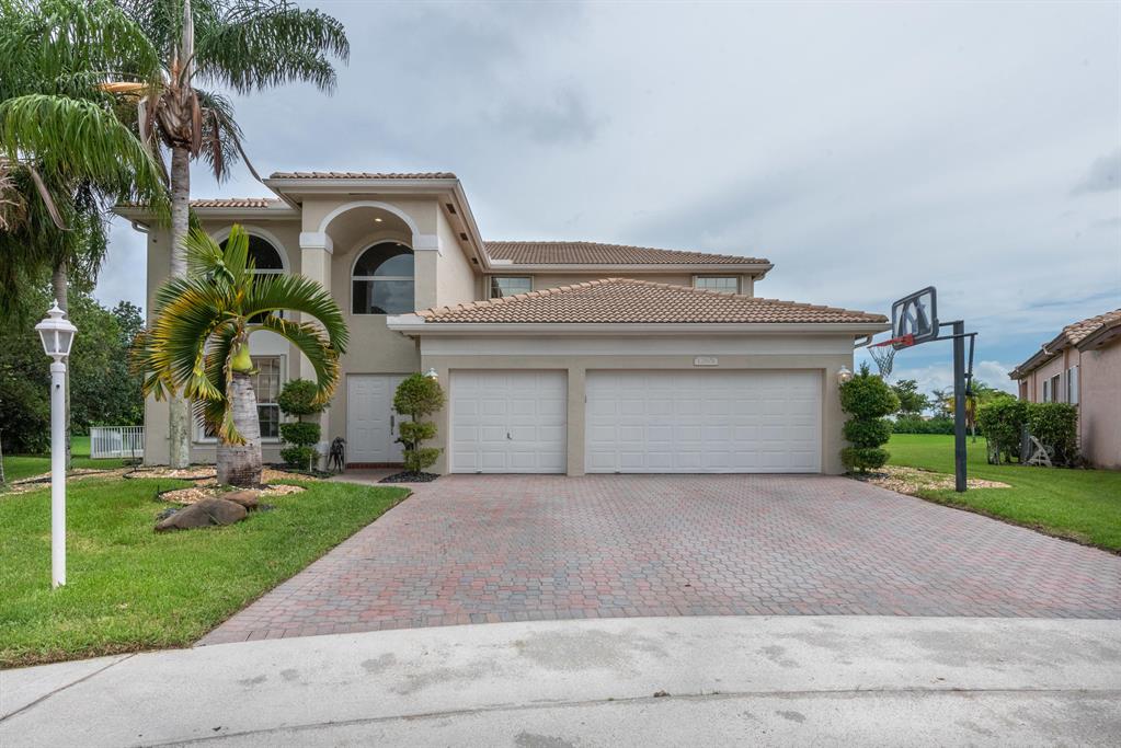 Great Home in Cul-de-Sac with 5 bed, 3 bath, 3-car garage, with high ceilings, large master bedroom with walk-in closet and bathtub. The third garage has been converted into a small gym, a must see! Laminate flooring in the 2nd floor and a backyard with new tiles around the pool. The pool and jacuzzi are lighted and have a covered seating area. Enjoy this luxury community's amenities including a renovated playground, clubhouse, extra-large community pool, fully equipped gym, tennis and picnic area. small garage turned into gym, A-rated schools. The property is near a water canal & nothing behind it. Come call this place your home or even paradise! See the property right now, schedule a showing and put in a offer. This place is calling to be your home!