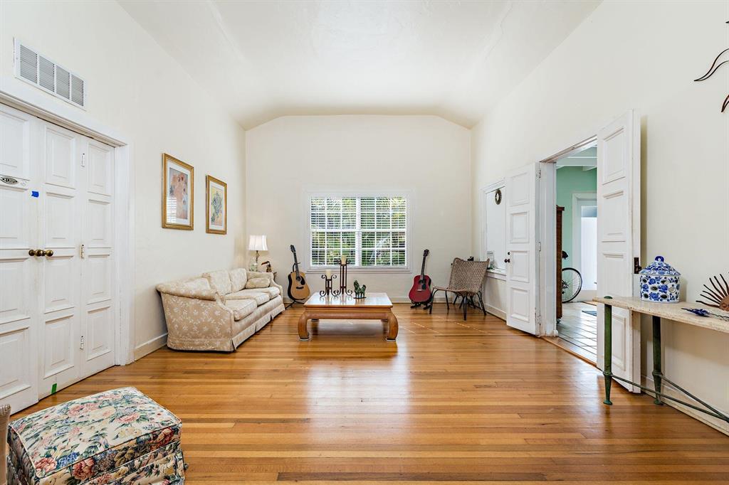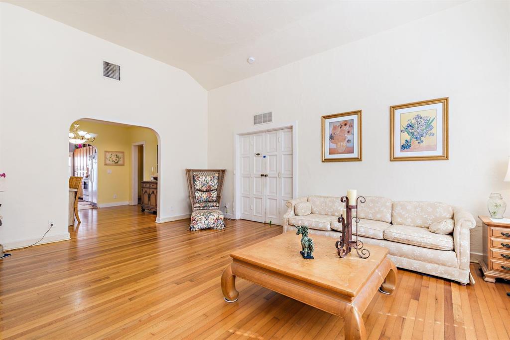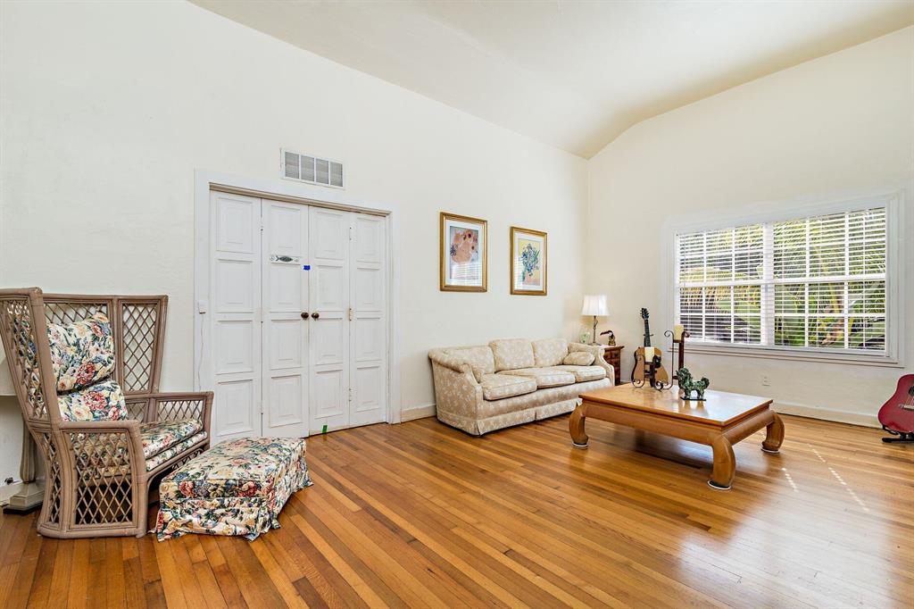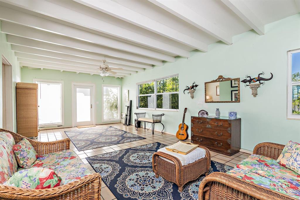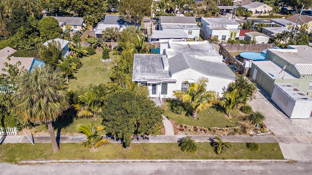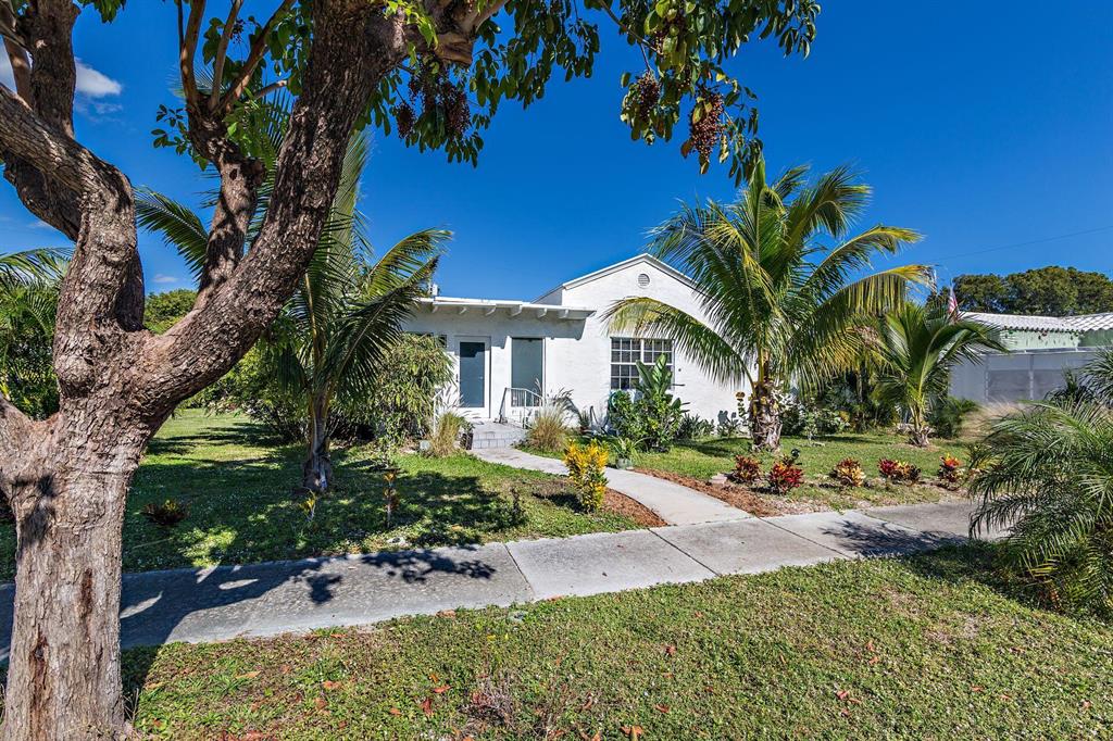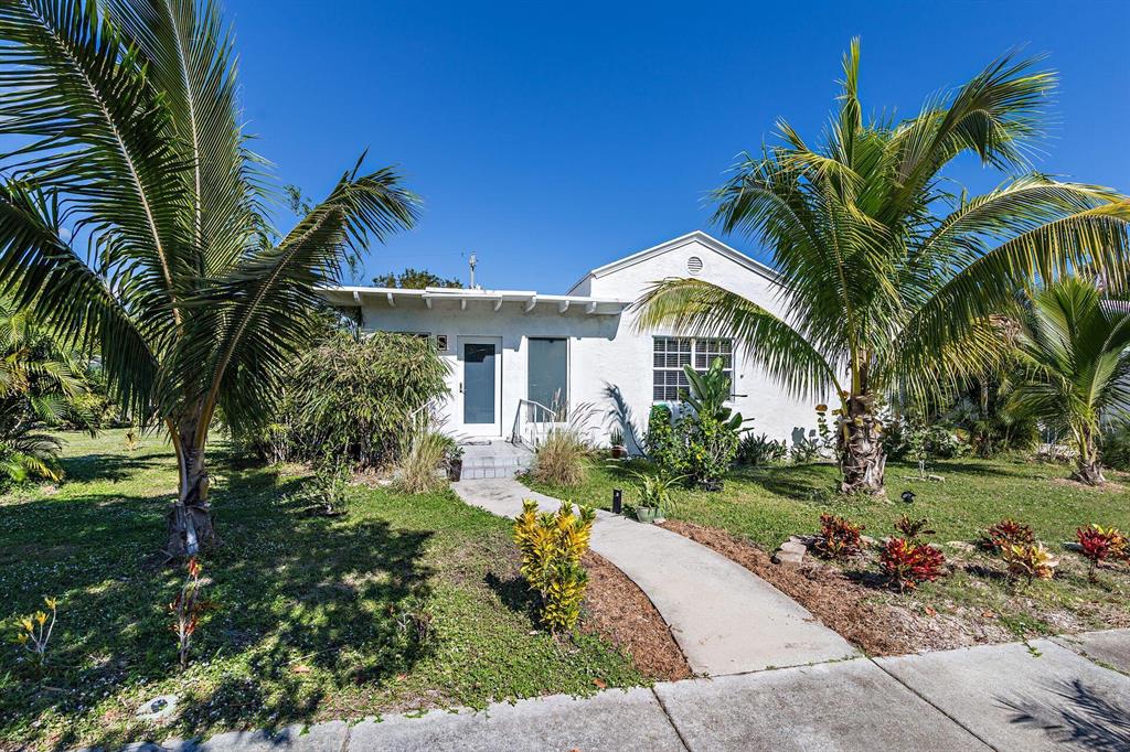 Spacious Spanish-style 3BR/2BTH home on large double 101'x101' lot! Well appointed with impact windows throughout. This charming & bright home opens up to a large family room with beamed ceiling & tile floors. Through original double cypress doors, the living room features a high cathedral ceiling and gleaming hardwood floors through to the large formal dining room and bedrooms. Bright kitchen with an abundance of countertop & cabinet space. Split bedroom plan, primary bedroom has an ensuite bath plus two additional bedrooms with large bath in between allowing for great privacy. Situated on a double lot, large green backyard great for a garden and pool. Garage great for storage or a workshop. Close to Rosemary Square (CityPlace), Palm Beach Island, Warehouse District, I-95 and the airport.