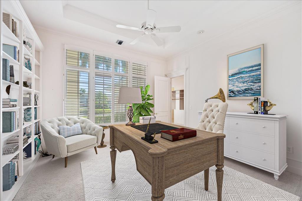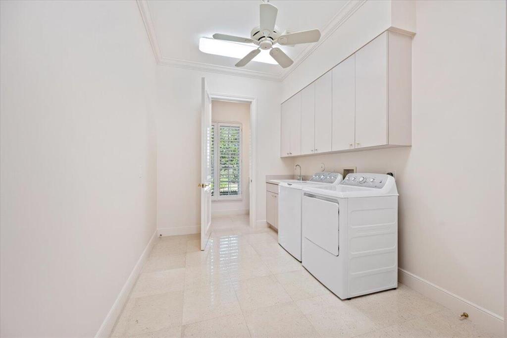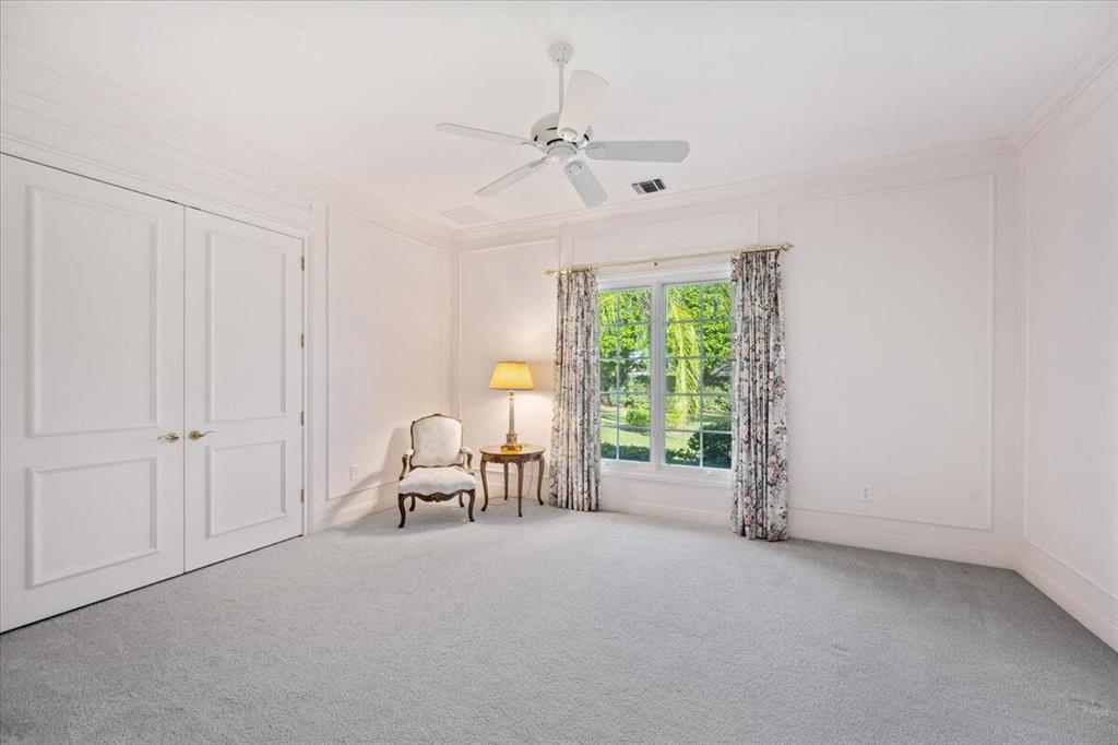 This stately Breakers West estate is sited on almost 1 acre along the Breakers Rees Jones 10th fairway. With its elevated location on one of Breakers West's desirable cul-de-sac streets, this elegant home feels like classic Palm Beach. Exceptional construction quality with impact windows, whole house generator and solid 8ft doors. This home even ''feels'' well built. Classic proportions & scale, timeless crown molding and French doors throughout. With large gallery hallway, this home would be ideal for an art collector. The floor plan offers 4 bedrooms, office, formal living and dining rooms and informal family room area. The eat-in kitchen has a large pantry closet as well as wine storage room. There is PLENTY of storage here--lg utility room & huge laundry rm.