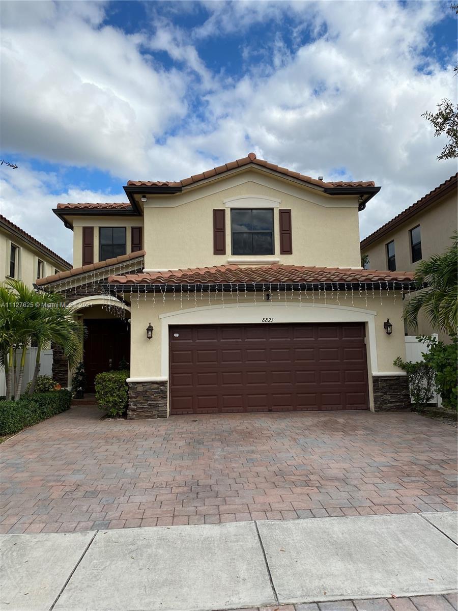 Great opportunity to live in the community of Aragon in lovely 2 story home features 3 bedrooms/2.5 baths, including a Jack and Jill. Master bedroom has his and hers walk-in closets, tub and shower. 2462sq ft. of living space, kitchen with stainless steel appliances, family room and second dining area. Double garage plus parking for 3 cars in driveway. Visitors parking access from backyard exit. Community offers clubhouse, playground, pool, gym, and security. Nice yard w/ room for a pool. Low HOA! No Appraisal contingency.