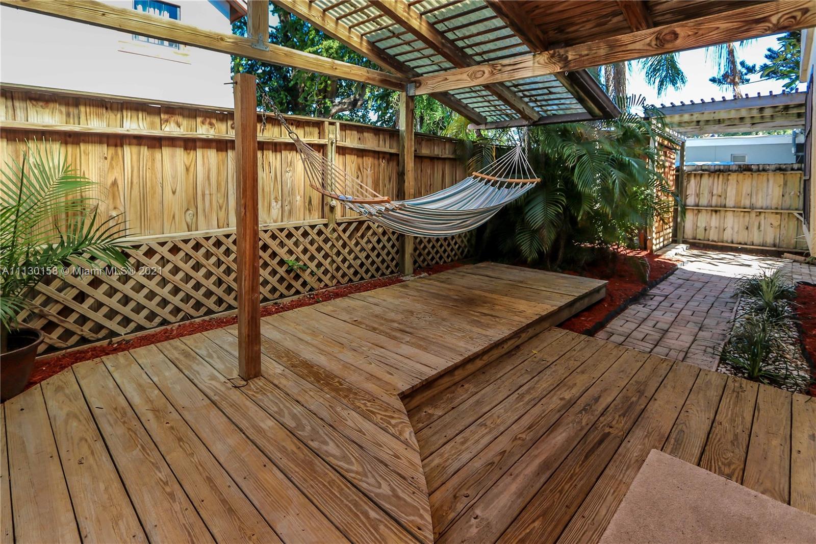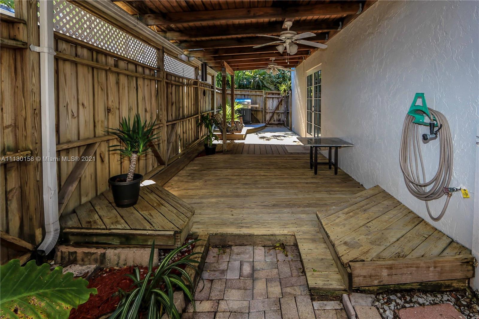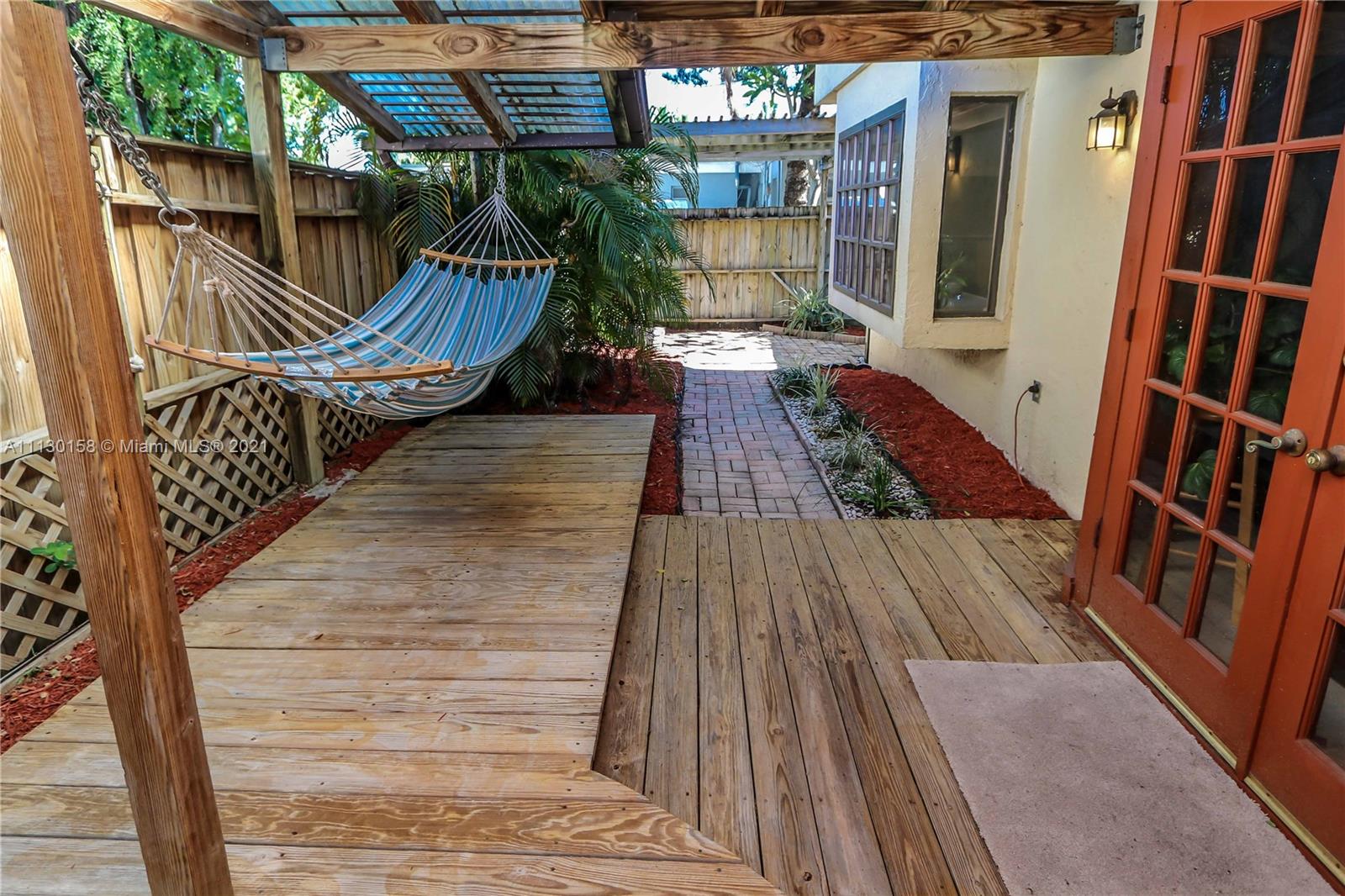 COZY 2-STORY TOWNHOUSE W/ 2 BED, 1.5 BATH, & WRAP AROUND WOODEN DECK/PATIO!~PATIO IS PARTIALLY COVERED~HOUSE IS FRESHLY PAINTED W/ NEW FLOORING IN LIVING & FORMAL DINING RM~CHERRY LAMINATE FLOORING UPSTAIRS~WOODEN STAIRCASE~LAUNDRY RM W/ NEW SAMSUNG WASHER & DRYER~EAT-IN KITCHEN THAT OPENS INTO L/R, W/ TILE COUNTERTOPS & BACKSPLASH~KITCHEN FEATURES COOK TOP, HOOD, DISHWASHER, FRIDGE, & WALL OVEN~FRENCH DOORS FROM KITCHEN LEAD INTO COVERED OPEN PATIO~MASTER & 2ND BEDRM ARE UPSTAIRS~MASTER SUITE HAS SPACIOUS CLOSET, VAULTED CEILINGS, & BALCONY~MASTER BATH HAS TILE FLOORS, BATH/SHOWER COMBO, & TUMBLR MARBLE COUNTERS~NEW CENTRAL A/C SYSTEM~FENCED BACKYARD~COVERED CARPORT + PLENTY SPACE FOR GUEST PARKING~CLOSE TO DOWNTOWN HOLLYWOOD, HOLLYWOOD BEACH BROADWALK, AVENTURA SHOPPING/DINNING.