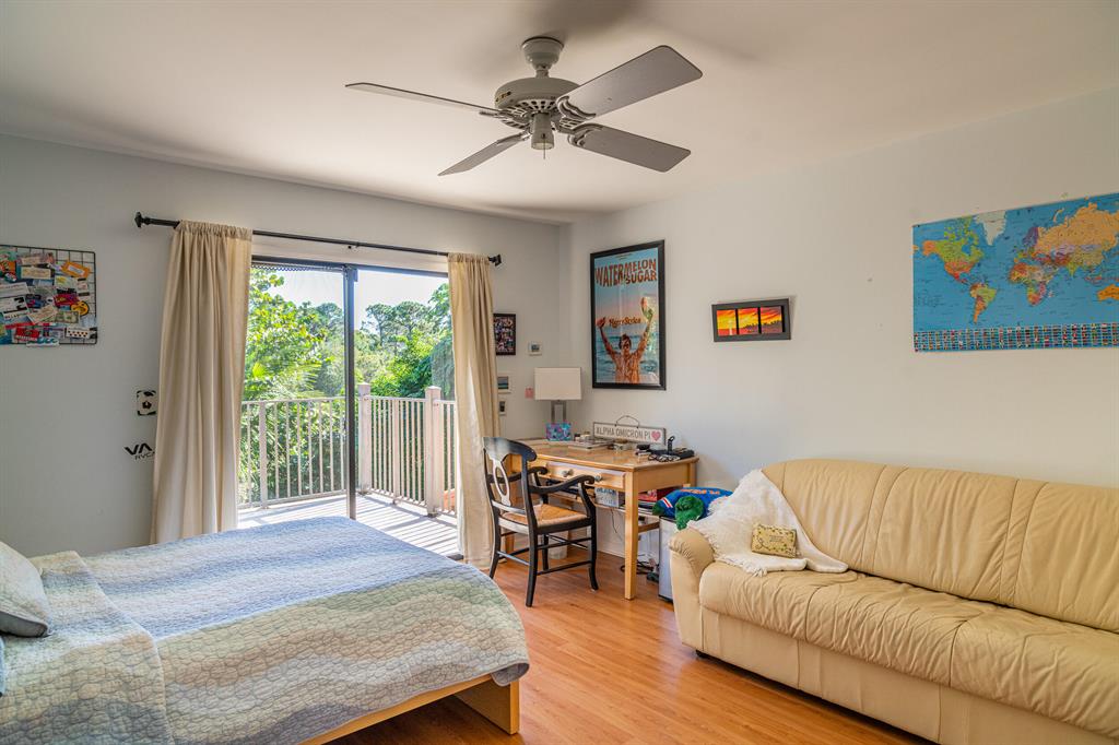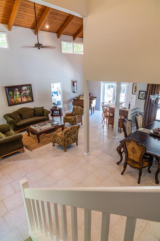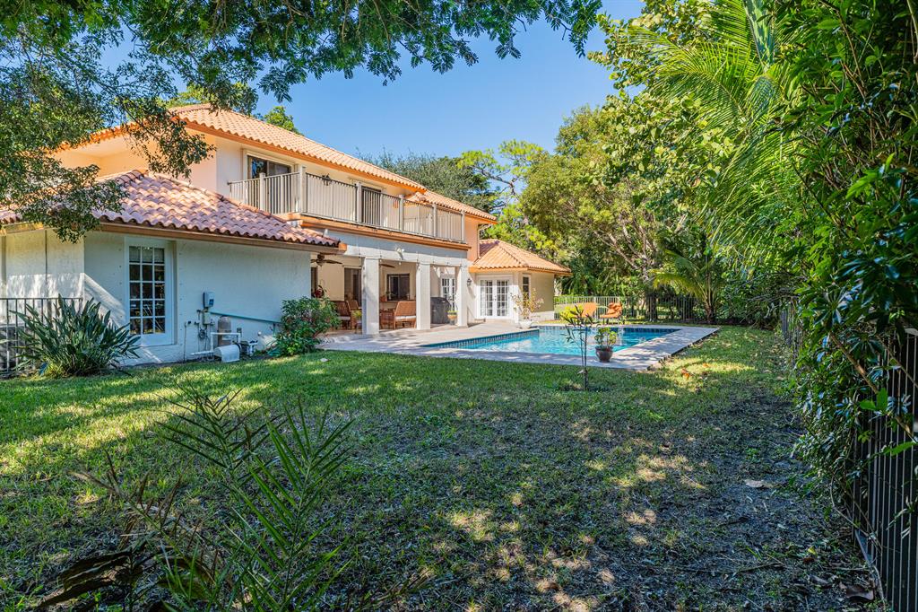 Nestled in a quiet cul de sac in Millpond, and one of seven custom built homes within the community, is an amazing four bedroom, three bath home on a 16,845 sq foot lot. The beautiful cathedral high ceilings set the tone for spacious living and Florida lifestyle. The living room, great room and kitchen overlook the lovely covered porch and patio area surrounding the 16x35 saltwater pool. One of a few homes with a 'grandfathered in' large fenced in yard. The outdoor space is perfect for entertaining and large enough to accommodate a growing family or someone who loves a lot of green space. The primary bedroom is located on the main level and has french doors out to the pool area while two of the three bedrooms on the second level have access to a large balcony overlooking the pool.