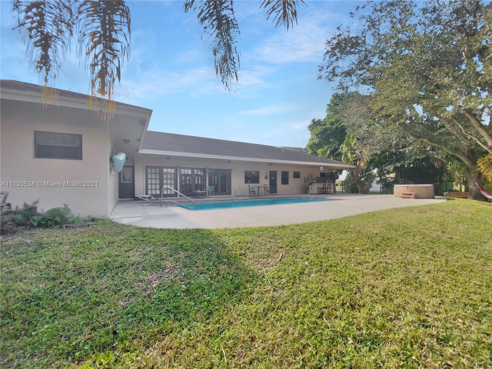 Be part of the exclusive Calder Farms equestrian community nestled in the heart of downtown Davie. Enjoy the splendor of this 4 bedroom/3 bathroom single family home. This home features a spacious living room with high ceilings and next to a traditional fireplace. A complete house renovation was done in 2007 except for the kitchen. The roof is 2007 and both A/C's are 2013. Large patio and pool area with a beautiful view! perfect for entertainment and to enjoy a sunny afternoon. This 0.8 acre lot comes with agricultural exemption and can be purchased together.