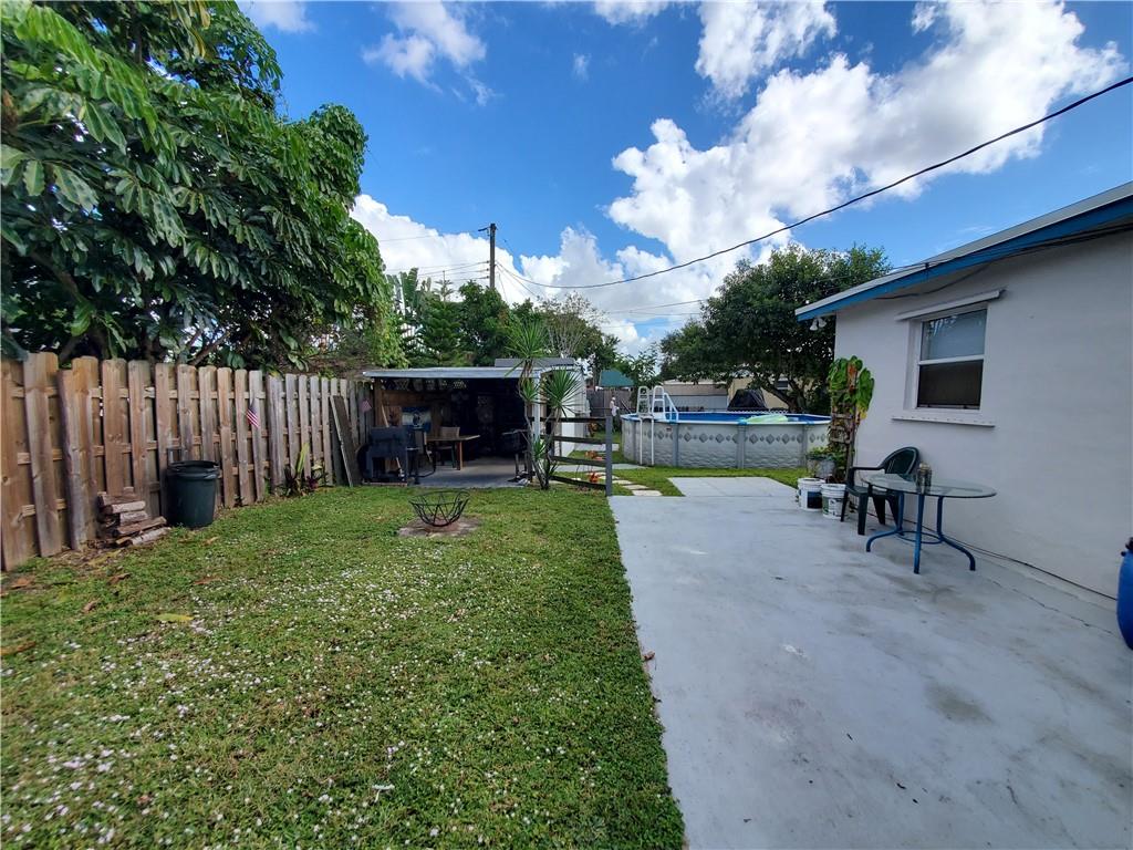 Corner lot. Huge backyard with swimming pool and plenty of room for RV, Trailer or good old ,down home recreation. Great for Pets!!!Well maintained home with impact windows, new roof and history of TLC. Out building for storage or ancillary use. Shed with covered patio. New Tool Shed. New Water Heater. Floorplan includes Extra Room for multiple use.