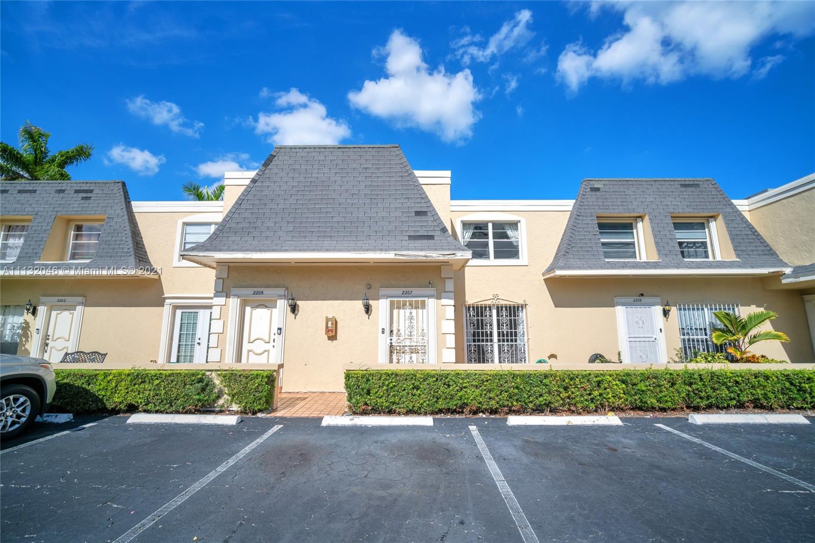 CHARM, LOCATION, CONVENIENCE AND BEAUTY is what describes this amazing townhouse with over 1,696 SQFT of living space in prime Hallandale Beach location. Featuring, 2 beds/2.5 baths, office/den (possible 3rd bedroom), front porch and patio. This beauty it’s warm, inviting and has lots of natural light. GORGEOUS and completely remodeled chef kitchen w/ quartz counter tops, stainless steel appliances, soft closing cabinets, snack-bar island and ample storage…perfect to entertain family and friends. The master bedroom is huge w/ walk-in closet and overlooks the gorgeous Joseph Scavo Park. The master bath has a combination of shower and tub. In addition, 2020 floors, accordion shutters, 2015 appliances (Dishwasher '21 and Washer '19) and privacy wood fence. CHEERFUL SETTING FOR A HAPPY HOME!