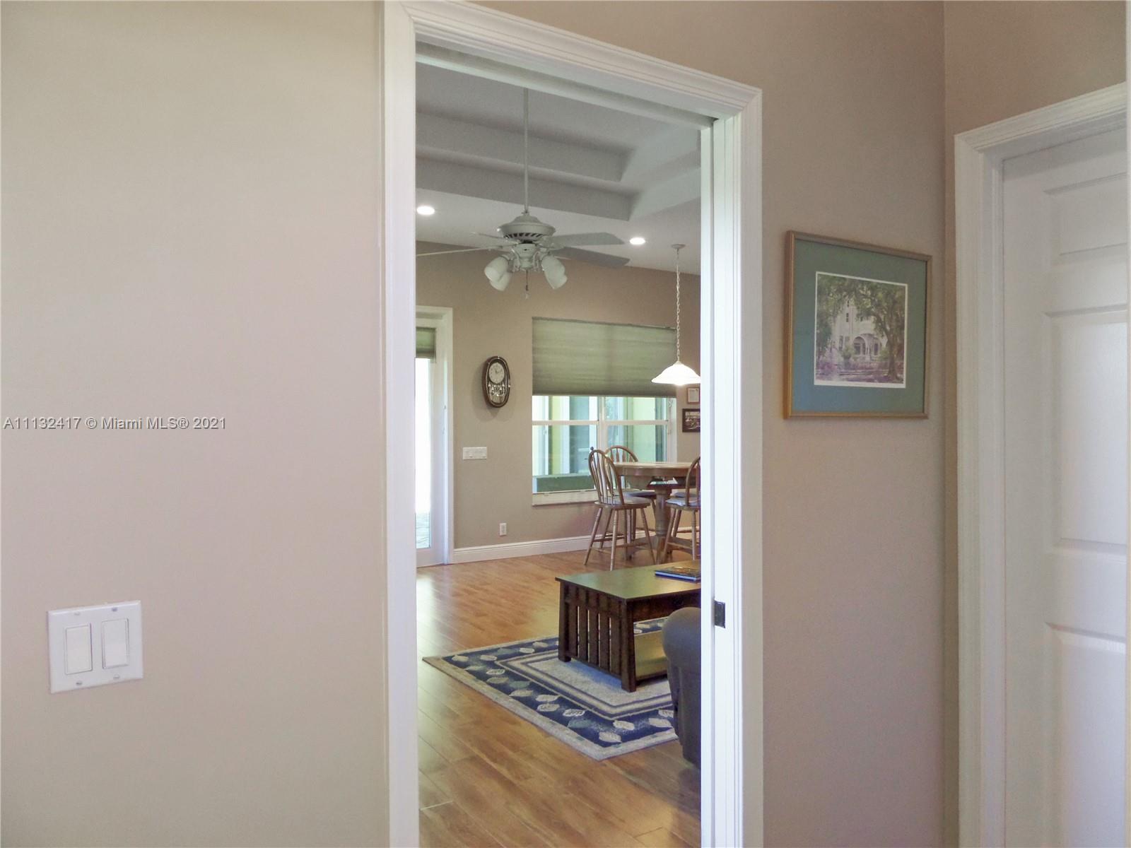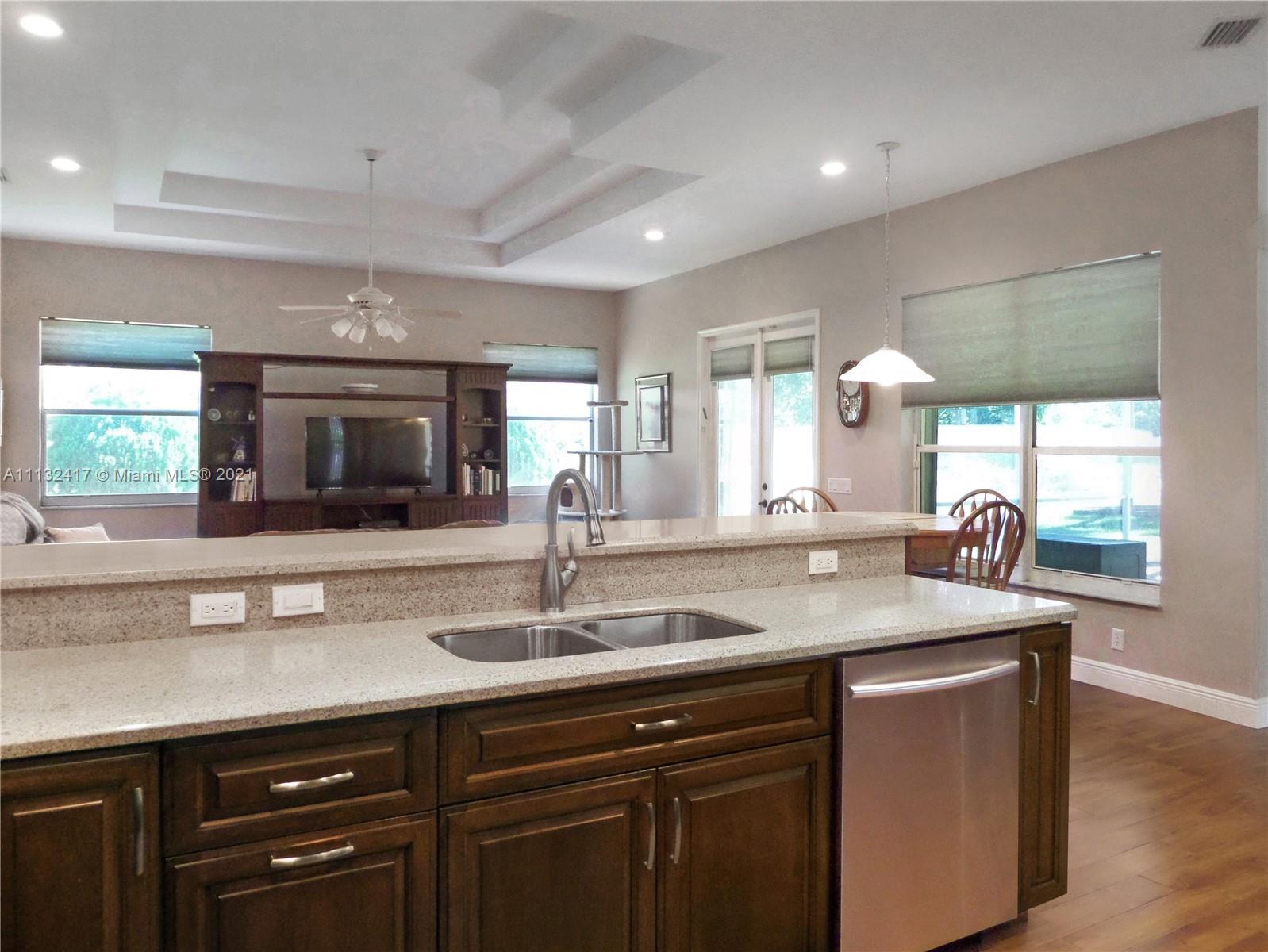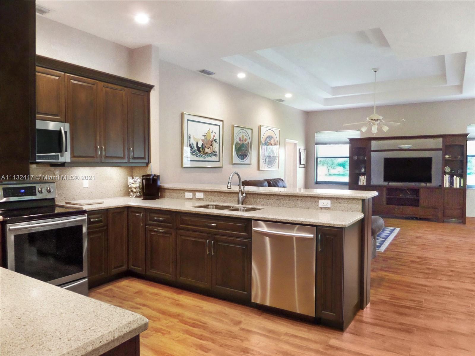 A real stand-out! This impressive 4 B/R + den, 3 bath, single-story residence in the rarely available community of Diamond Head features a brand-new roof and a beautifully crafted new kitchen with custom wood cabinetry, quartz countertops, and SS appliances (still warrantied). Spacious triple-split layout, volume ceilings, large screened patio, newer A/C unit (2019), impact front window and entrance doors, accordion shutters, circular pavered driveway, 3-car garage, generator transfer switch, and even a mature mango tree. The 9,350 square foot lot is extended by an additional 6,000 square feet of scenic waterfront acreage reserved for your private use and enjoyment. Top-rated schools are nearby, and a 2-acre recreational park is just steps away. Very low HOA fee.