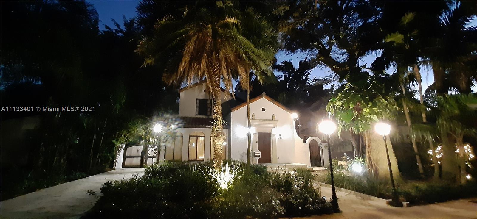 Beautiful old spanish built 3 bedrooms 3 bath home in Coral Gables, Travertine floors, 6 burner stove, built in applainces, coral patio and driveway, awesome landscaping throughout, back yard is very tropical with pond design, storage shed, updated master and bath upstairs, fireplace and many details that must be seen, generator hockup, 2 A/C units, stained glass design on one of the windows, rooftop deck, outdoor speakers, fountain in the front yard, carport covered trellace, great for entertaining, bar area with built in fridge, exposed wood beam, call for an appointment.